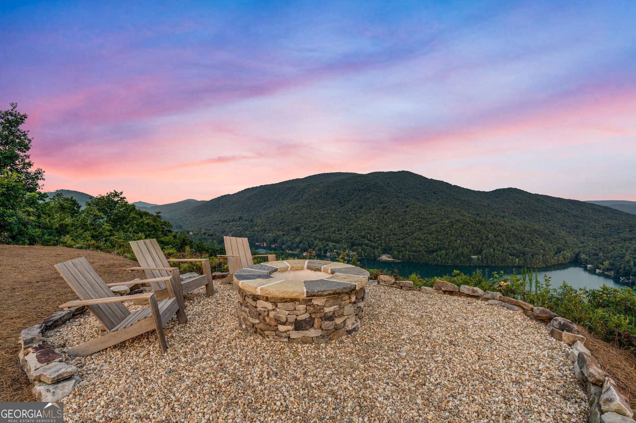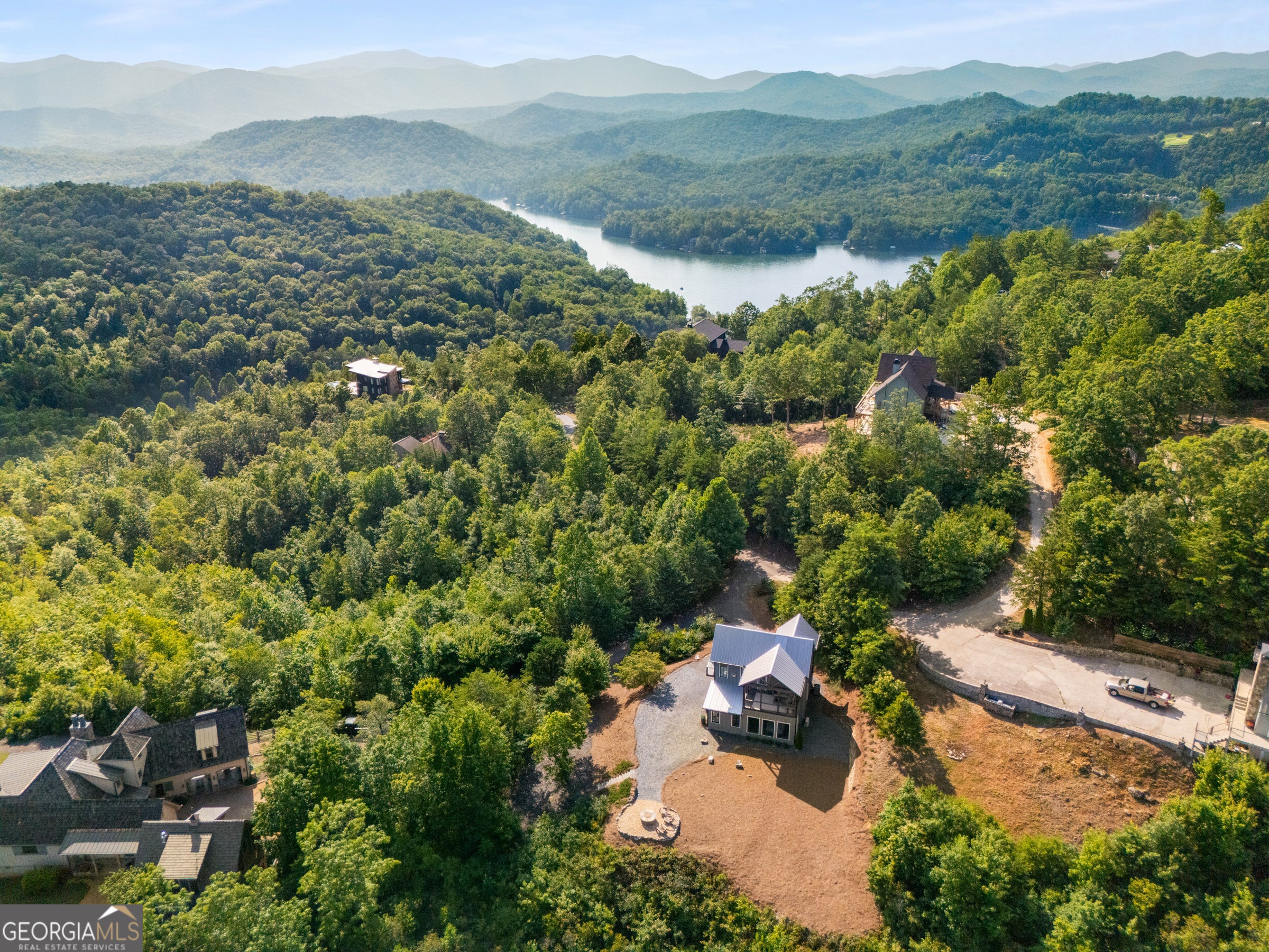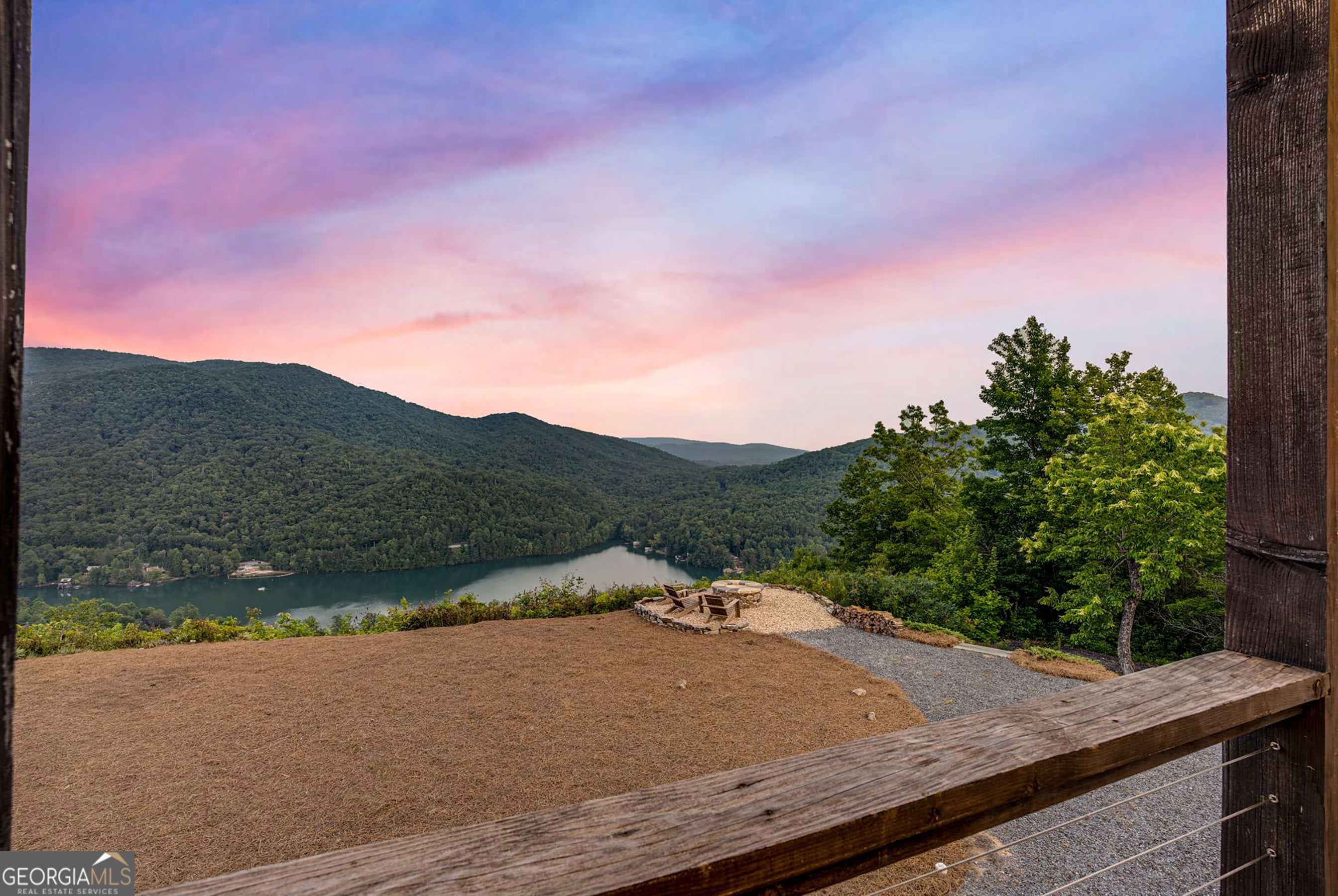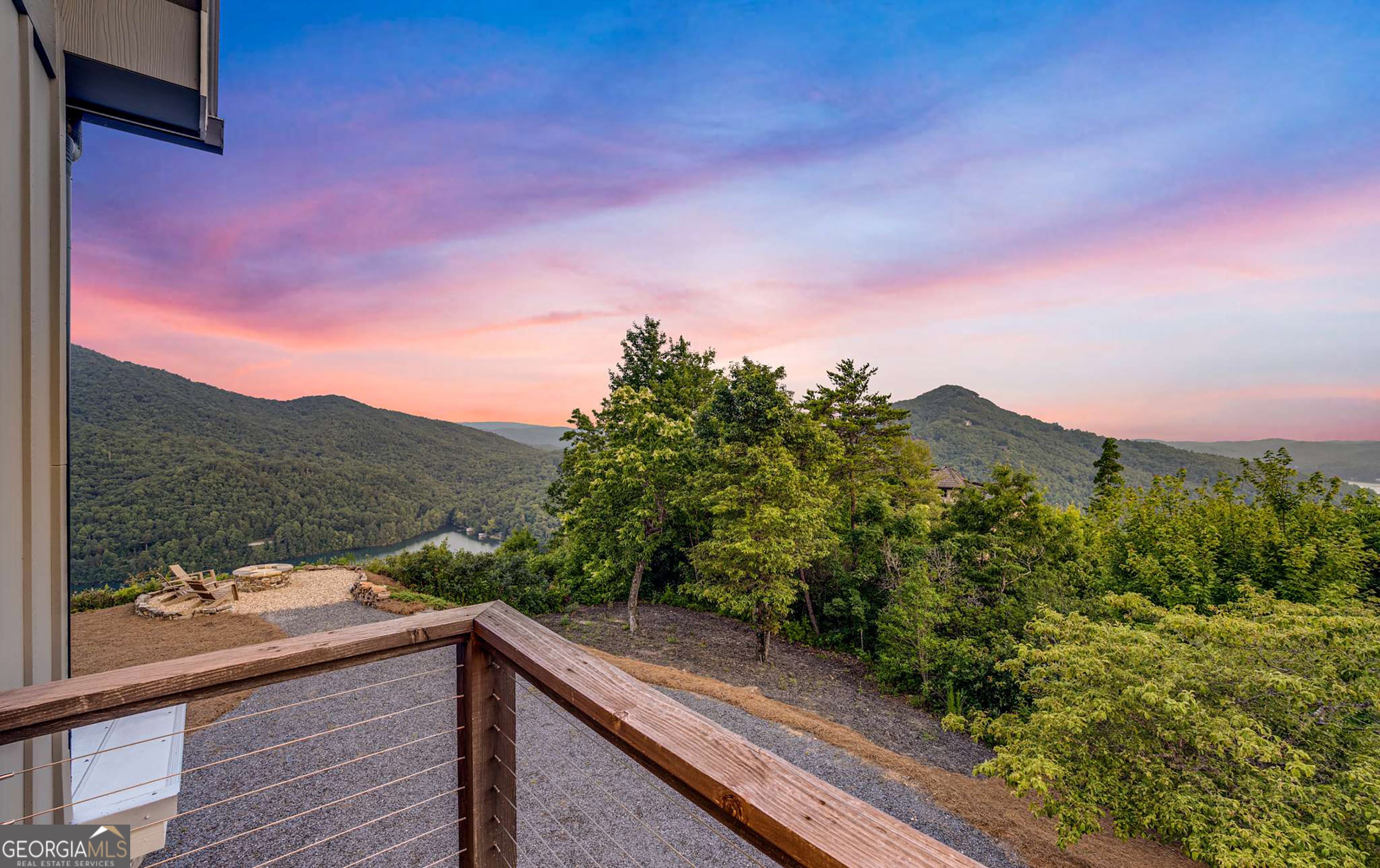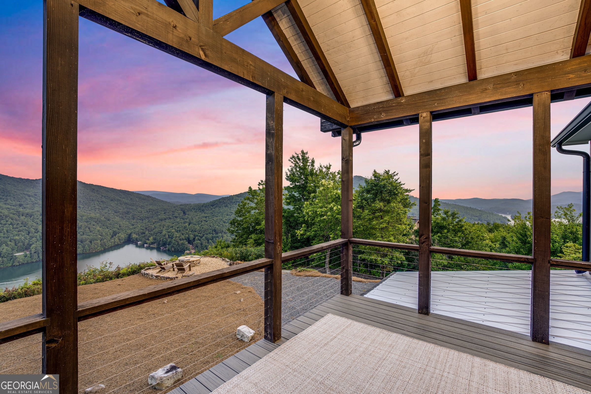 Located in exclusive Goat Cliff Estates, this 3-Bedroom + Loft, 2-Bathroom home offers a rare opportunity to own a piece of North Georgia paradise (fee-simple) with deeded lake access and dock house. This home has one of the best views of all of Lake Burton, and 300 square feet of custom decks for additional outdoor living (1,856+300 = 2,156 sq. ft*). Designed to embrace the outdoors, this elegant mountain retreat boasts sweeping layered mountain vistas and spectacular sunrise and sunset views overlooking Lake Burton. Step inside to an open-concept living area with high ceilings (10, 14+ throughout), large picture windows, and warm wood accents that create a sense of comfort and grandeur. The well-appointed kitchen opens seamlessly to the living and dining spaces, perfect for entertaining guests with a large seven-foot island and custom-built cabinetry. The spacious primary suite offers a private sanctuary with stunning views, a spa-like bathroom including a large overhead rain shower, and soaking tub with sunset views. Two guest bedrooms on the main level provide ample room for family or visitors. Outside, enjoy a porch that's ideal for morning coffee with incredible long mountain views or enjoy sunset cocktails while sitting around the masonry outdoor fire pit overlooking the lake. As part of the Goat Cliff Estates community, residents enjoy shared deeded lake access and a dock house, allowing for boating, kayaking, and lakeside recreation. With its unmatched views, and convenient location only minutes from Waterfall Club, Anchorage Boat Dock and the amenities of Downtown Clayton, 714 Sonya Road is a rare gem in the Lake Burton market (on the preferred north end of the Lake) whether you're seeking a luxurious full-time residence or a weekend escape.
