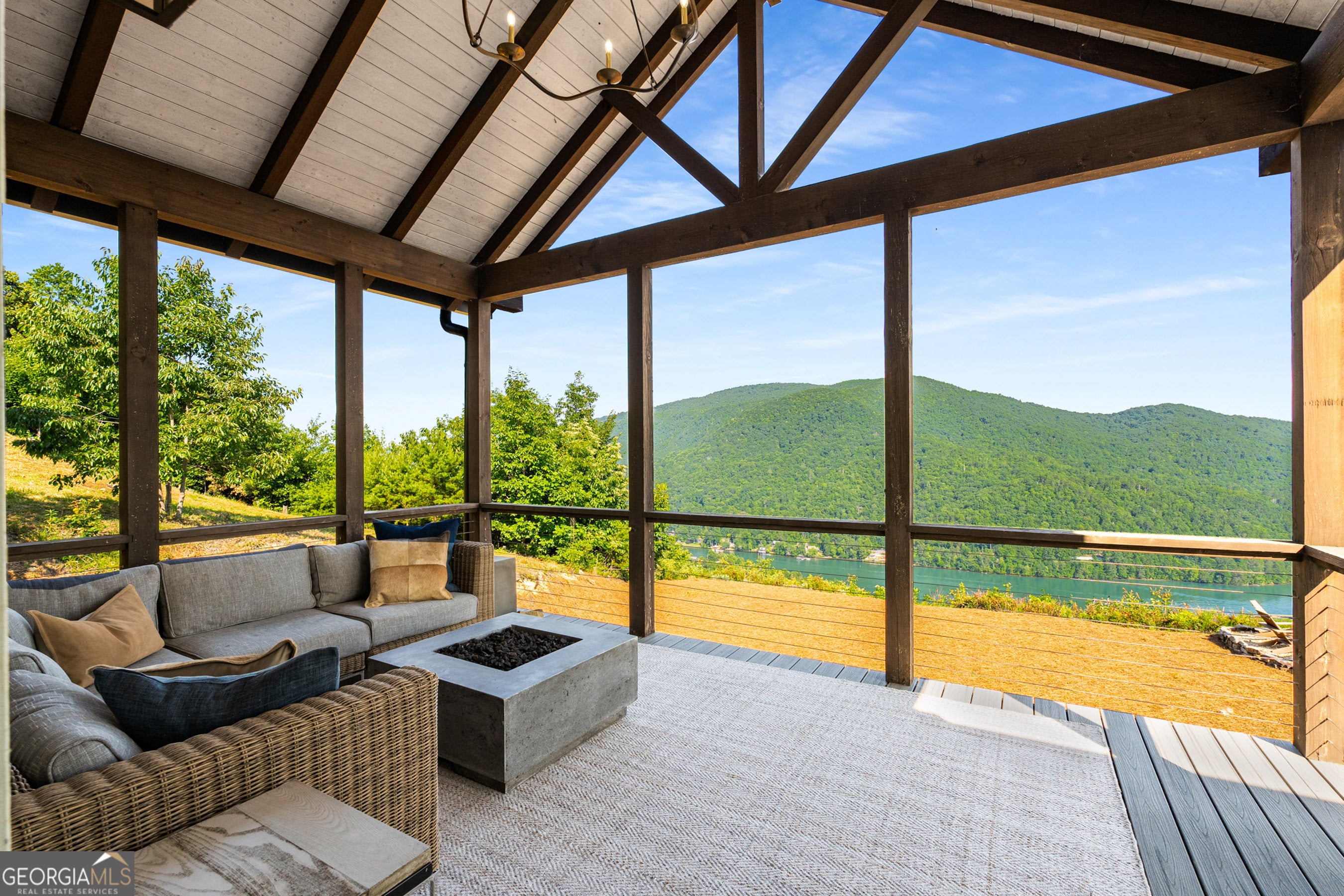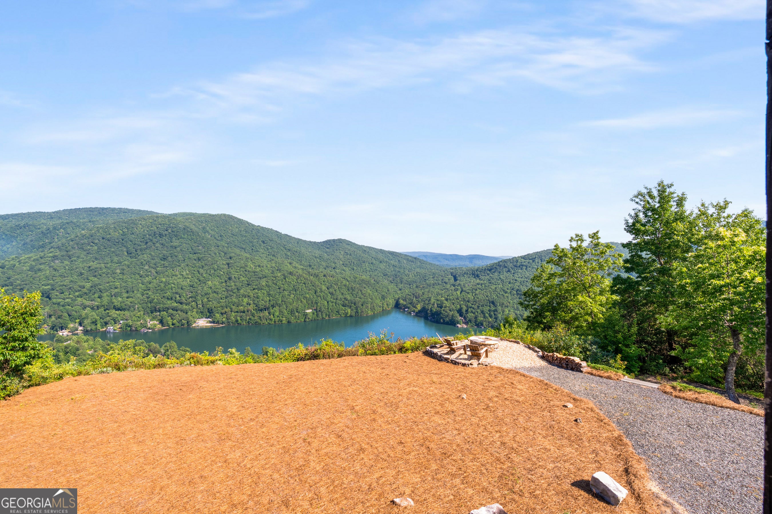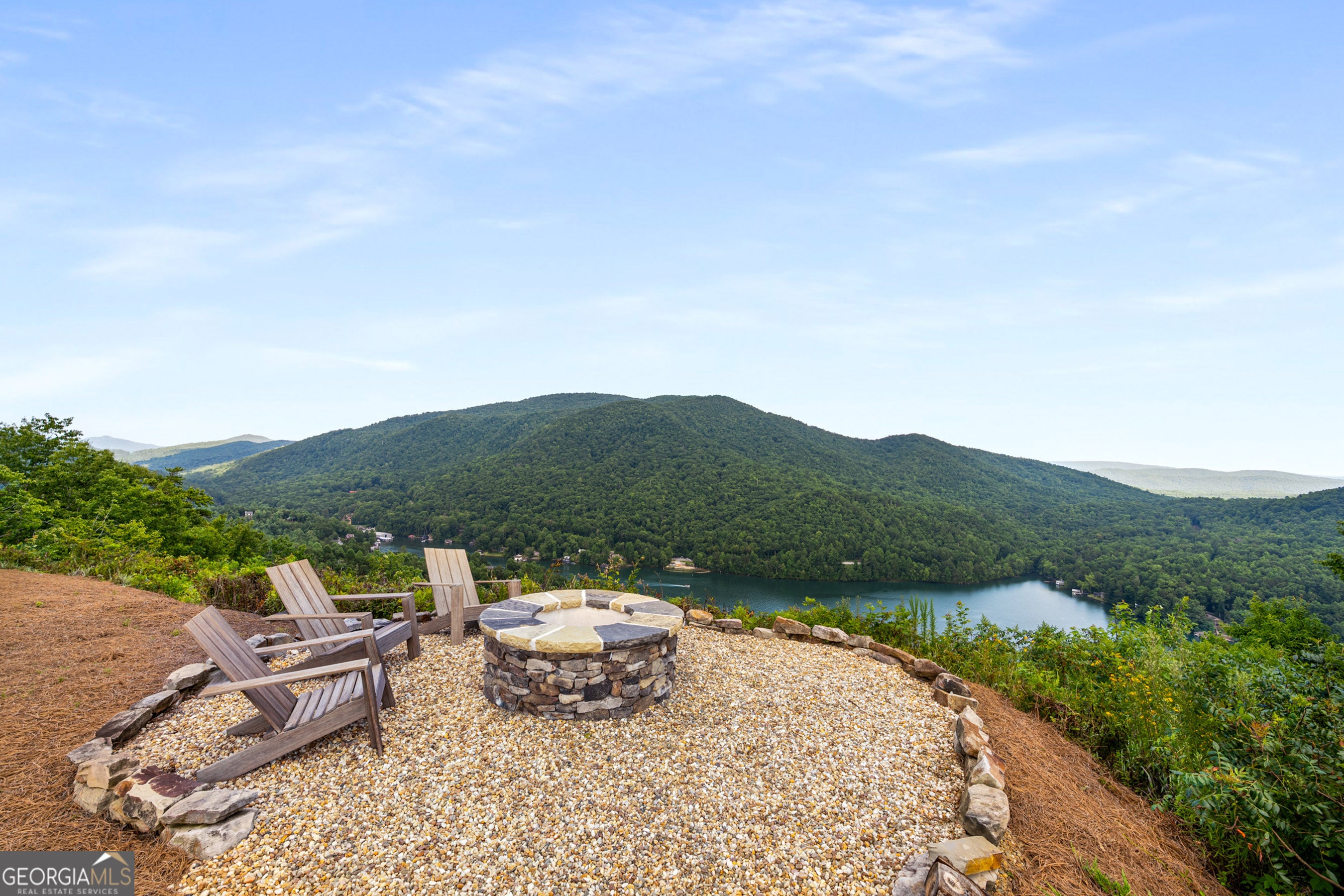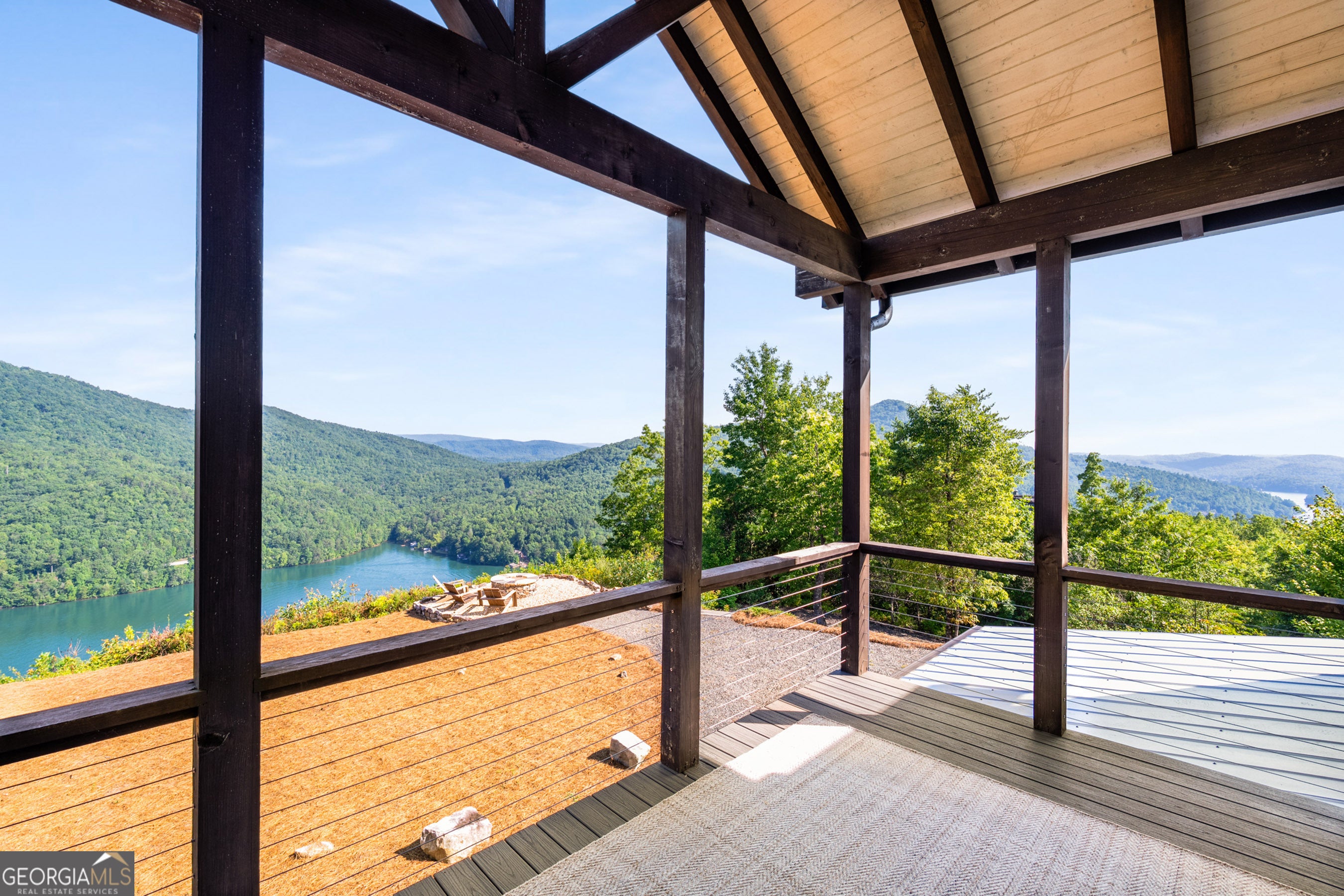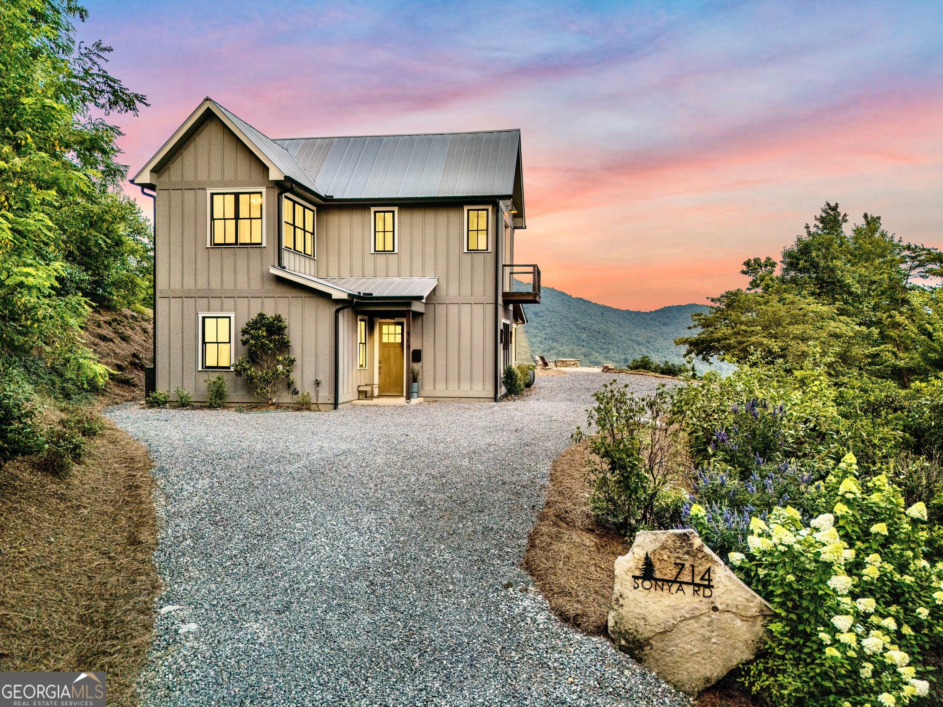 Located in exclusive Goat Cliff Estates, this 3-Bedroom + Loft, 2-Bathroom home offers a rare opportunity to own a piece of North Georgia paradise (fee-simple) with deeded lake access and dock house. This home has one of the best views of all of Lake Burton, and 300 square feet of custom decks for additional outdoor living (1,856+300 = 2,156 sq. ft*). Designed to embrace the outdoors, this elegant mountain retreat boasts sweeping layered mountain vistas and spectacular sunrise and sunset views overlooking Lake Burton. Step inside to an open-concept living area with high ceilings (10, 14+ throughout), large picture windows, and warm wood accents that create a sense of comfort and grandeur. The well-appointed kitchen opens seamlessly to the living and dining spaces, perfect for entertaining guests with a large seven-foot island and custom-built cabinetry. The spacious primary suite offers a private sanctuary with stunning views, a spa-like bathroom including a large overhead rain shower, and soaking tub with sunset views. Two guest bedrooms on the main level provide ample room for family or visitors. Outside, enjoy a porch that's ideal for morning coffee with incredible long mountain views or enjoy sunset cocktails while sitting around the masonry outdoor fire pit overlooking the lake. As part of the Goat Cliff Estates community, residents enjoy shared deeded lake access and a dock house, allowing for boating, kayaking, and lakeside recreation. With its unmatched views, and convenient location only minutes from Waterfall Club, Anchorage Boat Dock and the amenities of Downtown Clayton, 714 Sonya Road is a rare gem in the Lake Burton market (on the preferred north end of the Lake) whether you're seeking a luxurious full-time residence or a weekend escape.