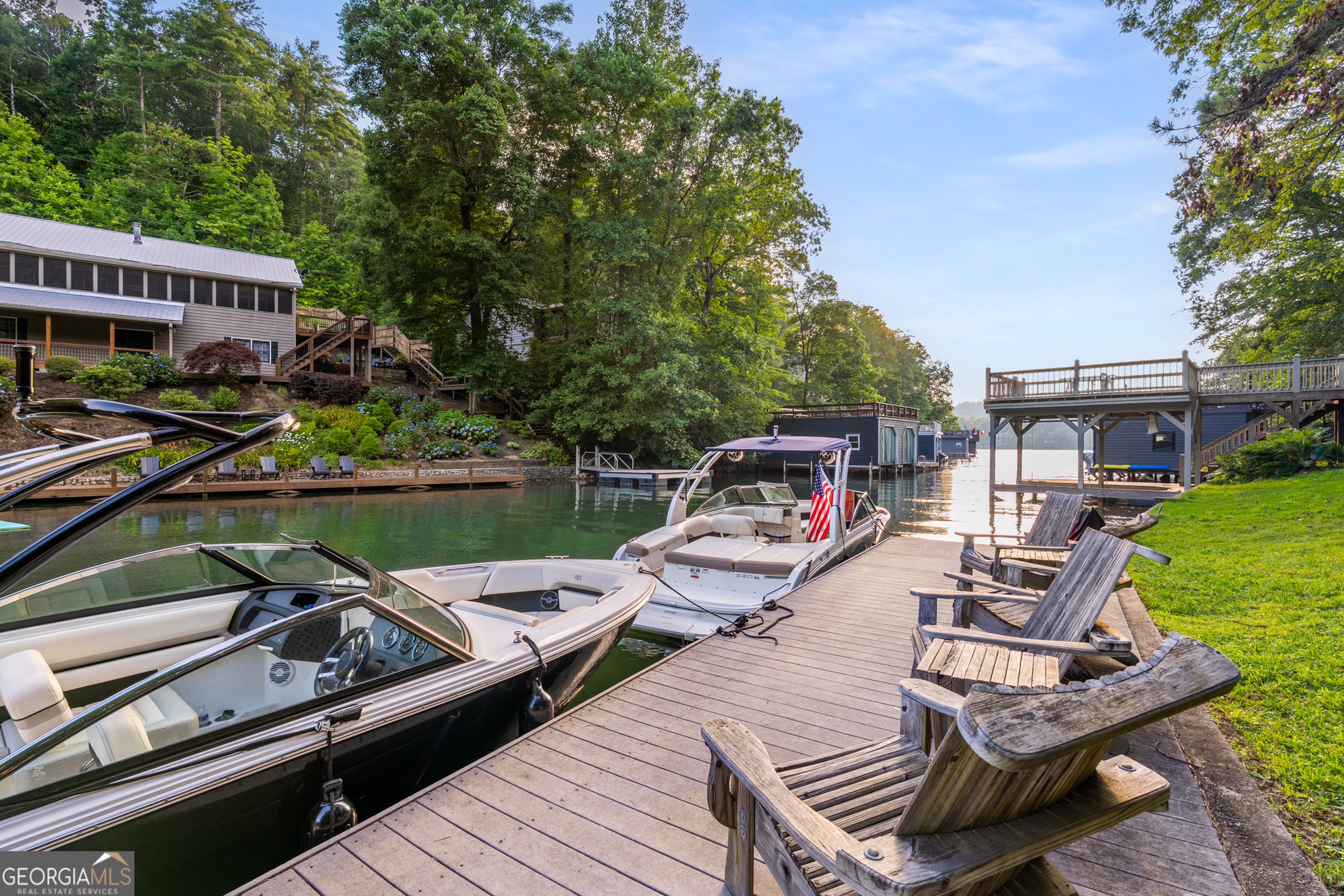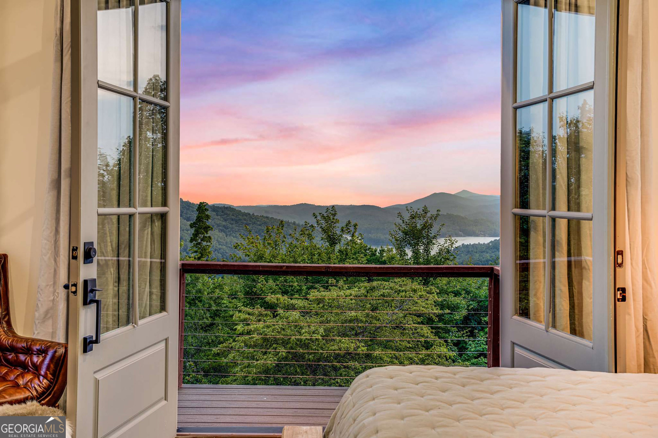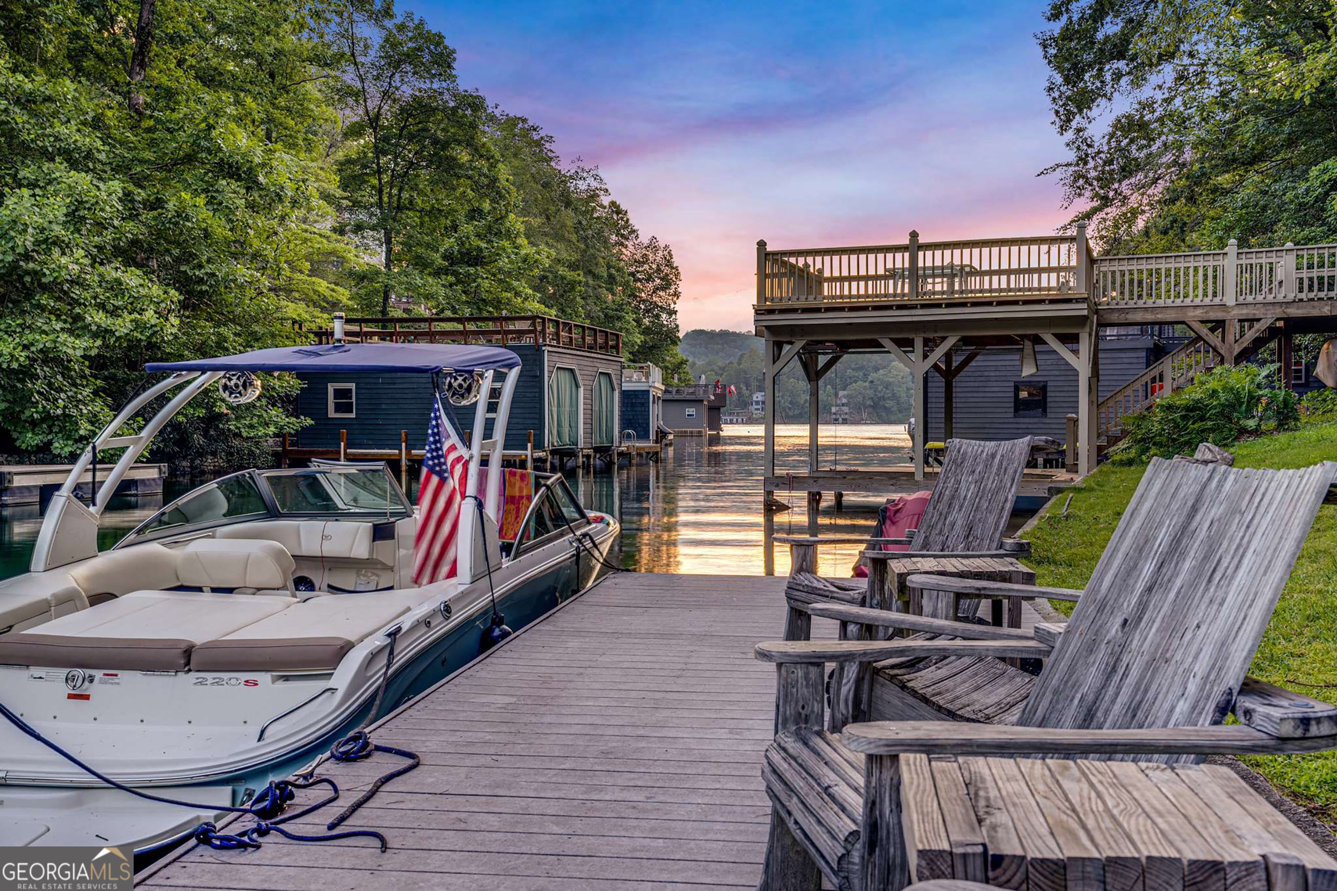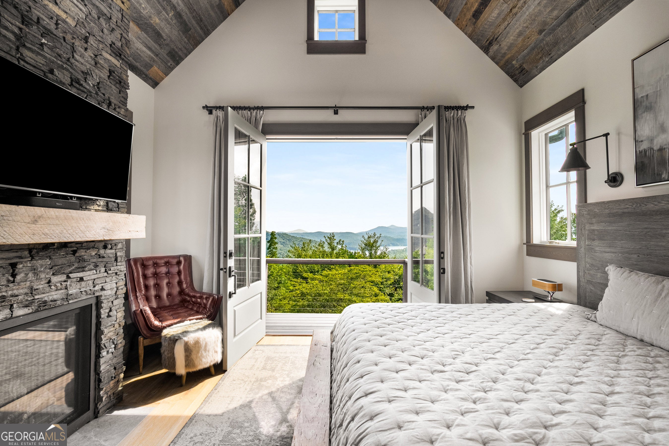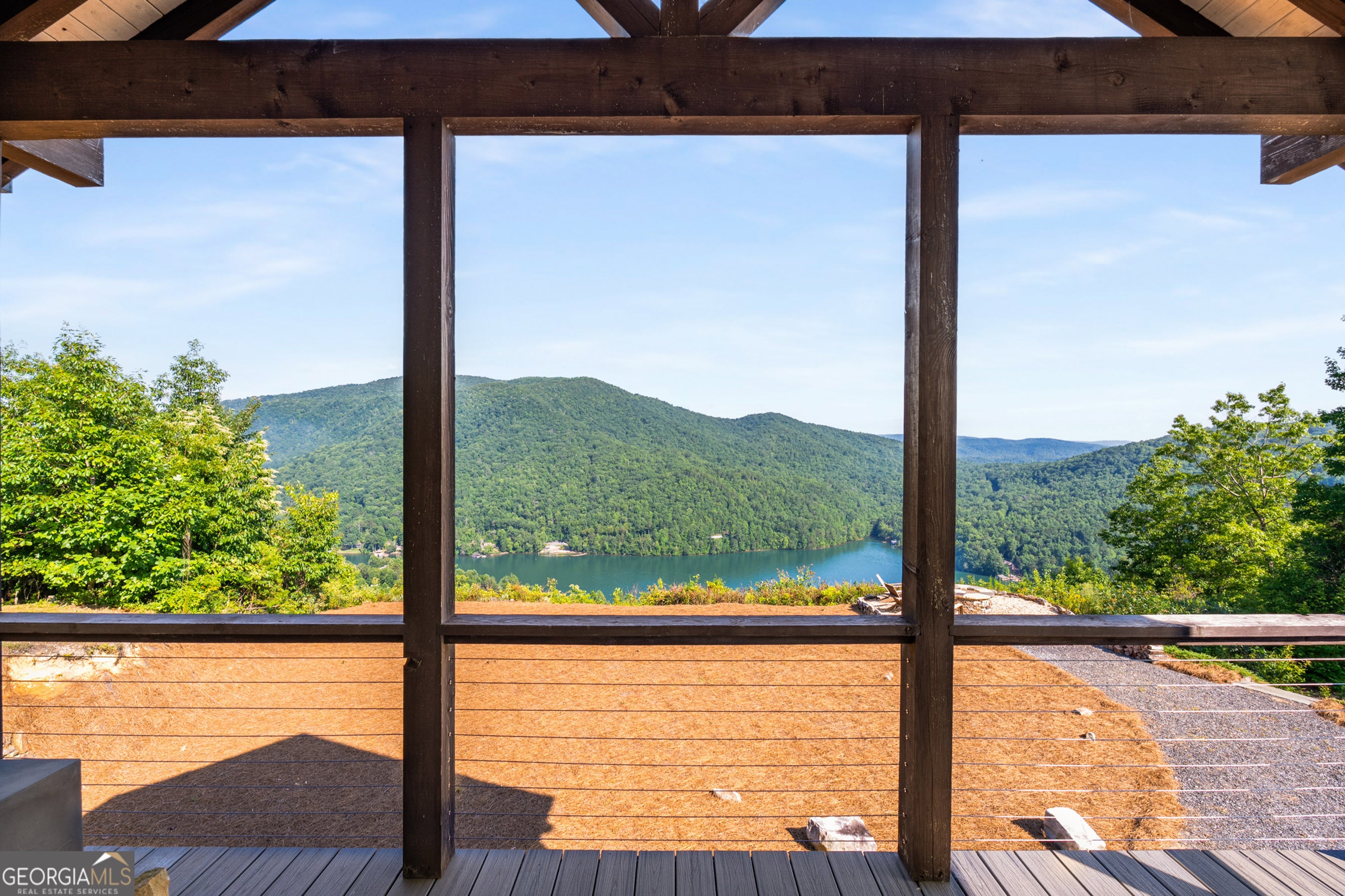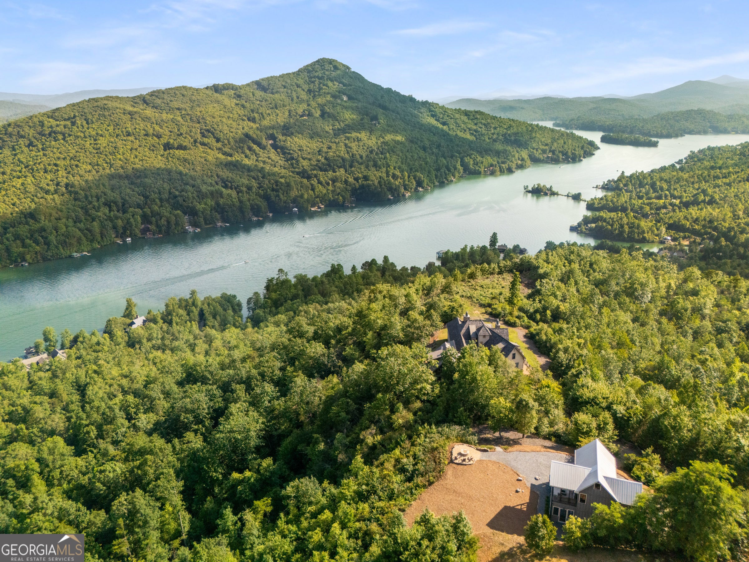 Located in exclusive Goat Cliff Estates, this 3-Bedroom + Loft, 2-Bathroom home offers a rare opportunity to own a piece of North Georgia paradise (fee-simple) with deeded lake access and dock house. This home has one of the best views of all of Lake Burton, and 300 square feet of custom decks for additional outdoor living (1,856+300 = 2,156 sq. ft*). Designed to embrace the outdoors, this elegant mountain retreat boasts sweeping layered mountain vistas and spectacular sunrise and sunset views overlooking Lake Burton. Step inside to an open-concept living area with high ceilings (10, 14+ throughout), large picture windows, and warm wood accents that create a sense of comfort and grandeur. The well-appointed kitchen opens seamlessly to the living and dining spaces, perfect for entertaining guests with a large seven-foot island and custom-built cabinetry. The spacious primary suite offers a private sanctuary with stunning views, a spa-like bathroom including a large overhead rain shower, and soaking tub with sunset views. Two guest bedrooms on the main level provide ample room for family or visitors. Outside, enjoy a porch that's ideal for morning coffee with incredible long mountain views or enjoy sunset cocktails while sitting around the masonry outdoor fire pit overlooking the lake. As part of the Goat Cliff Estates community, residents enjoy shared deeded lake access and a dock house, allowing for boating, kayaking, and lakeside recreation. With its unmatched views, and convenient location only minutes from Waterfall Club, Anchorage Boat Dock and the amenities of Downtown Clayton, 714 Sonya Road is a rare gem in the Lake Burton market (on the preferred north end of the Lake) whether you're seeking a luxurious full-time residence or a weekend escape.