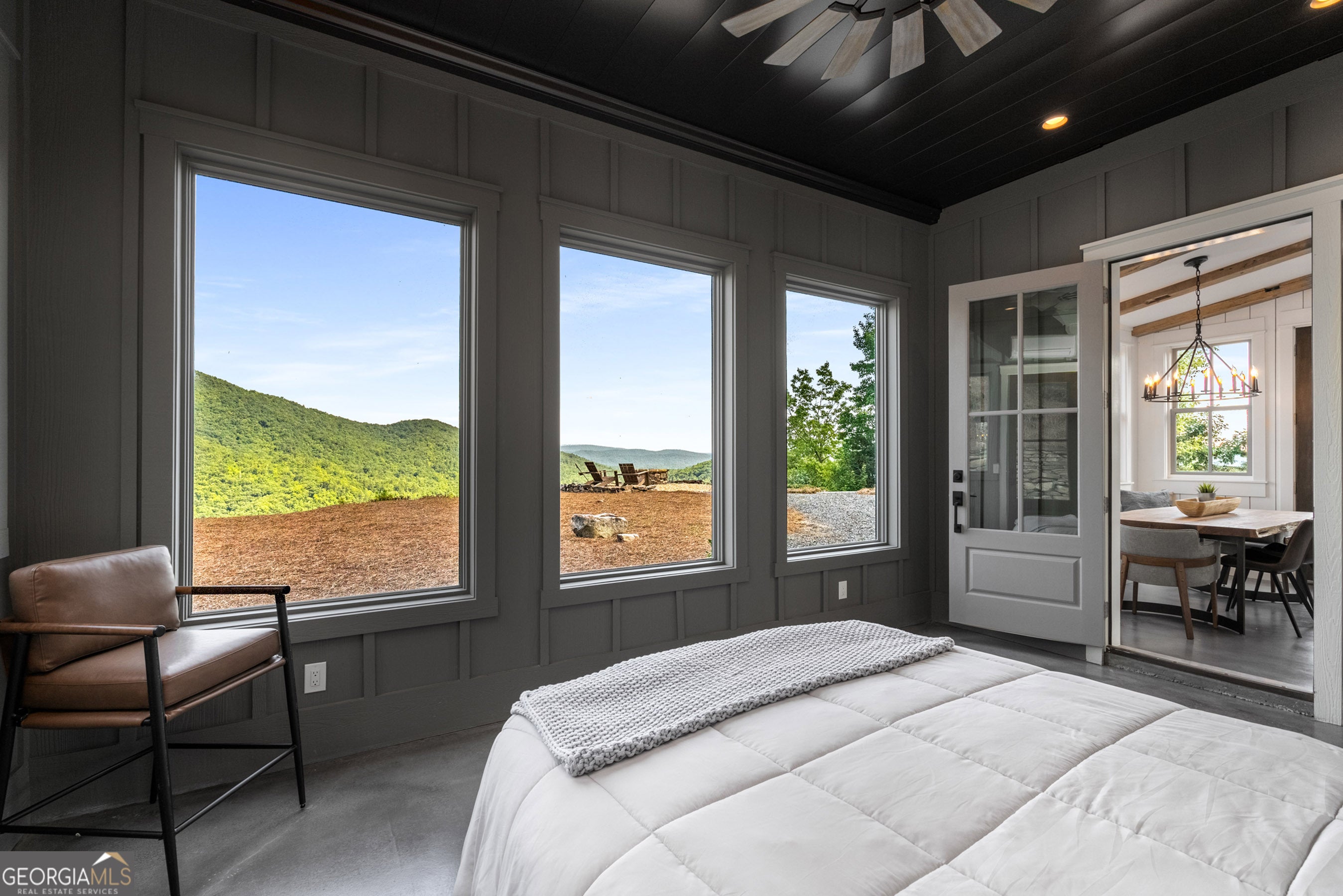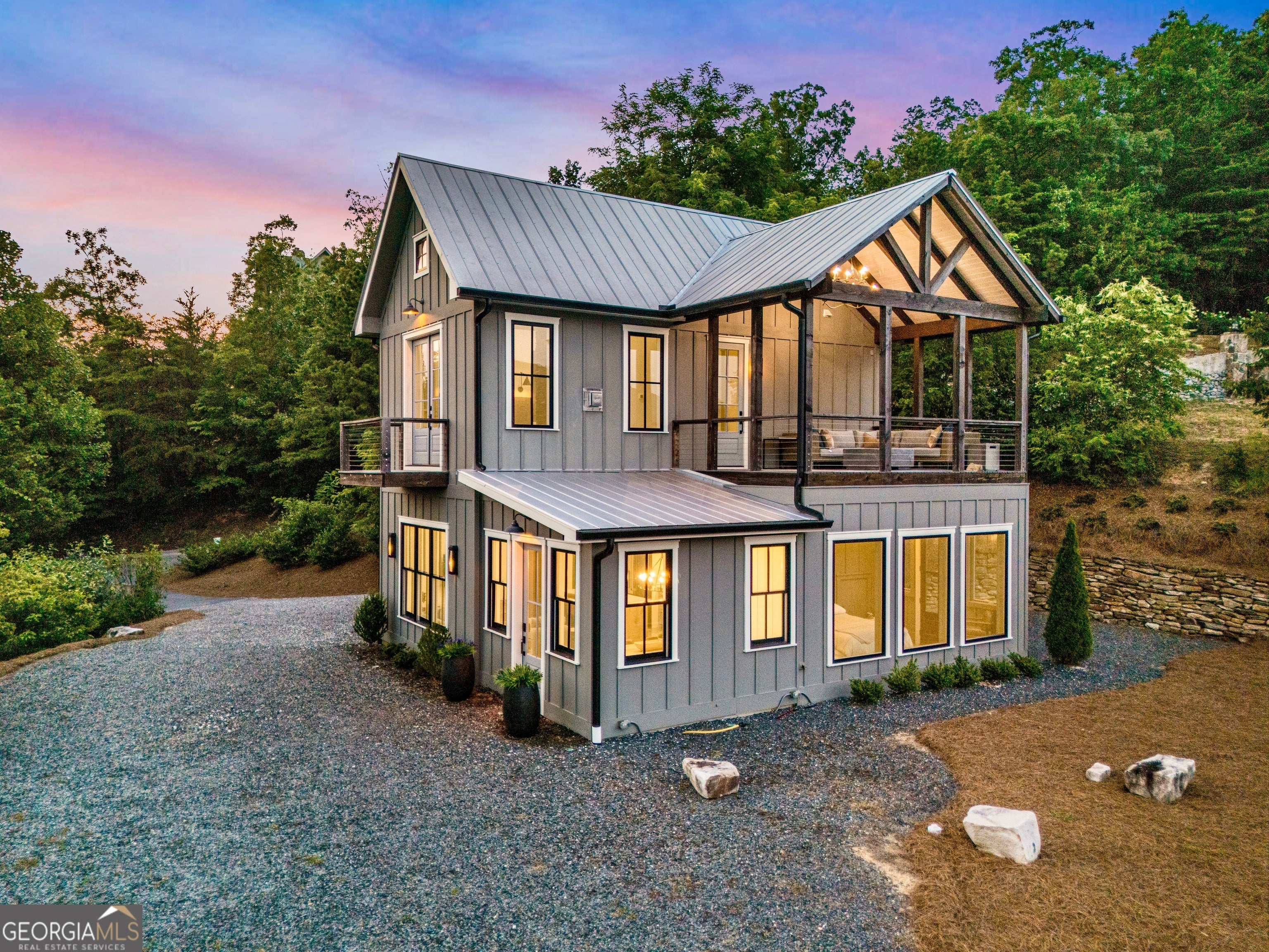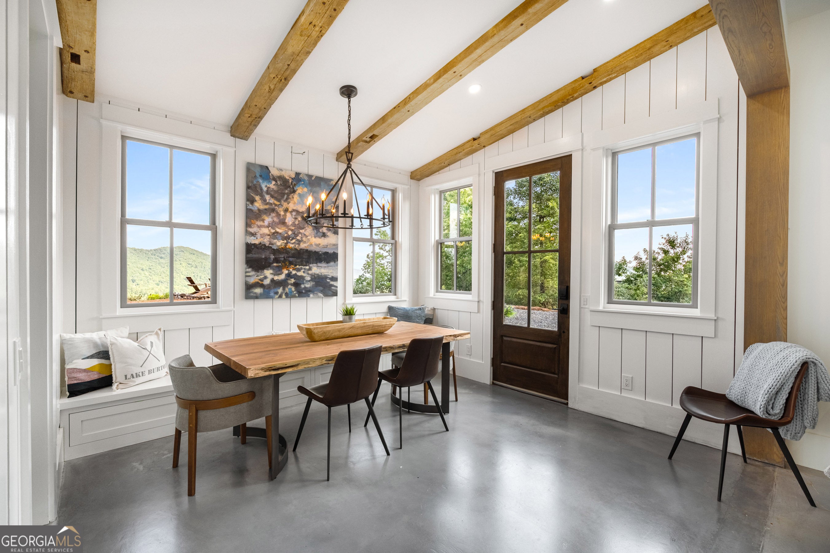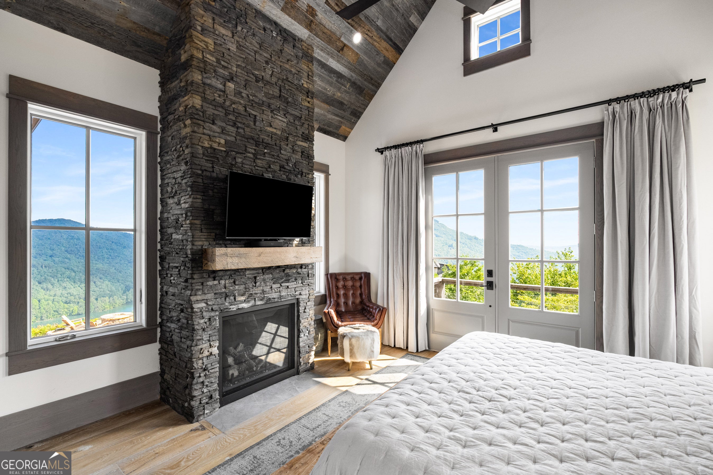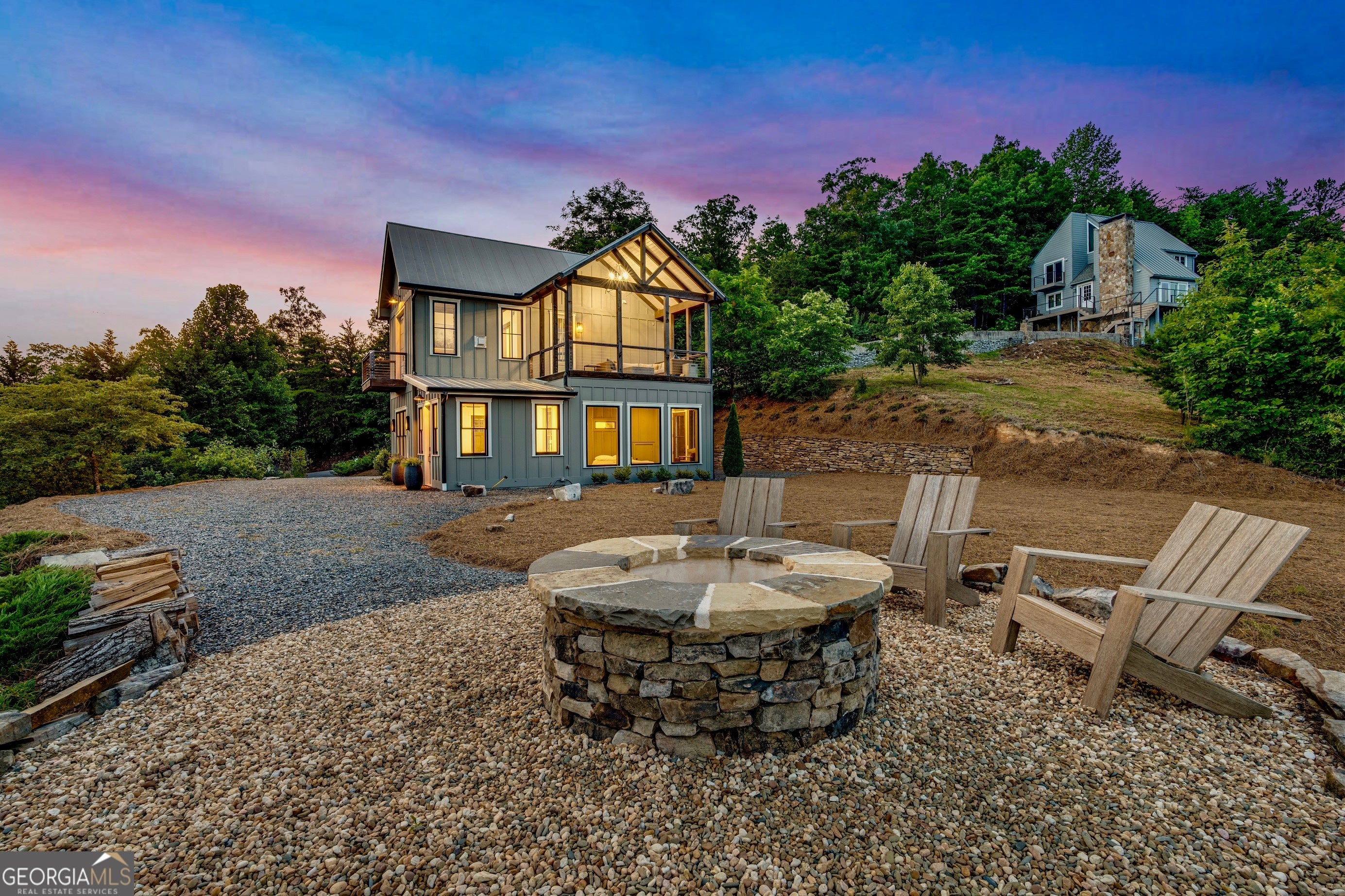 Located in exclusive Goat Cliff Estates, this 3-Bedroom + Loft, 2-Bathroom home offers a rare opportunity to own a piece of North Georgia paradise (fee-simple) with deeded lake access and dock house. This home has one of the best views of all of Lake Burton, and 300 square feet of custom decks for additional outdoor living (1,856+300 = 2,156 sq. ft*). Designed to embrace the outdoors, this elegant mountain retreat boasts sweeping layered mountain vistas and spectacular sunrise and sunset views overlooking Lake Burton. Step inside to an open-concept living area with high ceilings (10, 14+ throughout), large picture windows, and warm wood accents that create a sense of comfort and grandeur. The well-appointed kitchen opens seamlessly to the living and dining spaces, perfect for entertaining guests with a large seven-foot island and custom-built cabinetry. The spacious primary suite offers a private sanctuary with stunning views, a spa-like bathroom including a large overhead rain shower, and soaking tub with sunset views. Two guest bedrooms on the main level provide ample room for family or visitors. Outside, enjoy a porch that's ideal for morning coffee with incredible long mountain views or enjoy sunset cocktails while sitting around the masonry outdoor fire pit overlooking the lake. As part of the Goat Cliff Estates community, residents enjoy shared deeded lake access and a dock house, allowing for boating, kayaking, and lakeside recreation. With its unmatched views, and convenient location only minutes from Waterfall Club, Anchorage Boat Dock and the amenities of Downtown Clayton, 714 Sonya Road is a rare gem in the Lake Burton market (on the preferred north end of the Lake) whether you're seeking a luxurious full-time residence or a weekend escape.
