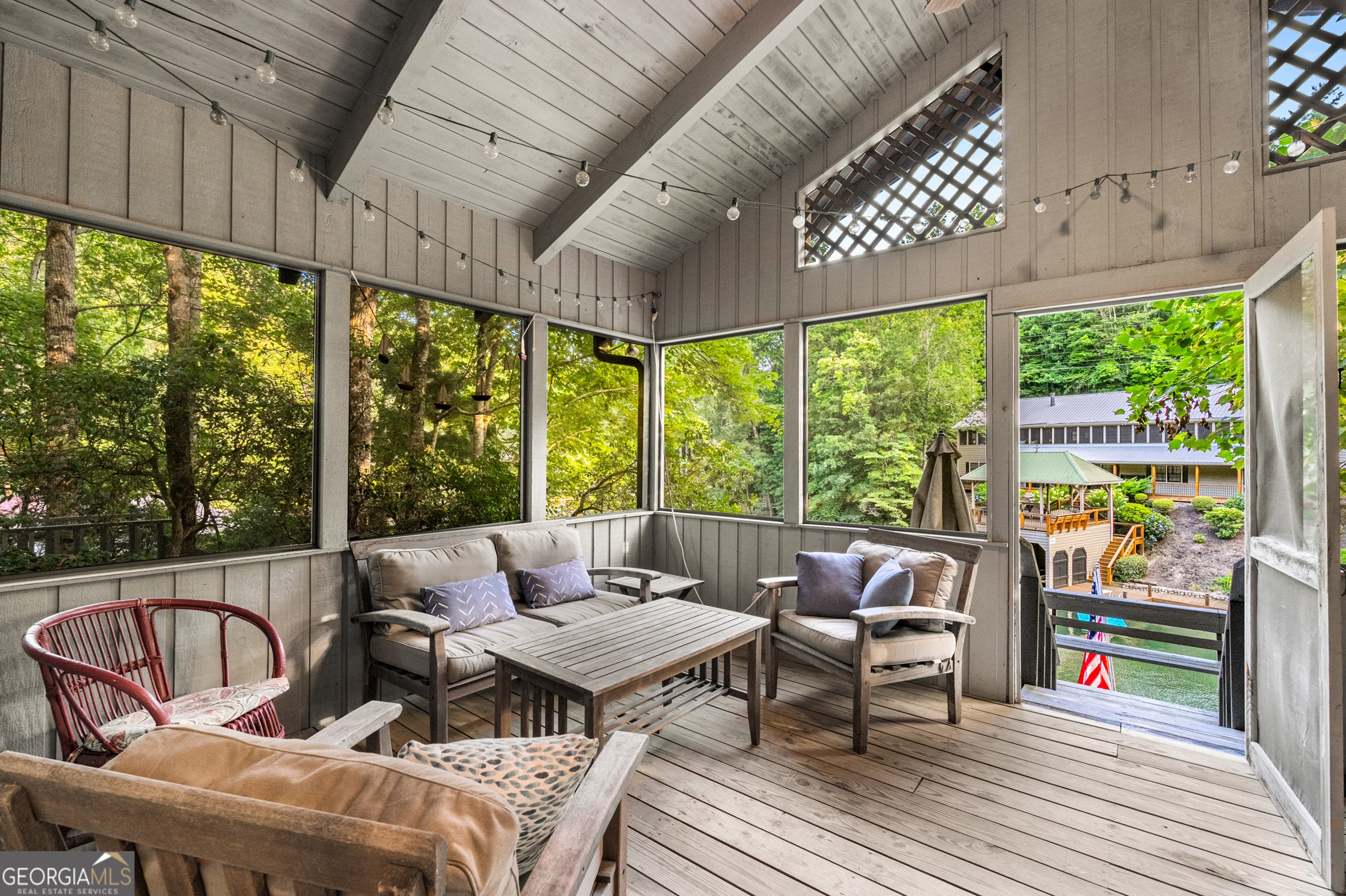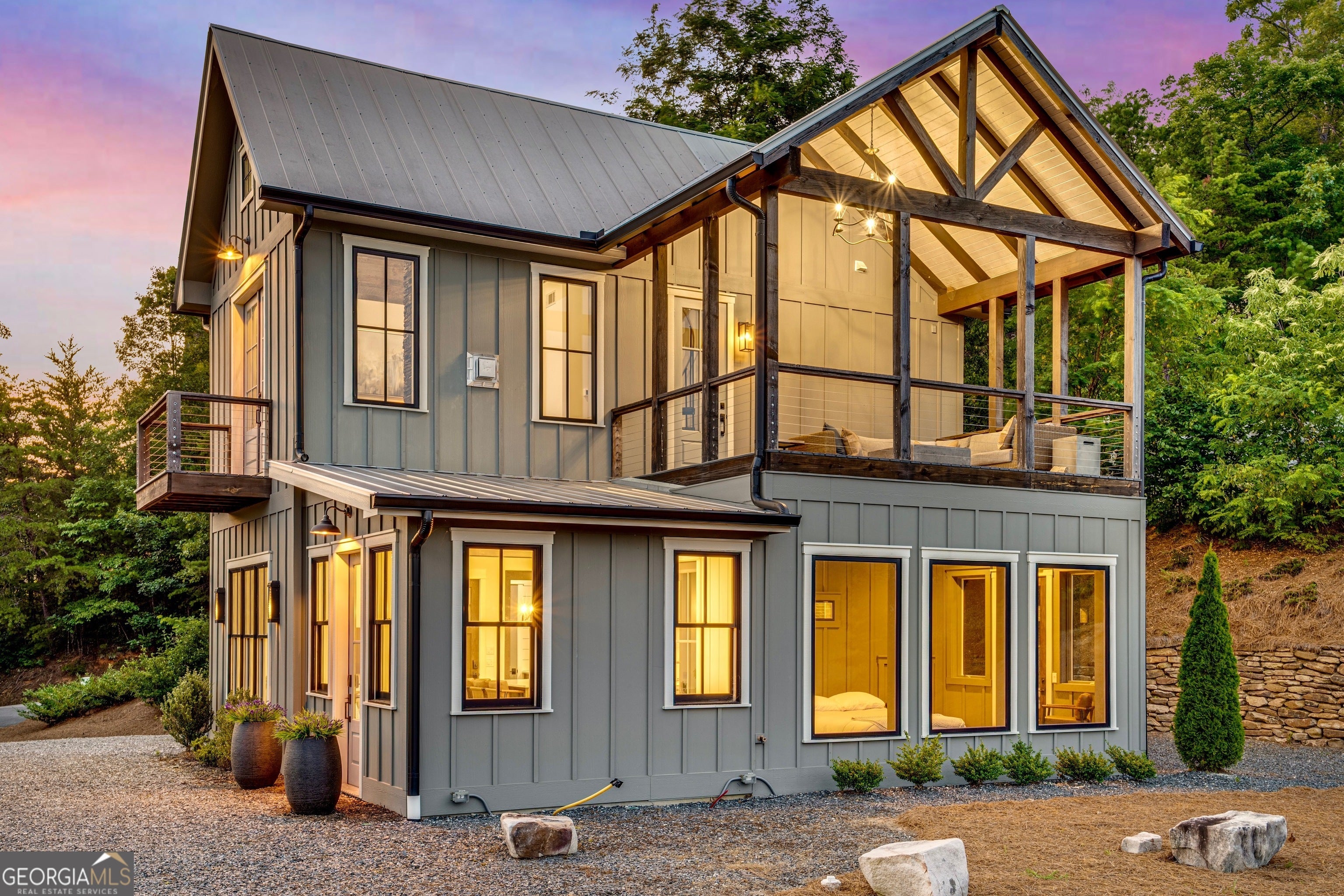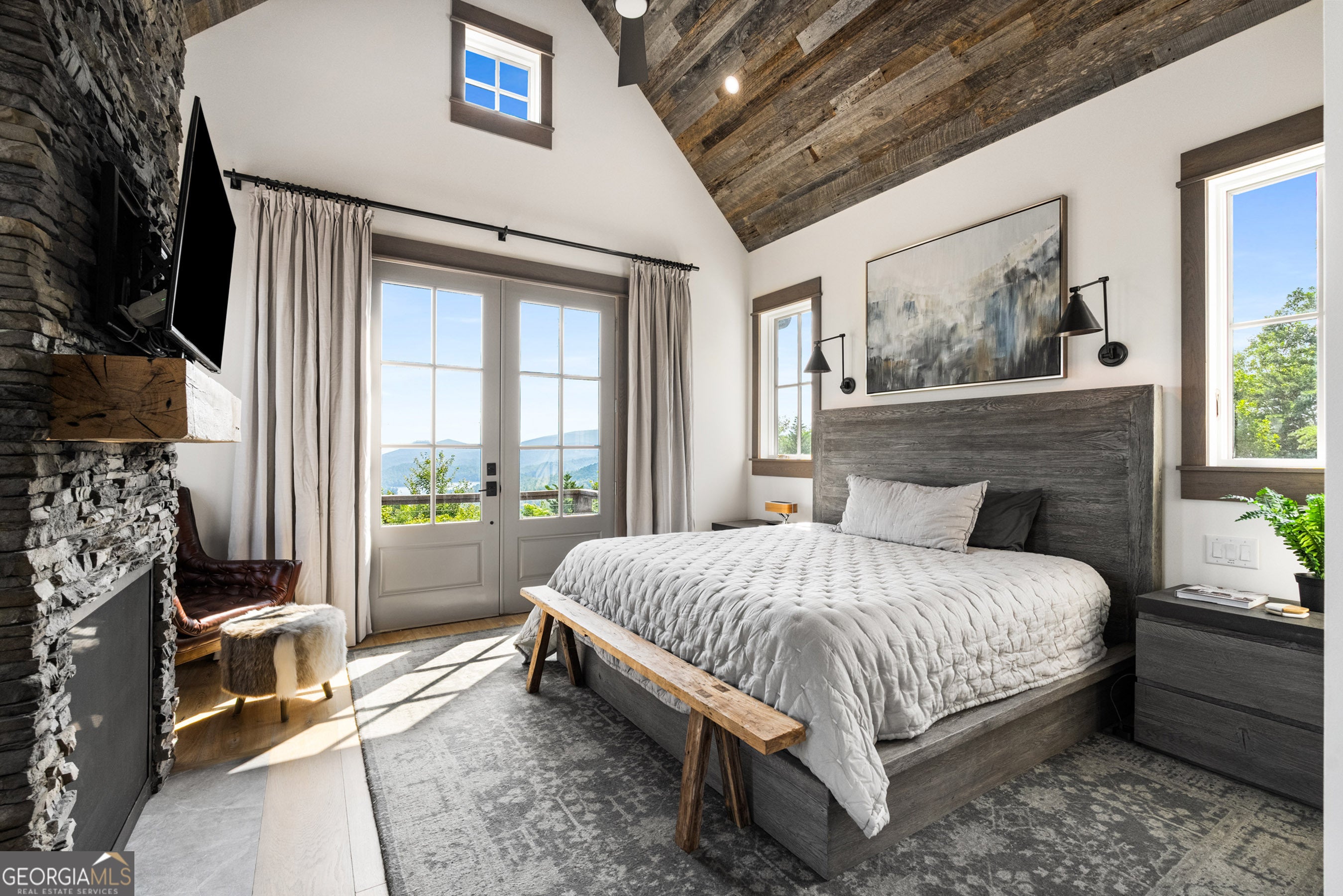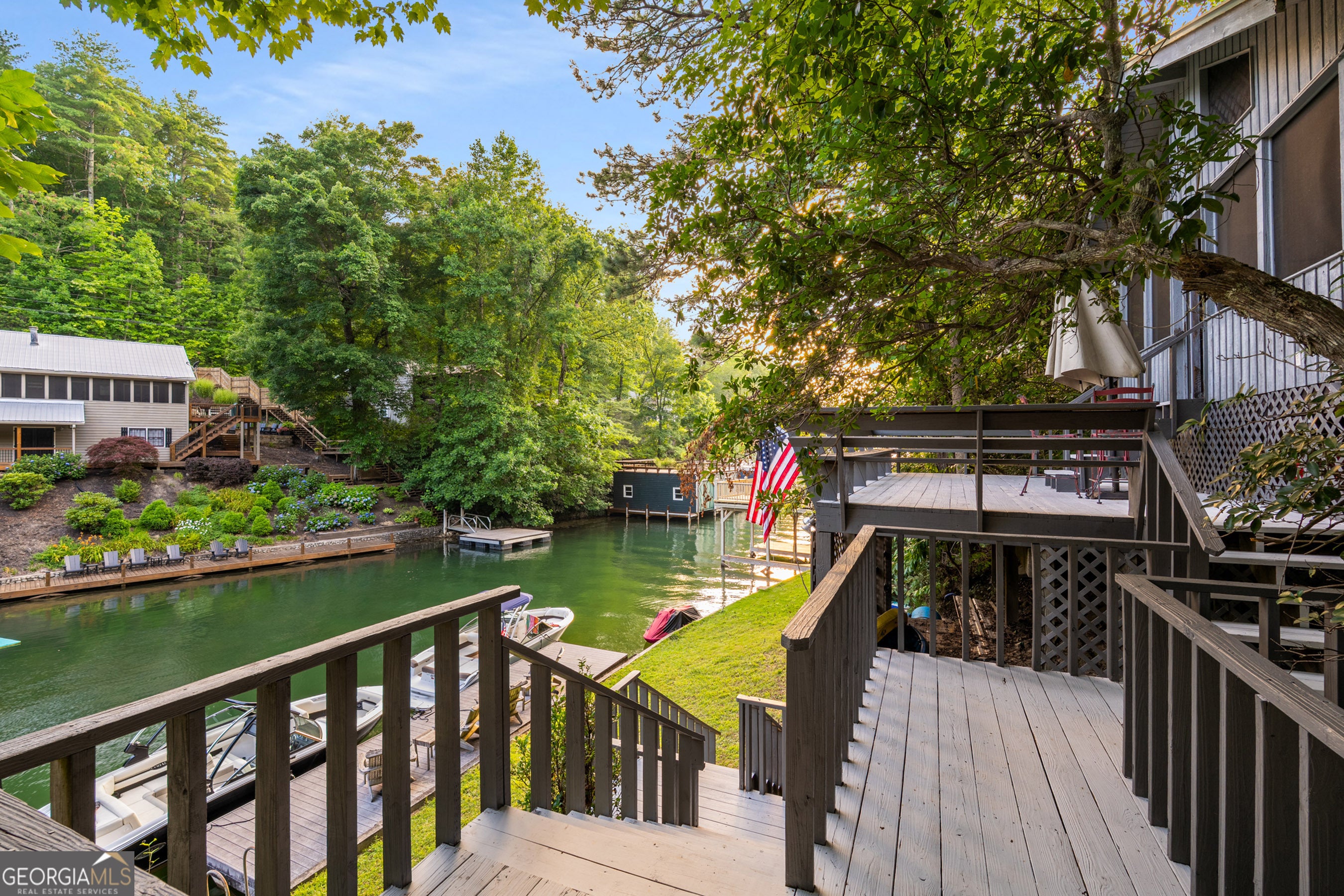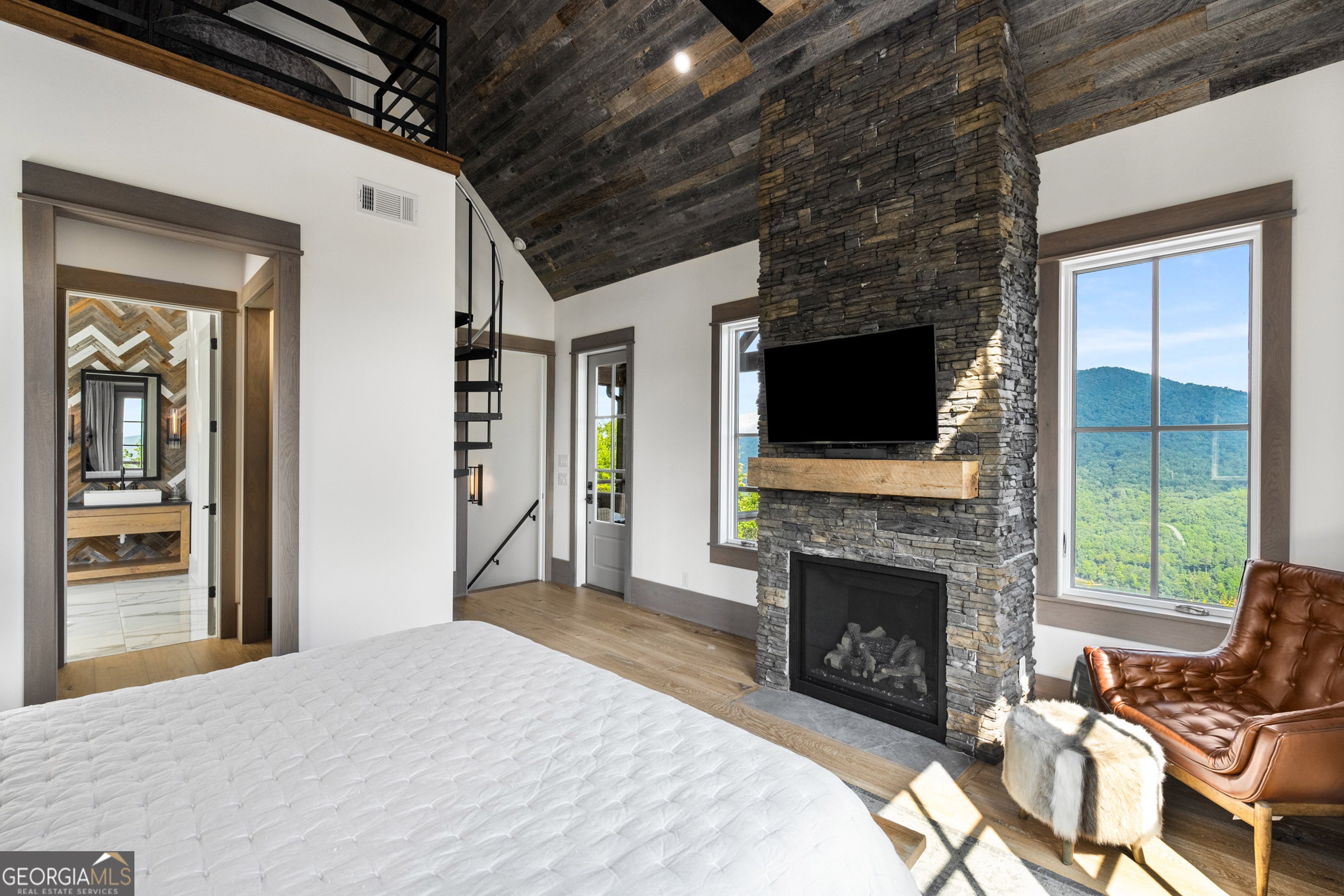Located in exclusive Goat Cliff Estates, this 3-Bedroom + Loft, 2-Bathroom home offers a rare opportunity to own a piece of North Georgia paradise (fee-simple) with deeded lake access and dock house. This home has one of the best views of all of Lake Burton, and 300 square feet of custom decks for additional outdoor living (1,856+300 = 2,156 sq. ft*). Designed to embrace the outdoors, this elegant mountain retreat boasts sweeping layered mountain vistas and spectacular sunrise and sunset views overlooking Lake Burton. Step inside to an open-concept living area with high ceilings (10, 14+ throughout), large picture windows, and warm wood accents that create a sense of comfort and grandeur. The well-appointed kitchen opens seamlessly to the living and dining spaces, perfect for entertaining guests with a large seven-foot island and custom-built cabinetry. The spacious primary suite offers a private sanctuary with stunning views, a spa-like bathroom including a large overhead rain shower, and soaking tub with sunset views. Two guest bedrooms on the main level provide ample room for family or visitors. Outside, enjoy a porch that's ideal for morning coffee with incredible long mountain views or enjoy sunset cocktails while sitting around the masonry outdoor fire pit overlooking the lake. As part of the Goat Cliff Estates community, residents enjoy shared deeded lake access and a dock house, allowing for boating, kayaking, and lakeside recreation. With its unmatched views, and convenient location only minutes from Waterfall Club, Anchorage Boat Dock and the amenities of Downtown Clayton, 714 Sonya Road is a rare gem in the Lake Burton market (on the preferred north end of the Lake) whether you're seeking a luxurious full-time residence or a weekend escape.