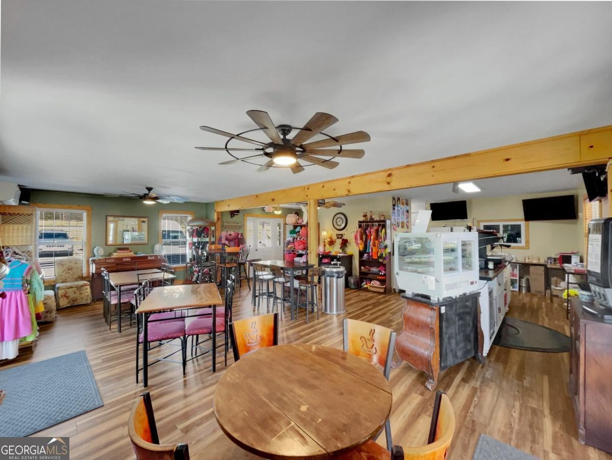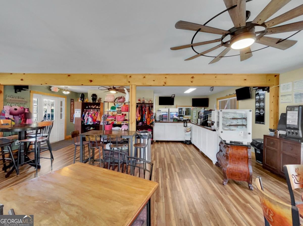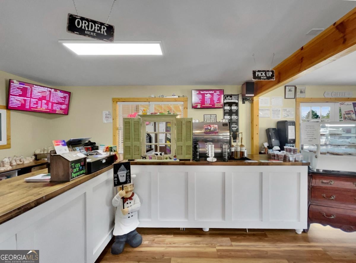 Presenting a rare and dynamic commercial offering in downtown Crawford-home to a highly visited cafe celebrated for its handcrafted artisan creations and unique, crowd-pleasing menu. This property is thoughtfully designed with a complete commercial kitchen, multiple welcoming dining spaces, an expansive outdoor deck for entertainment, and convenient on-site parking. The business is well established with a strong customer following and operates as a true turnkey opportunity, with the real estate, successful cafe operation with all equipment included and options for rental income too. DETAILS: *1906 SqFt. *Year Built: 2000. *Renovated 2023 *1.04 Acre Lot. *2 ADA Guest Restrooms *1 Full Bath. SPECIAL FEATURES: -Durable Luxury Vinyl Plank Flooring -Neutral Paint Palette Throughout -Decorative Light Fixtures and Custom Ceiling Fans. -Retail Counter space. COMMERCIAL KITCHEN: -Tile Floors -Stainless Sinks & Sanitation Station -10 Burner Stove & Oven -Vent Hood -Fry Center -Prep Tables -Pass-thru Window -Pantry with shelving and prep counter -Commercial Refrigerator & Freezer -Updated LED Lighting -Delivery Door Access. SECOND FLOOR: -1-2 Bedroom Options -Full Bath -Kitchenette -Private Upper Deck Access. --Adding exceptional value is the fully finished upper-level apartment, featuring a centrally located kitchenette with access to the upper deck, and Full Bath with storage and updated shower. -2 Optional Bedrooms or Living Space flanks the kitchen area, each with carpet flooring, and oversized closets. This dynamic addition is perfect for owner living while conducting your business below, employee housing, long-term rental, or even Airbnb use. EXTERIOR: ~1500+/-sqft., Oversized Covered Deck extending to a Wrap-Around Open-Air Deck. ~10 Parking Spots. ~Ramp Entry. ~Side Entry for deliveries. ~Road Signage. ~Gutter System. ~Brick & Vinyl Exterior. This versatile property offers the rare ability to live, work, or generate additional income, making it an outstanding investment in a growing and vibrant community. Welcome to the Town & Country Kafe!!