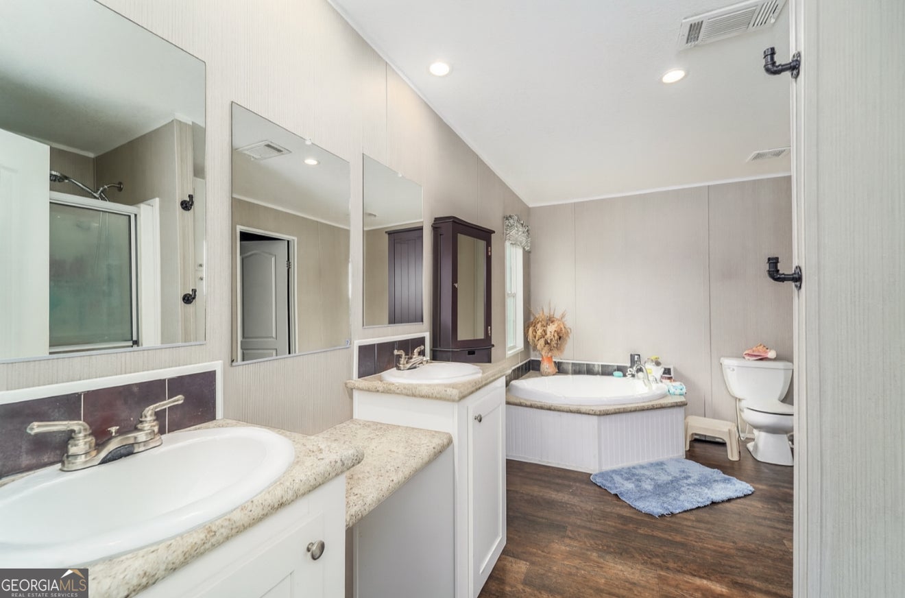 Discover peaceful country living with this spacious five-bedroom, three-bathroom mobile home tucked away on approximately five private acres in Hortense, Georgia. Located in Wayne County and situated along the Brantley County line, this property offers an ideal balance of privacy and accessibility. Set back off a quiet dirt road, the home features an open floor plan with multiple living spaces, a large kitchen, generous bedrooms, and a split-bedroom layout well suited for households of all sizes. The expansive primary suite includes a roomy bathroom and walk-in closet, while the additional bedrooms provide flexibility for guests, home offices, or hobby spaces. Outside, enjoy the peace and privacy of your own acreage-perfect for exploring, homesteading, or simply taking in the quiet surroundings. A shop with a concrete slab provides valuable space for storage, projects, or equipment. A small creek at the rear of the property attracts abundant wildlife and enhances the rural setting. Additional acreage is available for purchase, offering the opportunity to expand if desired. The property will be surveyed prior to closing, and a new driveway can be added as part of the process.