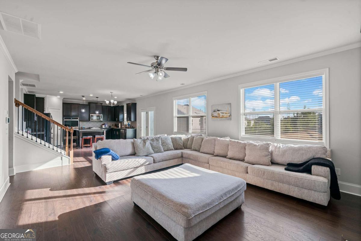 Priced to sell! Welcome to the breathtaking Grayson floor plan, built in 2021 by D.R. Horton! A stunning 5-bedroom, 4-bath, 3-car garage home that blends modern elegance with energy efficiency. From the moment you step inside, you'll be captivated by the soaring 2-story living room, the formal dining room with a coffered ceiling, and the cozy family room with a fireplace perfect for gatherings and relaxation. Designed for both comfort and functionality, this home boasts an open-concept layout, where the family room flows seamlessly into the chef's kitchen, complete with 42" cabinets, granite countertops, a spacious breakfast island, stainless steel appliances, a walk-in pantry, and luxury vinyl plank flooring. A 5th guest bedroom and full bath on the main level provide convenience, while the mudroom with laundry adds everyday practicality. Upstairs, an open loft offers the perfect space for entertainment, a home office, or movie nights. Retreat to the expansive master suite, featuring a private sitting area, his-and-hers closets, dual vanities, a soaking tub, and a walk-in shower. The secondary bedrooms are generously sized, and the fourth bedroom boasts its own private bath-ideal for guests or in-laws. This home is equipped with solar panels, promoting energy efficiency and lower utility costs, along with smart home technology for modern convenience. Located in a quiet, beautiful community with swim, tennis, and a clubhouse, this home is just 20 minutes from the airport, 10 minutes from Publix, and 15 minutes from Camp Creek Marketplace. Highly sought out Westlake High School district. Don't miss this incredible opportunity, homes with this space at this price don't last long! Schedule your showing today! Owner transferring, reduced for a quick sale! Hurry! This home has all the space for the value!