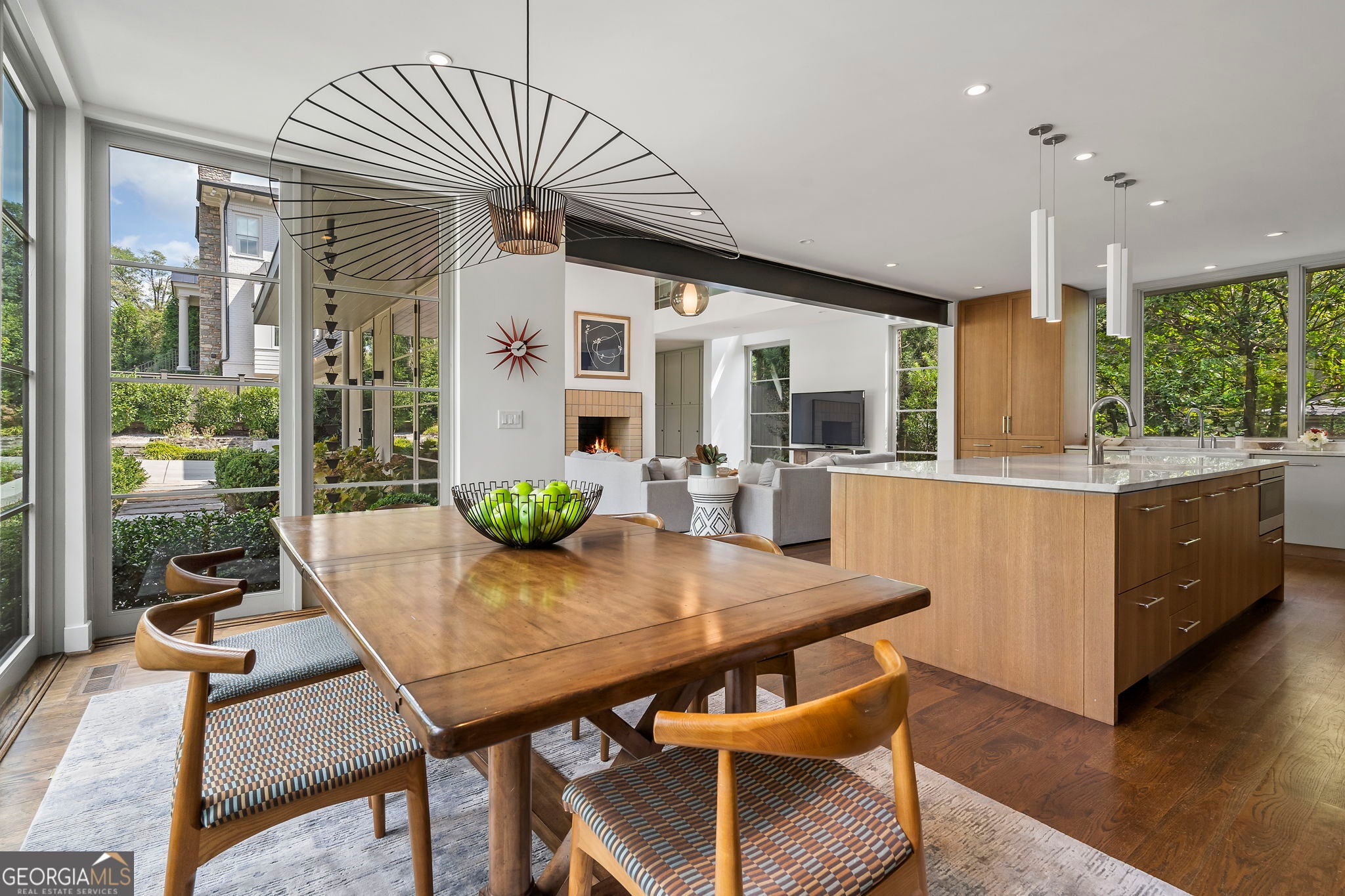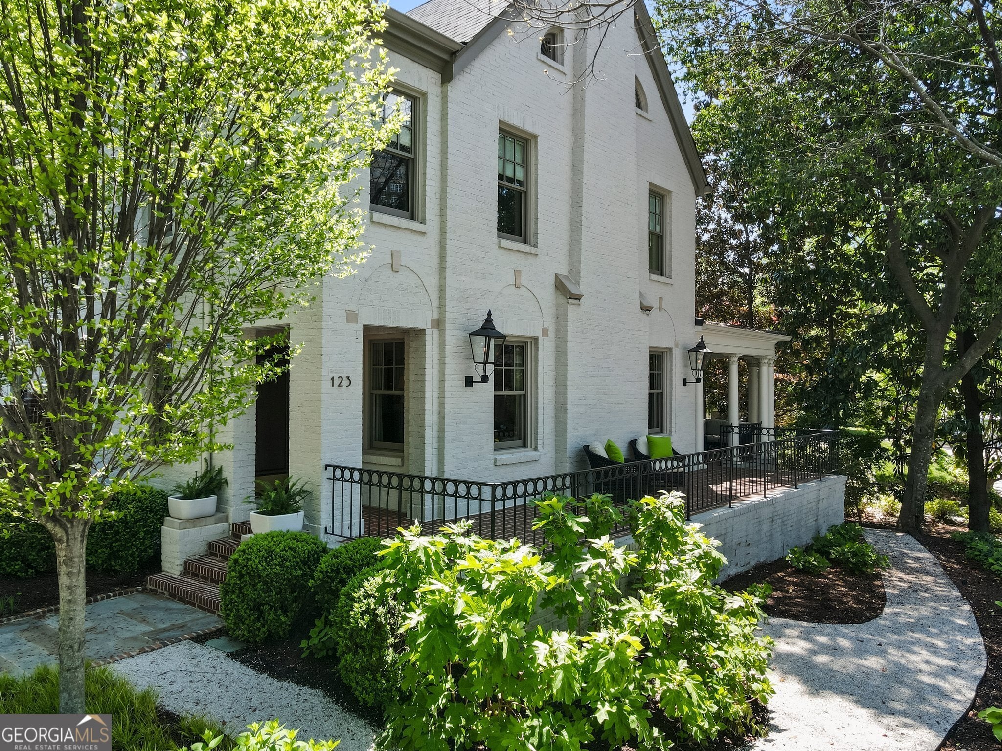 Exquisitely renovated and expanded in 2017, this exceptional Ansley Park residence sits on a premier corner lot at 17th Street and Peachtree Circle. Designed by Stainback-Hess Studio and built by Horner Homes, with landscapes by Jay Winters of Elatum Designs, the home blends timeless architectural character with refined modern living. A gracious foyer opens to elegant formal living and dining rooms, featuring fireplaces, detailed moldings, and French doors ideal for entertaining. The chef's kitchen flows seamlessly into a dramatic two-story vaulted family room with wood-burning fireplace. A music room or study with built-ins and garden views completes the main level. Upstairs, the luxurious primary suite offers a spa-like bath and walk-in closet, accompanied by three additional ensuite bedrooms, a laundry room, and a fully floored attic with permanent stairs. The terrace level includes a bedroom, full bath, living area, gym, and extensive storage. A separate two-bedroom, one-bath in-law or nanny suite is located above the attached two-car garage. Additional features include abundant natural light, front and rear staircases, hardwood floors throughout, gas lanterns, gated off-street parking, dog run, and multiple outdoor entertaining spaces with stunning city views. Walkable to Piedmont Park, the Beltline, Colony Square, Arts Center MARTA, and all of Midtown. A rare opportunity to own a truly distinguished home in one of Atlanta's most coveted in-town neighborhoods. Note: Terrace level exceeds 2,000 sq ft and is not included in FMLS total square footage.