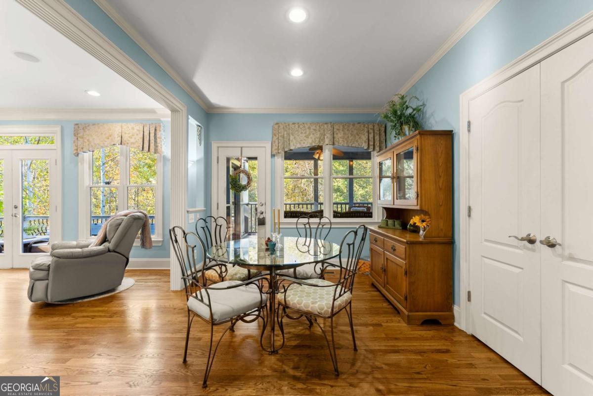 Welcome to your dream home in the highly sought-after BUFORD CITY SCHOOL district! This stunning, custom-built residence, cherished by its original owners, offers an unparalleled blend of luxury, comfort, and functionality. Step inside and be greeted by high-end finishes and upgraded details throughout. Gorgeous hardwood flooring flows seamlessly through the main and upper living areas, complemented by sophisticated crown molding. The elegant turret dining room allows you to entertain a large group. The gourmet kitchen is a chef's delight, featuring upgraded appliances, beautiful custom cabinets, quartz countertops, an arched pass-through breakfast bar, island with wine refrigerator and custom farm sink and a spacious pantry. A huge plus is the 2 convection ovens and warming drawer for those large gatherings. Enjoy your morning coffee in the sun-drenched screened porch adjacent to the cozy breakfast room which offers picturesque views of the private backyard. The main level also includes a large family room with fireplace and a versatile bedroom/office across from a full bathroom. Upstairs you will find the luxurious primary suite with a treehouse view, oversized bathroom with heated floors, double vanity, separate shower and soaking tub and huge closet. Two more bedrooms and an extra flex room round out the second level. The fully unfinished basement extends the living space dramatically, offering endless possibilities. The basement has a separate driveway to a second garage and is also stubbed for two full bathrooms and kitchen area allowing for potential multi-generational living. Find practicality and low maintenance with this 3-sided brick home. Unwind and relax in the private backyard retreat and multiple decks. Additional features include surround sound speakers throughout, central vac system, tankless water heater and polyaspartic garage floor.