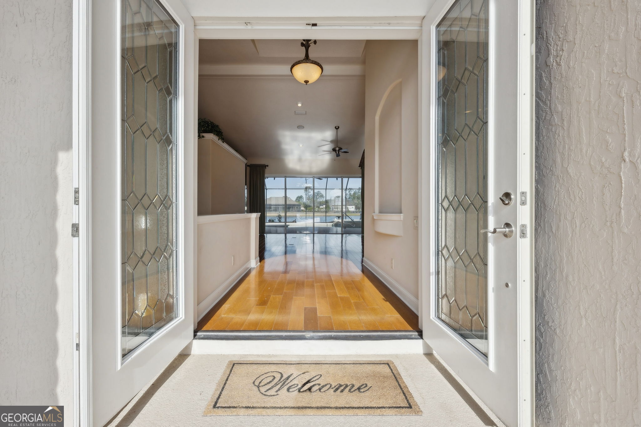 This Arthur Rutenberg custom home offers quality craftsmanship, an open layout, and beautiful water views. Hardwood floors run throughout the main living areas, connecting the living and dining spaces to a well-designed kitchen with custom cabinetry, stainless steel appliances, and a double oven. Large windows and fully retractable sliding glass doors fill the home with natural light and open to peaceful lake views. The front porch overlooks scenic coastal marshland, while the backyard features a screened lanai with summer kitchen, vented gas grill, heated saltwater pool, and spa-ideal for relaxing or entertaining. Three bedrooms provide comfortable private retreats, complemented by three well-appointed bathrooms. Additional features include a gas fireplace, central vacuum system, spacious tiled laundry room with cabinetry and sink, and high-quality finishes throughout. A three-car garage offers ample space for vehicles, storage, or a hobby area. Optional transferable membership to The Club at Osprey Cove includes gated access, clubhouse dining, resort-style pool with tiki bar, golf, fitness center, tennis courts, and more. Conveniently located near beaches, medical facilities, cultural venues, and just 30 minutes from Jacksonville International Airport.