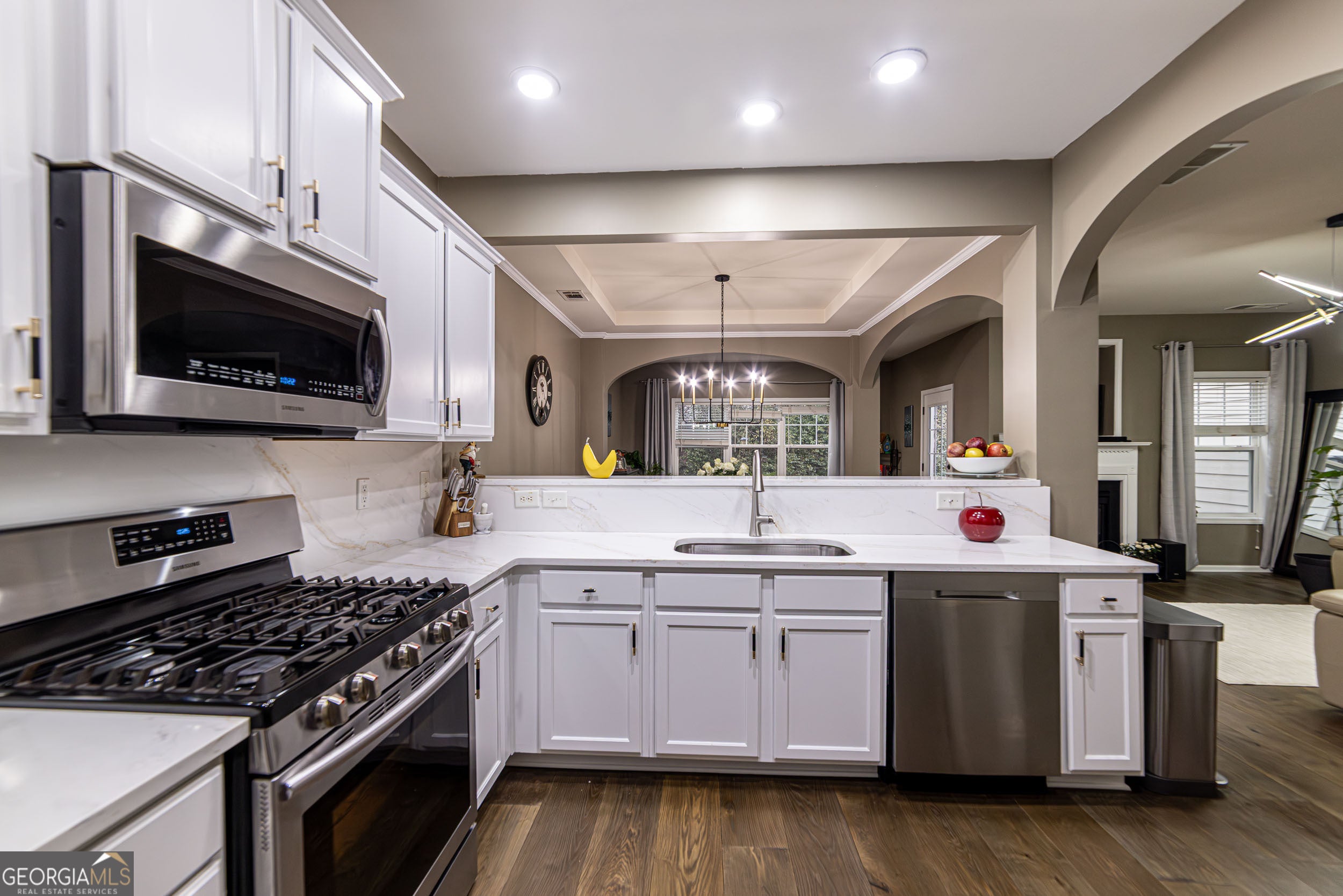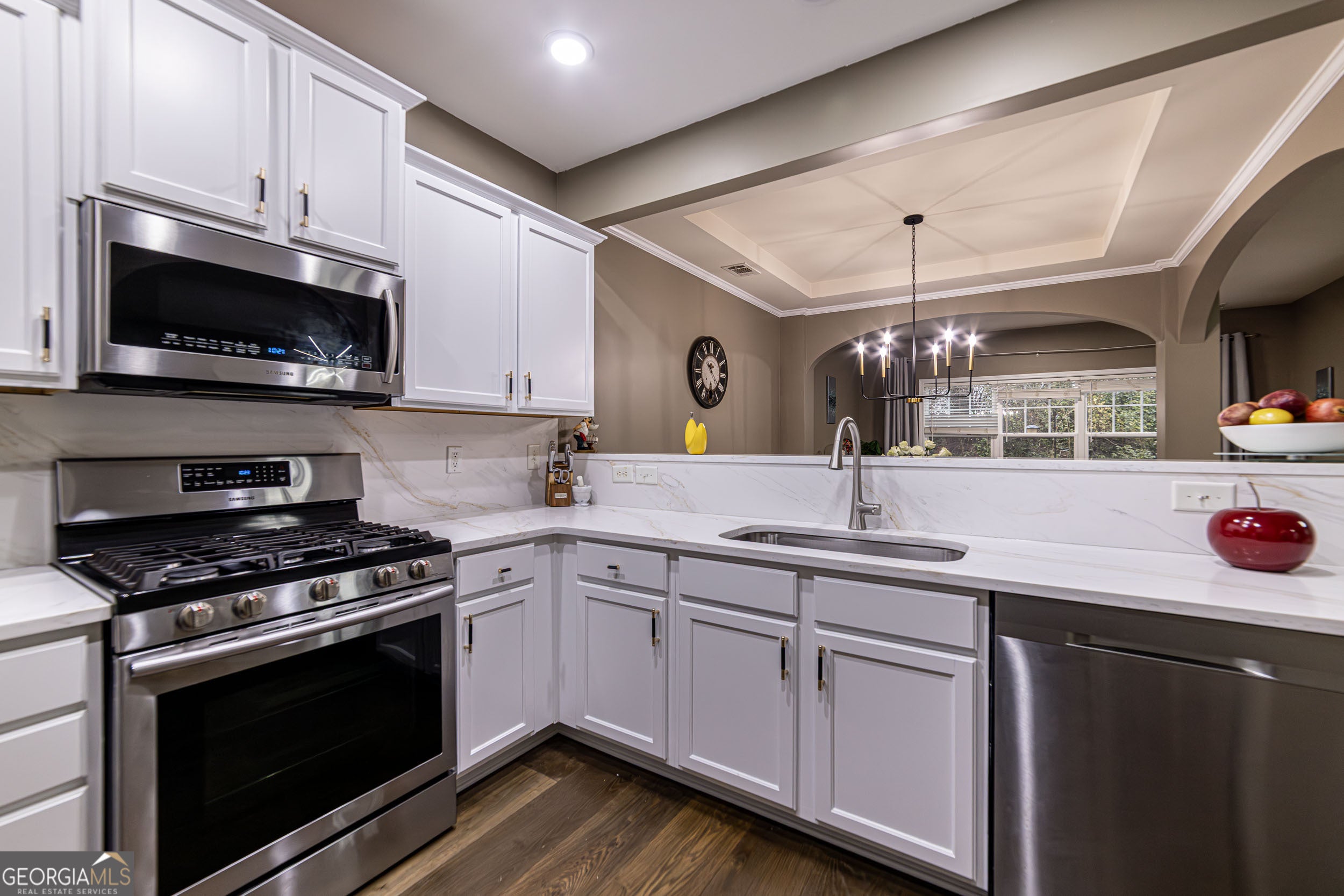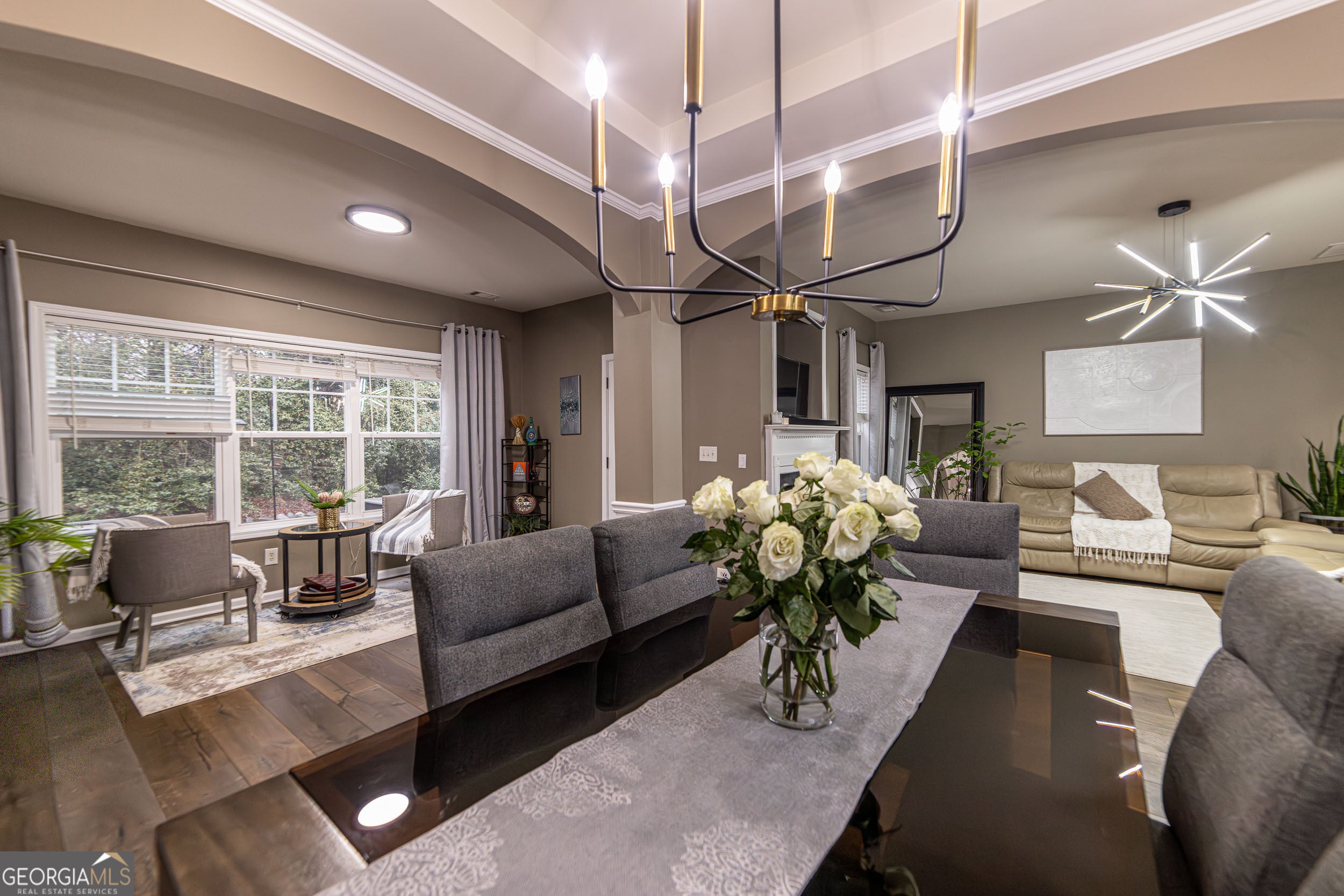 Stylish, Updated Townhome in Sought-After Pinnacle Glen Top Forsyth Schools Welcome home to 2910 Cross Creek Drive, a gorgeous freshly painted two-story townhome nestled in the highly desirable Pinnacle Glen community of Cumming. Thoughtfully updated and beautifully maintained, this home offers modern elegance, low-maintenance living, and an unbeatable location. As you walk into the home, you're greeted by an impressive two-story foyer adorned with a stunning crystal pendant chandelier. To the left, the staircase-accented by sleek modern wall lighting-leads to the upper level and creates a striking first impression. The main level features hardwood floors and a bright, open layout ideal for everyday living and entertaining. The newly remodeled kitchen is a true showstopper, featuring freshly refinished cabinetry with modern hardware, recessed lighting, gorgeous quartz countertops with a perfectly matching quartz backsplash, and a full stainless-steel appliance package including the refrigerator. A breakfast area and separate dining room offer flexible dining options, while the inviting family room with fireplace provides the perfect space to unwind. A convenient half bath completes the main level for guests. Step outside to the private back patio, an ideal spot to enjoy morning coffee, afternoon tea, or evening wine in a peaceful setting. Upstairs, the home continues to impress with a spacious owner's suite featuring a beautifully remodeled bathroom. Two generously sized secondary bedrooms share a full bath, offering excellent flexibility for guests, family, or a home office. A large laundry room conveniently located upstairs adds everyday ease and functionality. Recent upgrades include a remodeled kitchen, fresh interior paint, designer lighting throughout, a 4-year-young water heater, new windows replaced in 2025, and hardwood floors on the main level installed just a few years ago. Enjoy low monthly HOA dues of $284, which include roof replacement (new in 2023), exterior maintenance, termite bond, landscaping, gutter cleaning, and more. Community amenities feature a swimming pool, tennis courts, and ample guest parking. Ideally located near shopping, dining, parks, and major roadways with easy access to GA-400, this home is zoned for top-rated Forsyth County schools, including Denmark High School. This move-in-ready townhome blends style, comfort, and convenience-an exceptional opportunity you won't want to miss.