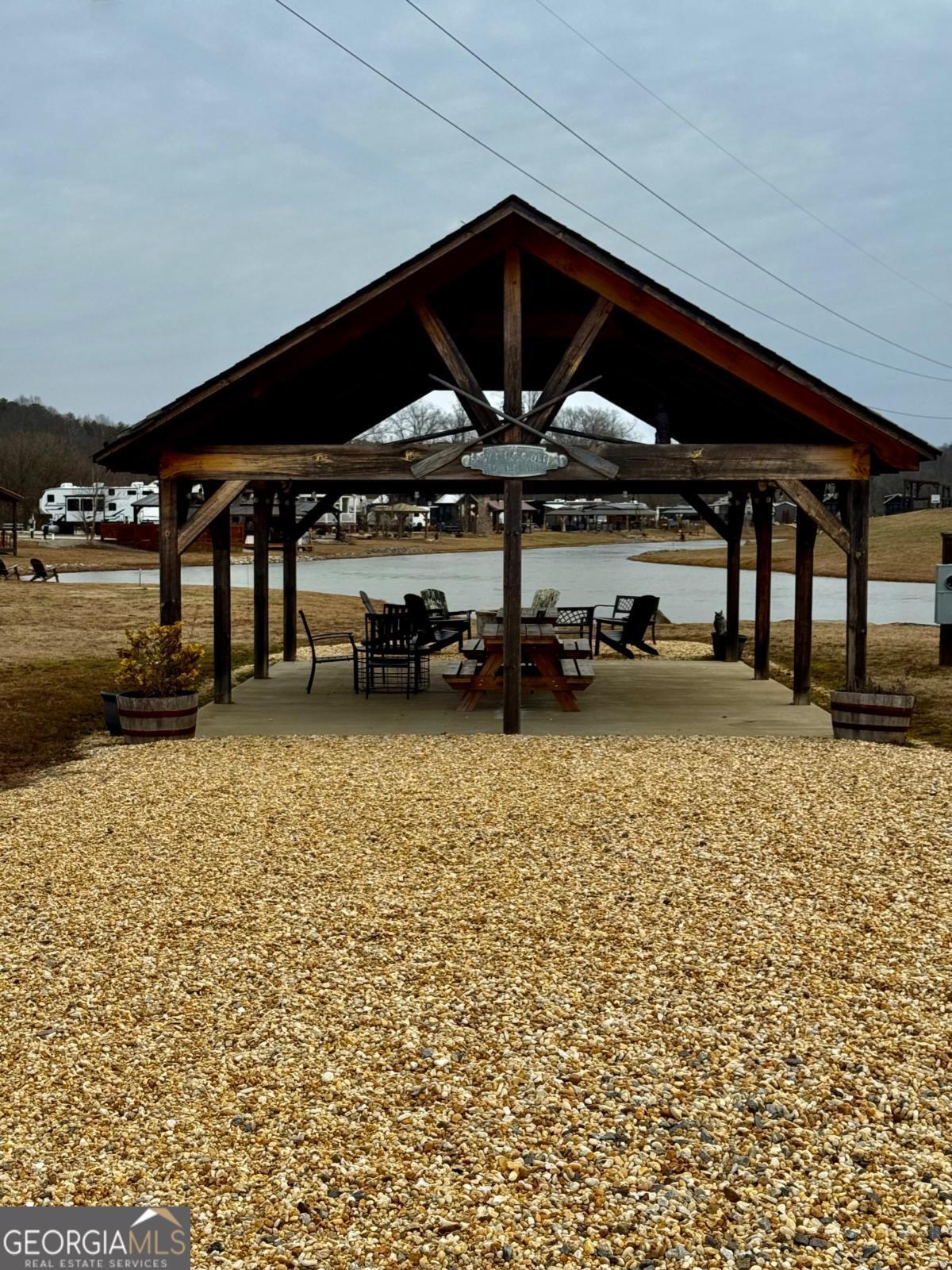 Discover your own slice of mountain paradise with this quick and easy access RV lot with concrete pad and paved roads. Nestled in the beautiful North Georgia mountains, this homesite is perfectly positioned on the banks of popular Hemptown Creek-a stocked trout stream. Enjoy views of the rushing creek and pastoral views across the water, surrounded by nature and cool mountain air. This gated upscale, pet friendly, resort-style community is designed for both relaxation and fun. Amenities include a waterfront clubhouse with perfect gathering spot, wood fire pizza oven, playground, laundry facility, dog park and convenient trash pick up. Two stocked lakes, disc golf, and basketball offer even more ways to enjoy the outdoors. The community is lively and welcoming, featuring year round social events. A country store and boat/trailer storage lot add everyday convenience. Located just minutes away from downtown Blue Ridge, Lake Blue Ridge, the Toccoa River, and Lake Nottley, you have quick access to fishing, boating kayaking, tubing, and swimming. Nearby hiking trails, national forest, waterfalls, wineries, and orchards make every day an adventure. Ideal as a personal getaway, full time living spot, or income-producing rental (onsite management), this lot offers the perfect blend of mountain beauty, amenities, and location! PARK, RELAX, EXPLORE.....Your adventure starts HERE!