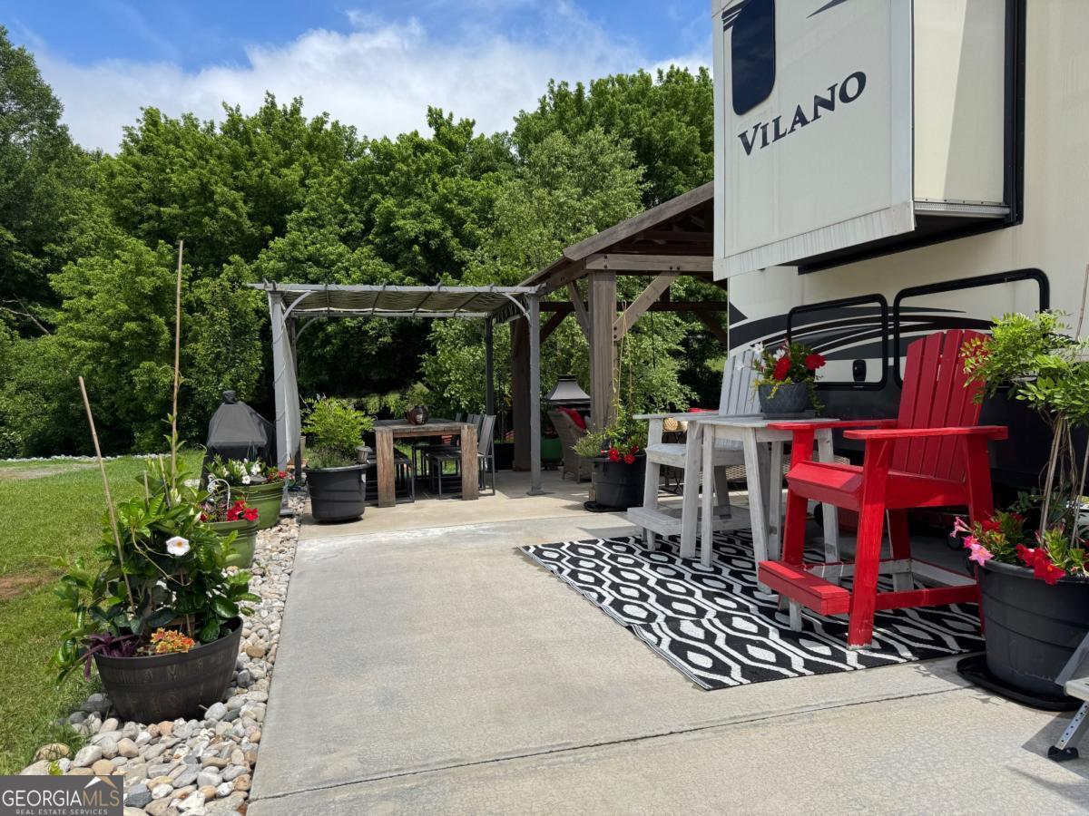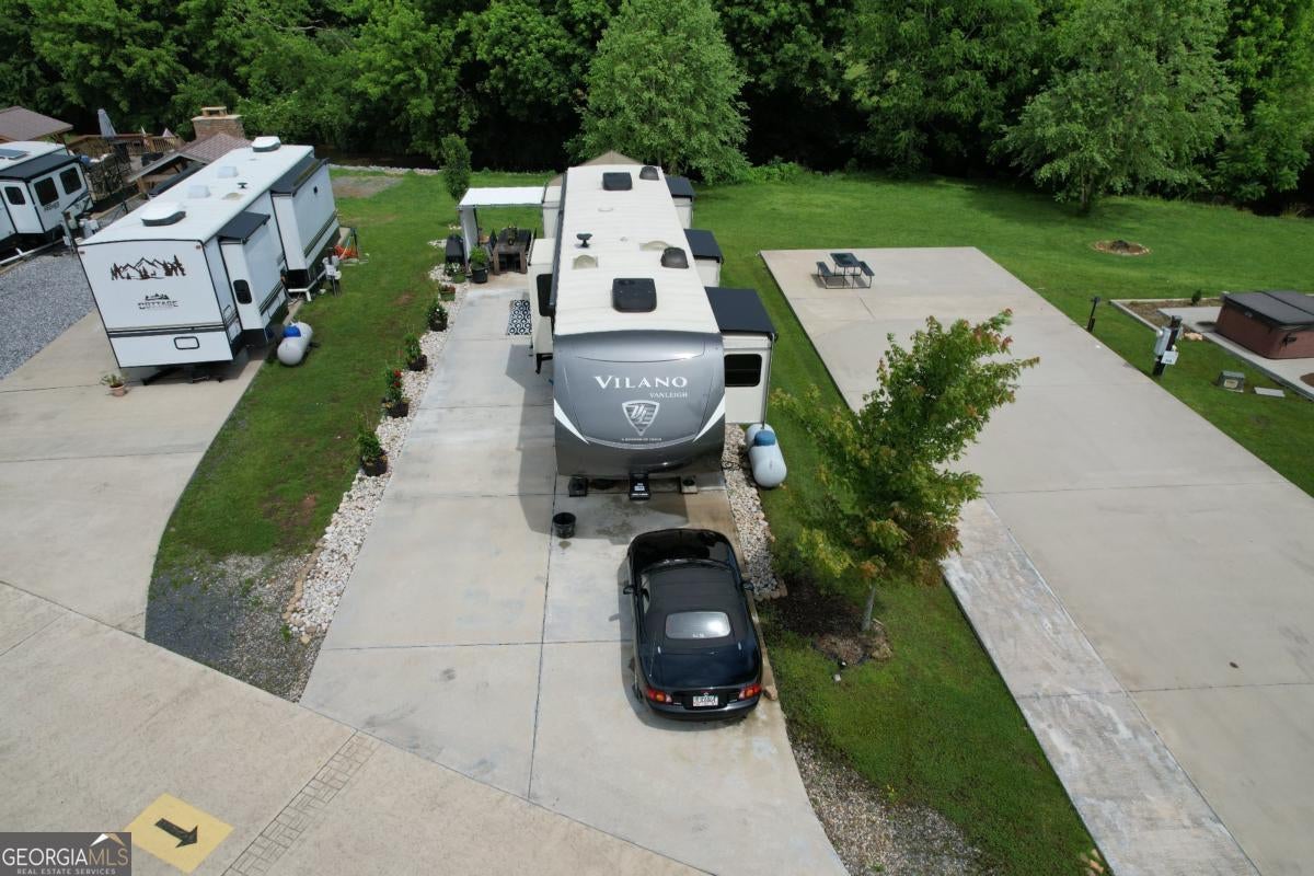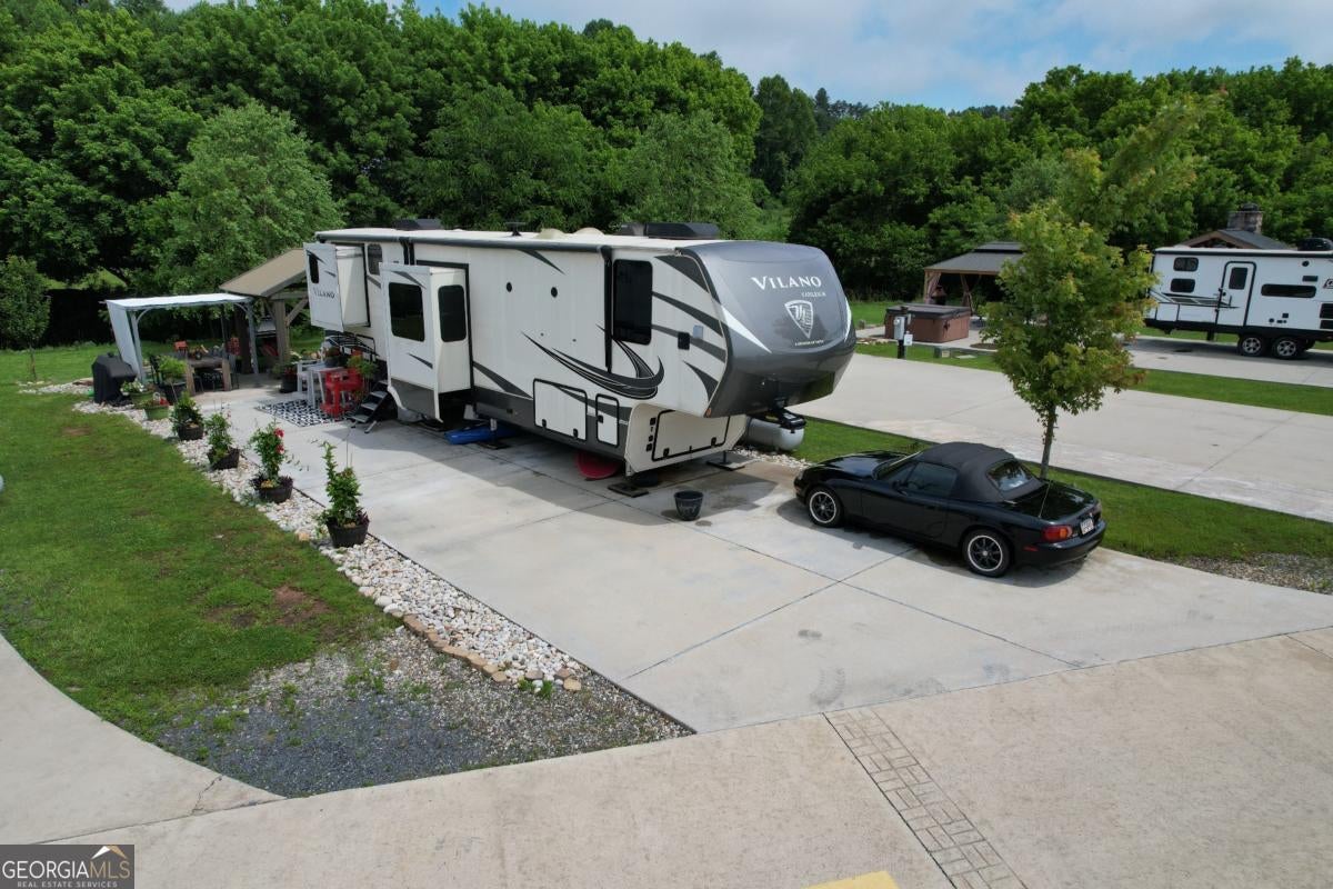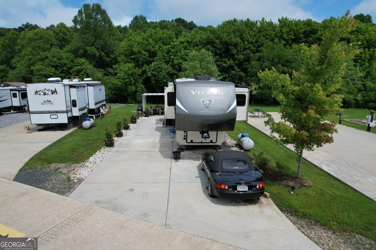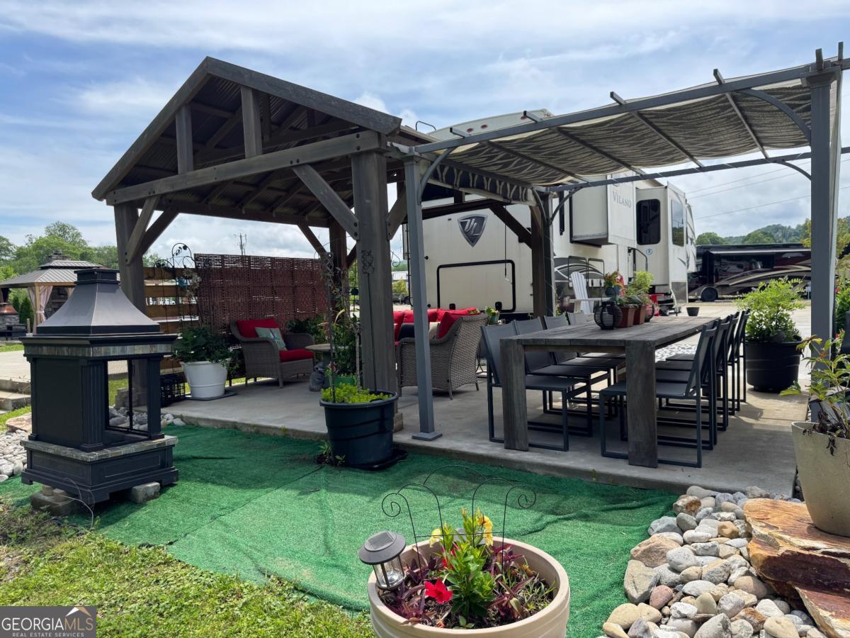 If you're dreaming of a peaceful spot by the water, this creekside RV lot might be just what you've been waiting for. Tucked along the banks of Hemptown Creek, it's a place where you can unwind, sip your coffee by the fire, fish on your property, and listen to the soothing sound of water flowing just steps away. The lot is beautifully landscaped and set up for outdoor enjoyment. There's a 21'x75' concrete pad that easily fits larger RVs or a tiny home, plus a gazebo with a fireplace-perfect for cool evenings or cozy conversations. A pergola extends the shaded outdoor space and invites you to enjoy meals outside, surrounded by the fresh mountain air. Closer to the creek, a fire pit seating area gives you a front-row seat to nature's soundtrack. Across the creek, a peaceful open pasture adds to the serene view. Whether you're looking to relax or entertain, the layout is functional, welcoming, and full of charm. Located in the gated Waterside at Blue Ridge community, you'll also enjoy amenities like a pool, clubhouse, playground, dog park, pickleball, disc golf, and more-all just minutes from downtown Blue Ridge and outdoor adventures galore. The area offers a lot of activities during all seasons - from tubing, boating, fishing, hiking, waterfall chasing to wine tasting, apple picking, train trips to the state line. Close to Lake Blue Ridge, Toccoa River, Toccoa Swinging Bridge, Aska Adventure area, Lake Nottely, multiple parks, Downtown Blue Ridge. This one's not just a lot-it's a mood. The 2020 Vanleigh Vilano fifth wheel is also available for sale. $149,900 for the package.