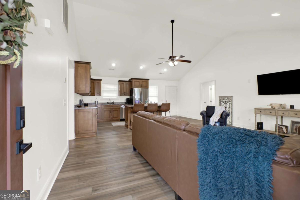 - Stepless Ranch on Corner Lot - Covered Front Porch Supported by Classic Columns - Glass Storm Door Allows Daylight to Stream into the Entryway - Open Flow - 2023 New Flooring Installed - Vaulted Ceilings - Recessed Ceilings Lights - Central Island with Seating - Stainless Steel Appliance Including Side-by-side Refrigerator, Built-In Microwave, Wi-Fi Controlled Stove, & Dishwasher - Window Above Double Basin Sink with Matte Black High Arc Faucet - Extra Wide Doorframes - New White Window Blinds Convey with Property, One Less Things to Install! - Shelving in Laundry Room Keeping Cleaning Supplies Organized & Within Reach - Double Door Closets - New Smart Thermostat - Enclosed Glass Door Shower & Separate Soaking Tub - Dual Sinks - Black Chain Fenced Backyard Offers Security Without Blocking Views - Raised Garden Beds - Wide Concrete Driveway - 2 Car Garage on Left Side - Termite Bond Valid Through July 2026 Offering Proactive Protection - Minutes from I-75, USHWY 41, Calhoun Outlet Marketplace, & Calhoun Recreation Department - Ideal for Professionals Who Want Small Town Serenity with Big City Reach!