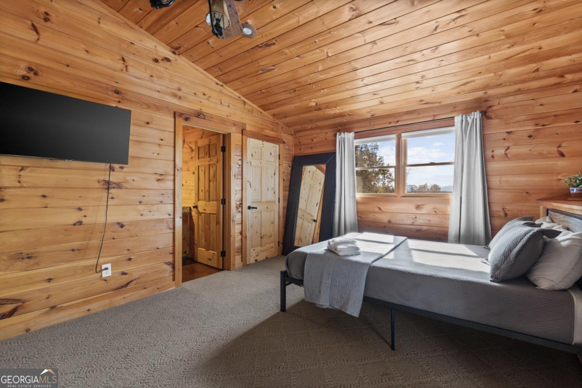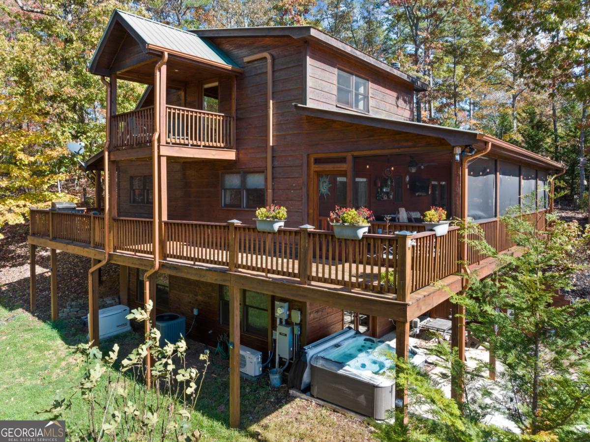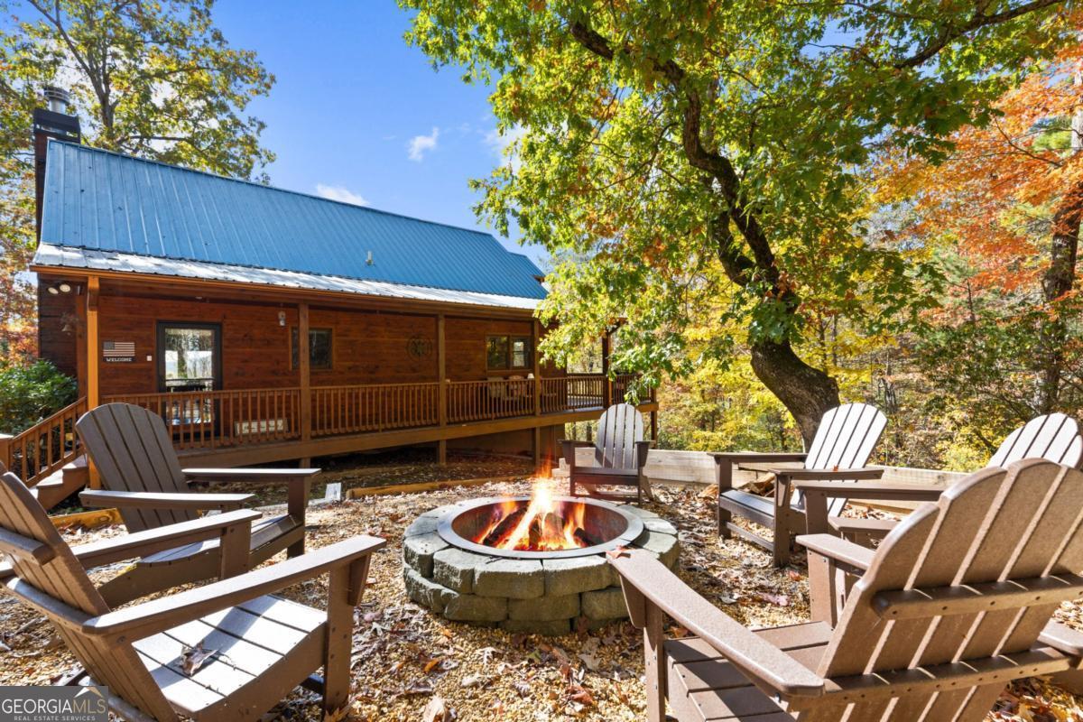 Mountain Retreat with Views 4BR / 3.5BA Assumable Loan Available at 3.87%. Enjoy mountain living at its best in this beautifully maintained 4-bedroom, 3.5-bath cabin offering inviting mountain views, charm, and excellent short-term rental appeal. Situated on 1.5 private, acres with no HOA, this turn-key home is conveniently located just minutes from downtown Blue Ridge, shopping, dining, and area attractions. Easy access is a standout feature, with a paved road and paved driveway, ample parking, and multiple outdoor living spaces designed to soak in the views. Relax or entertain on the wrap-around deck, private upper-level balcony, hot tub, fire pit, and outdoor TV area, all ideal for guests and gatherings.Inside, the cabin features warm mountain finishes including wood cabinetry, granite countertops, stone backsplash, stainless steel appliances, and a cozy gas log fireplace. The main level includes two bedrooms, while the upper level offers an additional bedroom and a loft lounge with its own private balcony overlooking the mountains. The finished terrace level provides added flexibility with a kitchen area, bunk room, half bath, laundry, and space designed for both fun and function, perfect for guests or rental use. A whole-house generator offers year-round peace of mind.The home can be offered furnished, providing an easy transition whether you're seeking a full-time residence, second home, or income-producing mountain getaway.