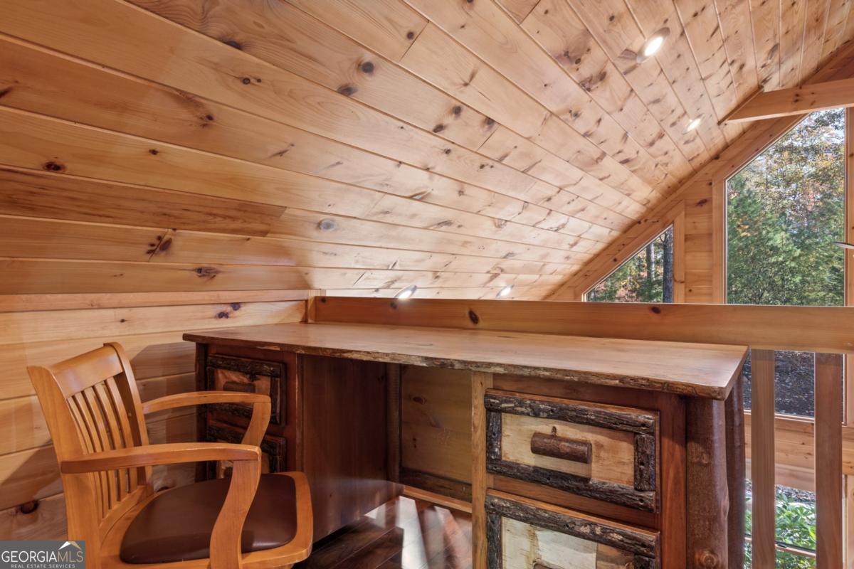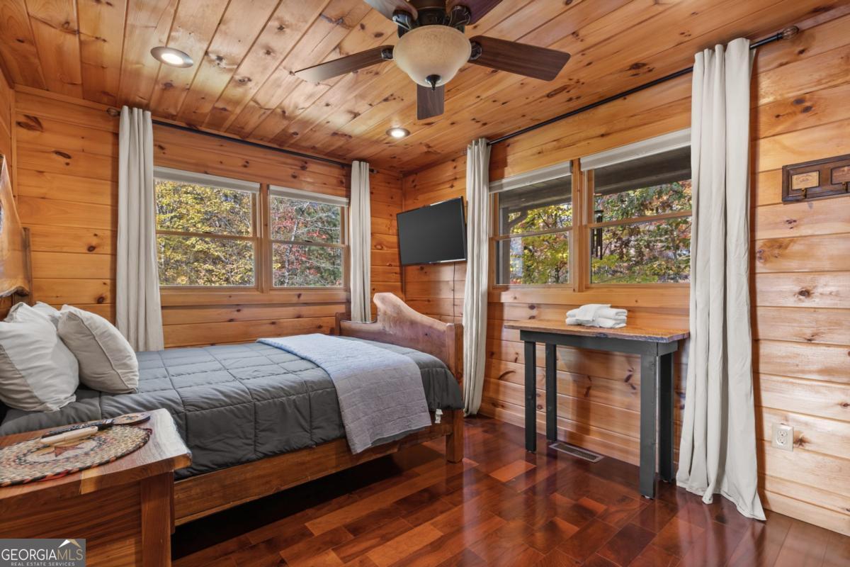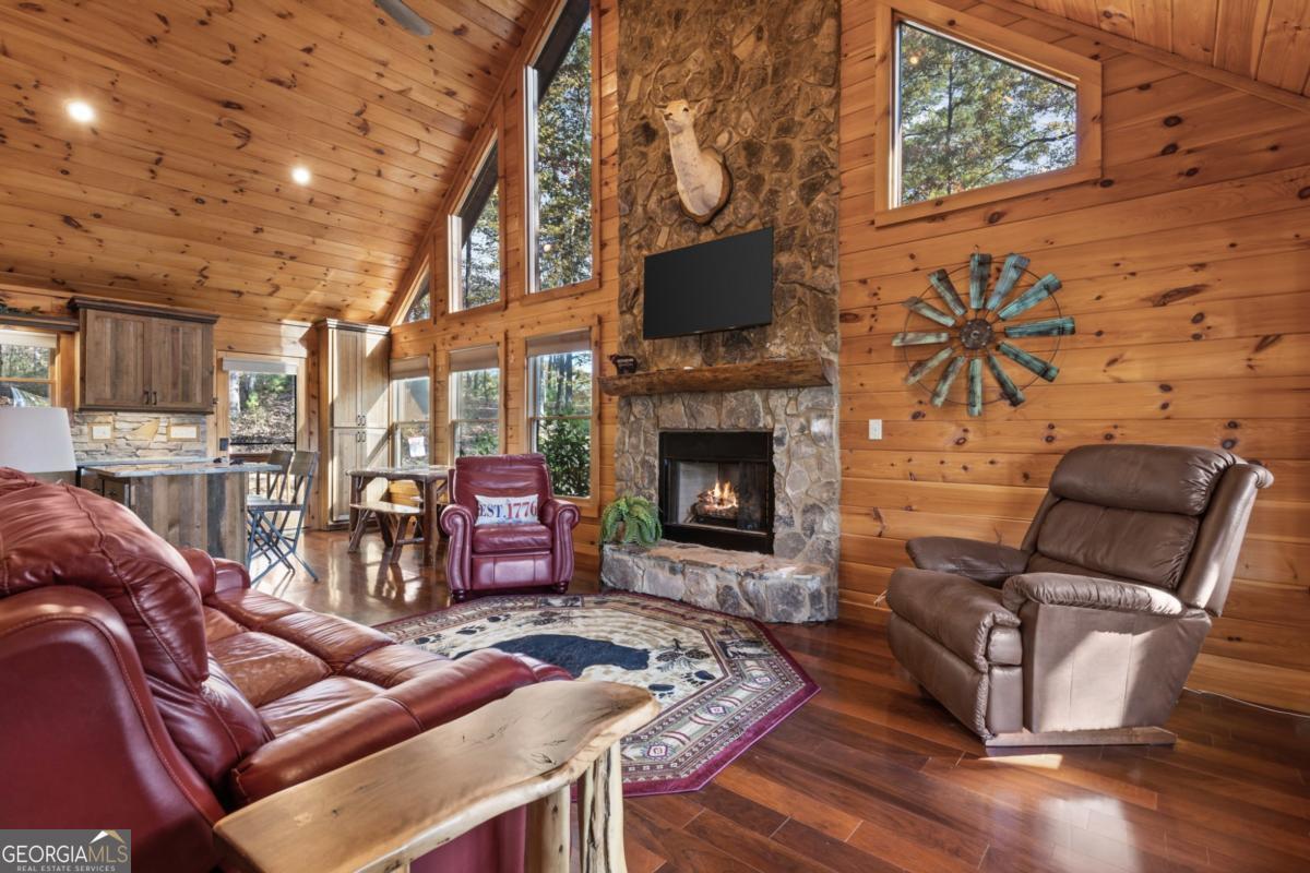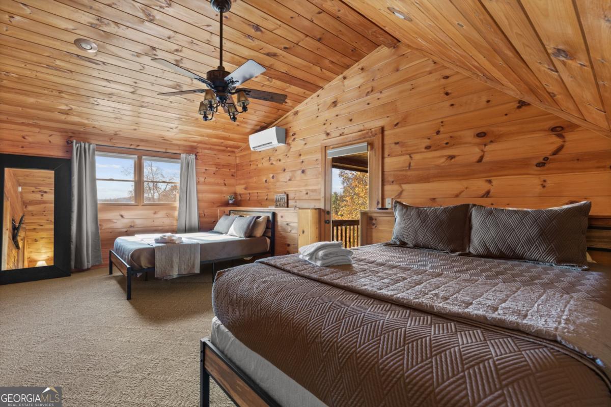 Mountain Retreat with Views 4BR / 3.5BA Assumable Loan Available at 3.87%. Enjoy mountain living at its best in this beautifully maintained 4-bedroom, 3.5-bath cabin offering inviting mountain views, charm, and excellent short-term rental appeal. Situated on 1.5 private, acres with no HOA, this turn-key home is conveniently located just minutes from downtown Blue Ridge, shopping, dining, and area attractions. Easy access is a standout feature, with a paved road and paved driveway, ample parking, and multiple outdoor living spaces designed to soak in the views. Relax or entertain on the wrap-around deck, private upper-level balcony, hot tub, fire pit, and outdoor TV area, all ideal for guests and gatherings.Inside, the cabin features warm mountain finishes including wood cabinetry, granite countertops, stone backsplash, stainless steel appliances, and a cozy gas log fireplace. The main level includes two bedrooms, while the upper level offers an additional bedroom and a loft lounge with its own private balcony overlooking the mountains. The finished terrace level provides added flexibility with a kitchen area, bunk room, half bath, laundry, and space designed for both fun and function, perfect for guests or rental use. A whole-house generator offers year-round peace of mind.The home can be offered furnished, providing an easy transition whether you're seeking a full-time residence, second home, or income-producing mountain getaway.