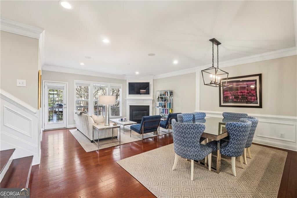 Pristine townhome in highly desirable community. This beautiful end unit is light filled with high ceilings, new baths, an updated kitchen, and a great floorplan. Whether you are enjoying an evening around the fireplace or grilling out on the deck that overlooks a lovely green space complete with an outdoor fireplace, you will love this home. This home is a serious value and decorated to perfection...