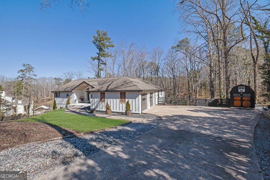 Modern Farmhouse on Over an Acre - A True Retreat Welcome to this stunning 4-bedroom, 3.5-bath modern farmhouse nestled on over an acre of land. From the moment you arrive, you'll feel the warmth and charm of this incredible home. The expansive front porch now rests on a poured concrete foundation, while the rear deck runs the length of the home, featuring a covered area off the dining room perfect for entertaining. Below the deck, enjoy a brick firepit and patio area surrounded by serene landscaping and wooded views, all bordered by a peaceful creek. Step inside to find hardwood floors throughout and renovated baths accented with classic beadboard ceilings. The chef's kitchen is both modern and welcoming, seamlessly connecting to the dining area and great room with handsome wood beams and a gas fireplace with circulation vents. A 10x10 walk-in pantry and mudroom offer space for a refrigerator, freezer, and storage - formerly the laundry room, with plumbing still in place for an easy conversion back to main-level laundry if desired. The finished basement is a home of its own, featuring a fireplace, two living areas, a coffee bar/kitchenette, bedroom and full bath, and a flex space for your gym, theater, or hobby room. Perfect for guests or multi-generational living. Outside, the spacious driveway accommodates 10+ cars, and the front yard magnolia tree and mature landscaping provide natural privacy. The chicken coop and run offer the chance to enjoy fresh eggs or start a new hobby. This property is well-fed, recently inspected, ensuring fresh water with no utility bills. Recent improvements include: Cement siding Newer roof Updated bathrooms Enlarged primary bath and closet Refinished hardwood floors HVAC updates Full interior/exterior repaint This home truly blends modern comfort with farmhouse charm-a perfect private oasis ready to welcome you home. A pre-listing home inspection and roof inspection has been done. Property line goes to the creek. The property has been assessed and a pool can be installed in the backyard. Main level terrace septic is located in the front yard straight out the front door and the terrace level septic is located on the left side (if looking at the home) on the side of the home.