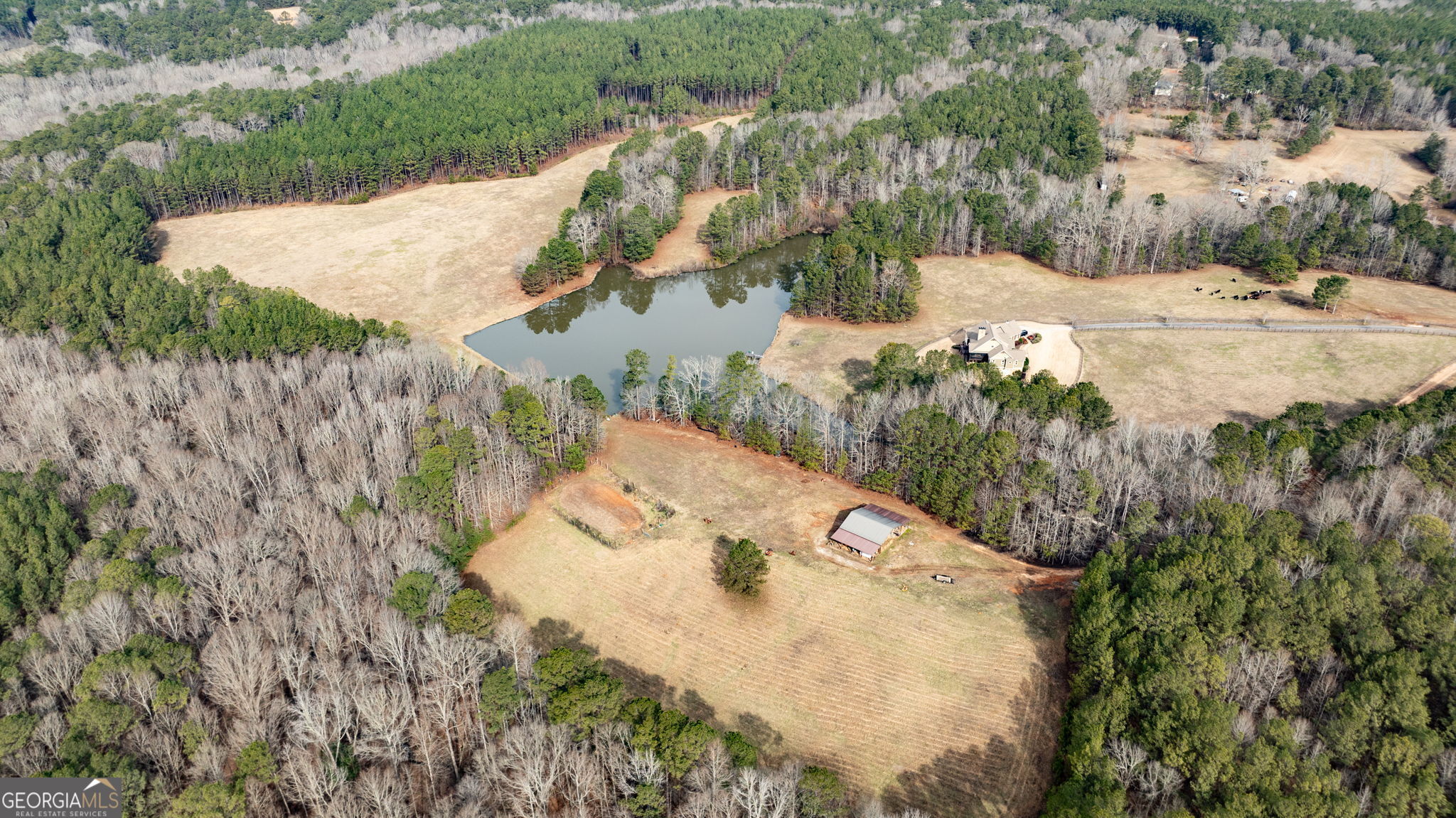 FABULOUS CUSTOM CRAFTSMANSHIP HOME ON 111+/- ACRES WITH A CREEK FED LAKE!!! Custom Kitchen has granite countertops, tiled backsplash, stainless appliances, granite top island, lots of custom cabinets & oak hardwood flooring. Breakfast bar & breakfast area with oak hardwood flooring. Tiled laundry room in hallway with mud sink & granite countertops & cabinets. Family Room with oak hardwood flooring with floor to ceiling stone surround fireplace with wood beams on ceiling with built-ins on either side of the fireplace! Dining Room with oak hardwood flooring with picture molding (seats 12 people). Primary bedroom on main with oak hardwood flooring, plantation shutters, tiled primary bathroom with his & hers vanities w/ limestone countertops with jetted tub with tiled surround & separate tiled shower with glass front, his & her walk-in closets. Office on main with closet, oak hardwood flooring & en-suite tiled bathroom with granite countertop vanity & tiled shower/tub. Vaulted screened porch on main with floor to ceiling stone fireplace & adjoining deck overlooking lake & rolling pasture. Basement has a family room with oak hardwood flooring with stone surround fireplace with built-in entertainment center, full kitchen with granite countertops, tiled backsplash with appliances. Guest bedroom in basement with oak hardwood flooring, tiled guest bathroom with granite top vanity & tiled shower/tub. Guest bedroom #3 with oak hardwood flooring with tiled guest bathroom with granite top vanity & tiled shower/tub. The property has lots of beautiful fenced pasture and woods, a 40 x 50 pole barn, irrigation system that is fed from lake & so much more!!! Property is under a CUVA through 12/31/2034. CUVA must be assumed in writing by buyer to avoid penalties.