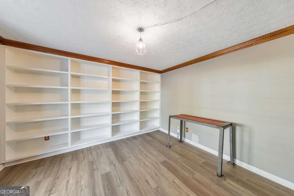 Welcome home to this charming 4 bedroom, 2.5 bathroom residence nestled in the desirable Wisteria Way community in Hiram, set on a spacious 0.75-acre lot with no HOA. Recent updates include a new roof (2017), luxury vinyl plank flooring just two years old, and new blown insulation in the attic. A large covered front porch welcomes you inside to a thoughtfully designed floor plan. The foyer is flanked by a private office with built-in bookshelves and French doors on one side and a formal dining room on the other-perfect for both everyday living and entertaining. The kitchen offers abundant cabinet and counter space, a pantry, new ceramic tile flooring, a breakfast bar, and a sunny breakfast room, with both gas and electric hookups available for the stove. The kitchen flows seamlessly into the cozy fireside family room. Just off the family room is a spacious bonus room complete with a projector, screen, speakers, and access to a balcony-an ideal media room, playroom, or flex space. A half bathroom completes the main level. Upstairs, the oversized primary suite is a true retreat featuring a sitting room, dual walk-in closets, and an ensuite bathroom with separate his-and-hers vanities, a soaking tub, and a separate shower with a brand-new shower and toilet. Three generously sized secondary bedrooms share a full hall bathroom, and the laundry room is conveniently located on the upper level. The unfinished basement offers endless possibilities to customize or expand your living space, includes a fire sprinkler system, and provides access to an additional attached one-car garage. An attached two-car garage is located on the main level. Enjoy the expansive front and backyards with mature landscaping, three blueberry bushes, and a charming dry creek-perfect for outdoor living and relaxation. This home offers space, comfort, and flexibility both inside and out.