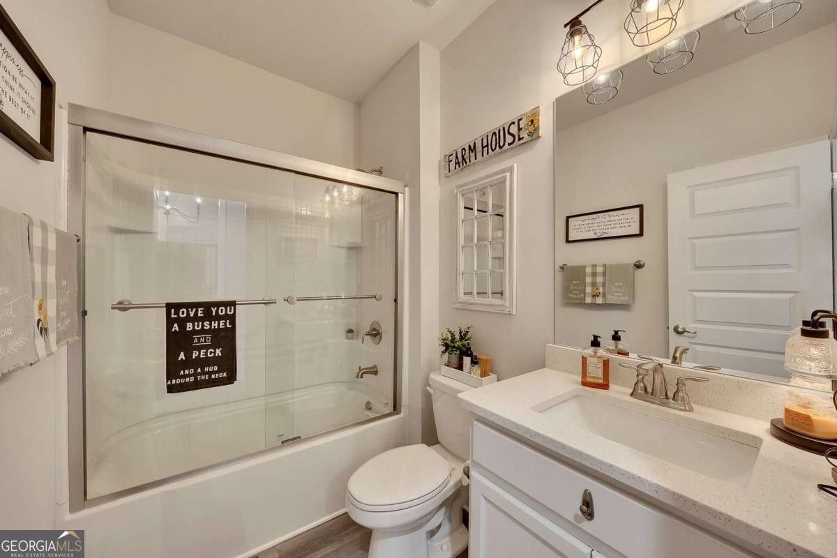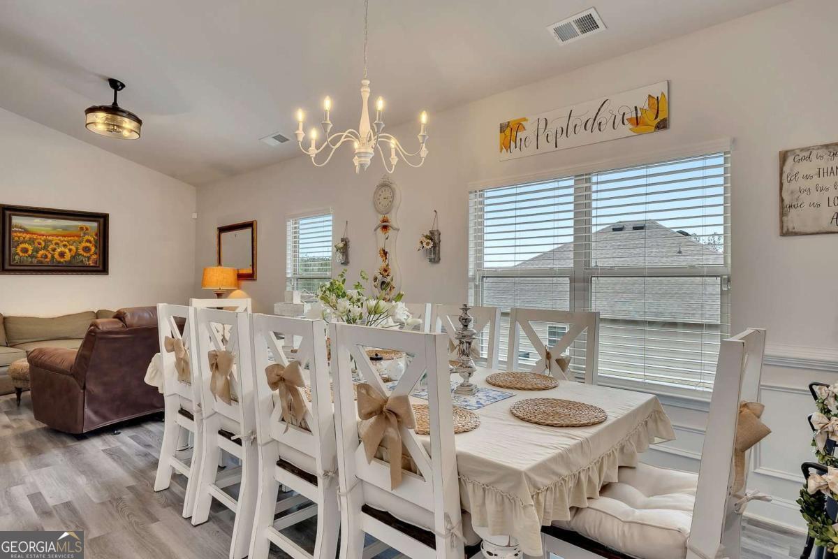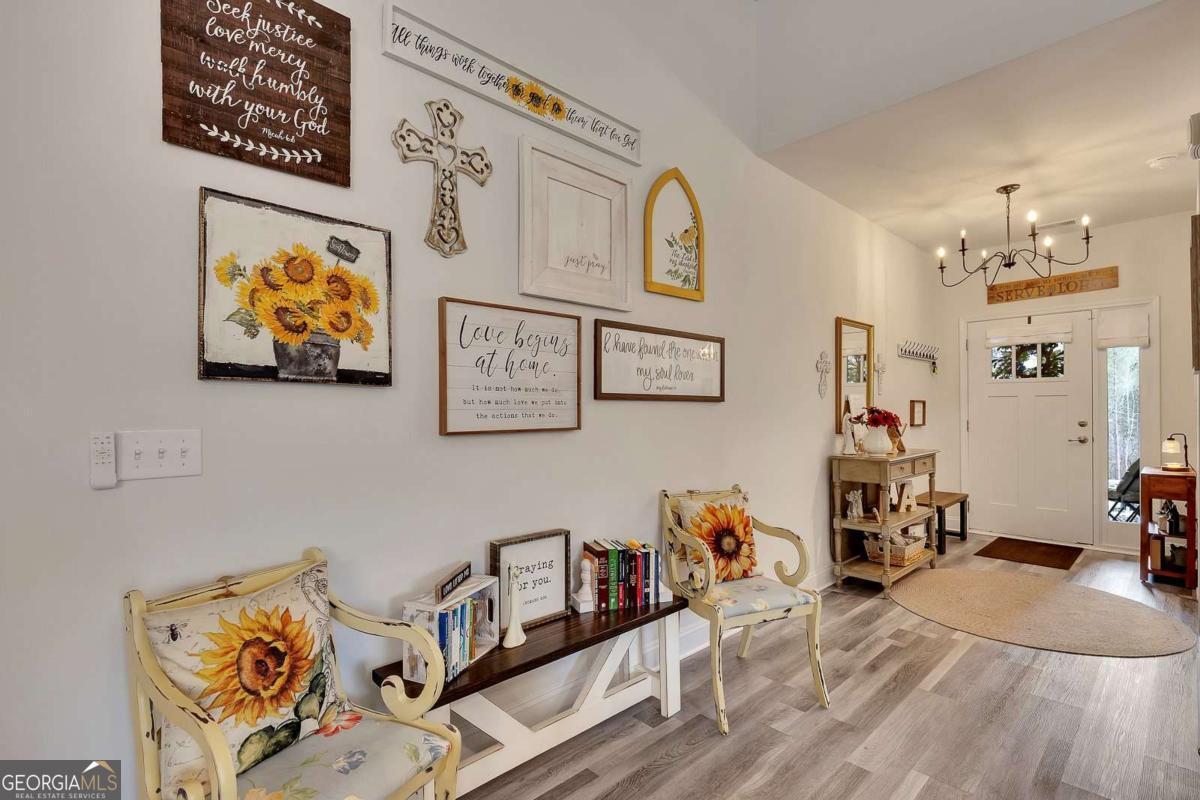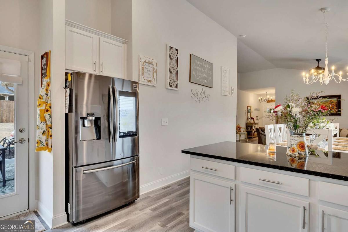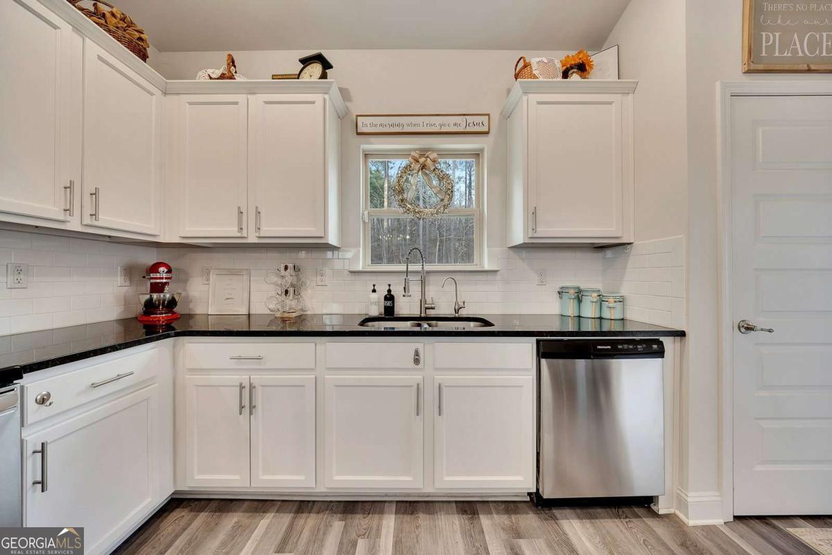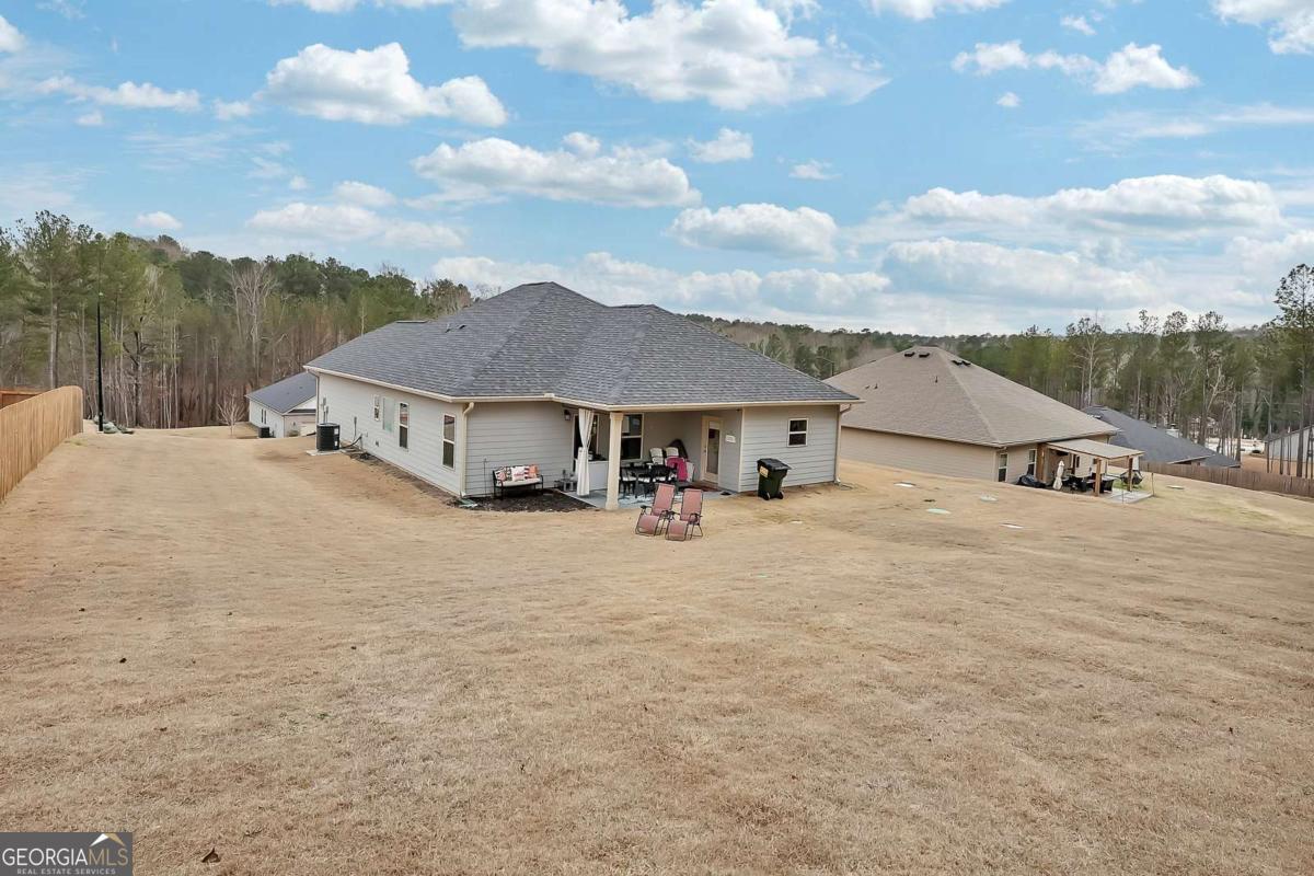 Welcome to "The Hilltop" - Spectacular Sunset & Open Sky Views! Commanding a dramatic hilltop position in Bramlett Ridge, this stunning 3-bedroom, 2-bath Craftsman-style ranch delivers breathtaking sunset views and endless open skies that will captivate you every evening. Built in 2022 - better than new - lovingly upgraded, "The Hilltop" lives up to its name - a private hilltop retreat on nearly half an acre of wooded serenity. The dramatic hilltop setting, accessed by a private ascending driveway, ensures unmatched privacy and those coveted panoramic views. Watch golden sunsets paint the sky from your covered back patio, or enjoy the peaceful wooded surroundings that make this property feel like your own private nature preserve. Inside, an open-concept floor plan is bathed in natural light. Luxury vinyl flooring flows through the living, kitchen, and dining areas. The chef-inspired kitchen features stainless steel appliances, elegant black granite countertops, stylish tile backsplash, and an oversized dining area made for gathering. The spacious primary suite boasts a generous walk-in closet and spa-like en-suite with tile flooring, double vanity with quartz countertops, separate soaking tub, and walk-in shower. Fitness enthusiasts will love the high-end home gym in the spacious insulated 2-car garage with an insulated garage door - no membership required! Work out on your schedule in your own private fitness space. (Equipment not included but open for an offer or garage can be converted back to a garage.) Make it yours. Move in ready. Premium Upgrades Include: Granite Counters 5 Piece Master Bathroom Detailed trim Whole-home KDF water filtration system Under-sink reverse osmosis filter Heavy-duty metal attic stairs Upgraded ceiling fans & lighting throughout New high-capacity septic system Smart garage door opener High-end home gym in garage Samsung Smart Fridge & GE Washer/Dryer INCLUDED The covered back patio with ceiling fan overlooks a huge, wooded, private backyard - your own outdoor sanctuary for relaxing or entertaining under the open sky. For Buyers! By partnering with our trusted mortgage professional, buyers may receive up to 1% in lender credit (based on the loan amount) and may also be eligible for a 1-0 lender-paid buy-down.