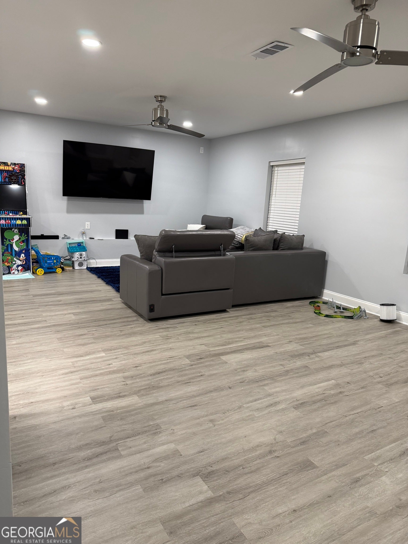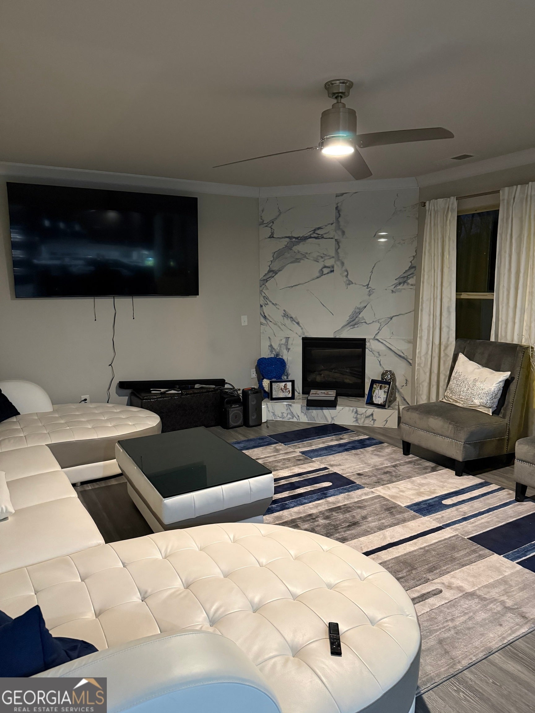 Welcome home to this beautifully upgraded and spacious 5-bedroom, 4-bathroom residence located in the heart of South Fulton. This exceptional home offers luxury, functionality, and versatility-ideal for entertaining, multi-generational living, or working from home. Step inside to a grand two-story foyer that opens to an open-concept floor plan filled with natural light. The chef's kitchen has been newly remodeled and features elegant marble countertops, modern finishes, and ample space for gatherings. New laminate flooring flows throughout the main living areas, while plush carpeted bedrooms provide comfort and warmth. The inviting family room showcases a newly renovated tile fireplace with gas logs, creating the perfect focal point for cozy evenings. The main-level guest bedroom with a full bath offers convenience and privacy for guests. Upstairs, enjoy a spacious loft area-perfect as a second living space, home office, or play area. The primary suite is a true retreat, featuring a fireplace, an oversized bedroom, and a huge walk-in closet. The fully finished basement is an entertainer's dream and adds incredible value. It includes: * A second master suite with private master bath * A dedicated movie theater room * A third living room * A game and entertainment area Step outside to a covered rear deck overlooking an expansive concrete patio accessible from the basement-ideal for outdoor entertaining, grilling, or relaxing. With generously sized bedrooms, multiple living areas, and thoughtful upgrades throughout, this home offers the space and comfort today's buyers are searching for. Don't miss this rare opportunity to own a move-in-ready home with a luxury finished basement in South Fulton. Schedule your private showing today!