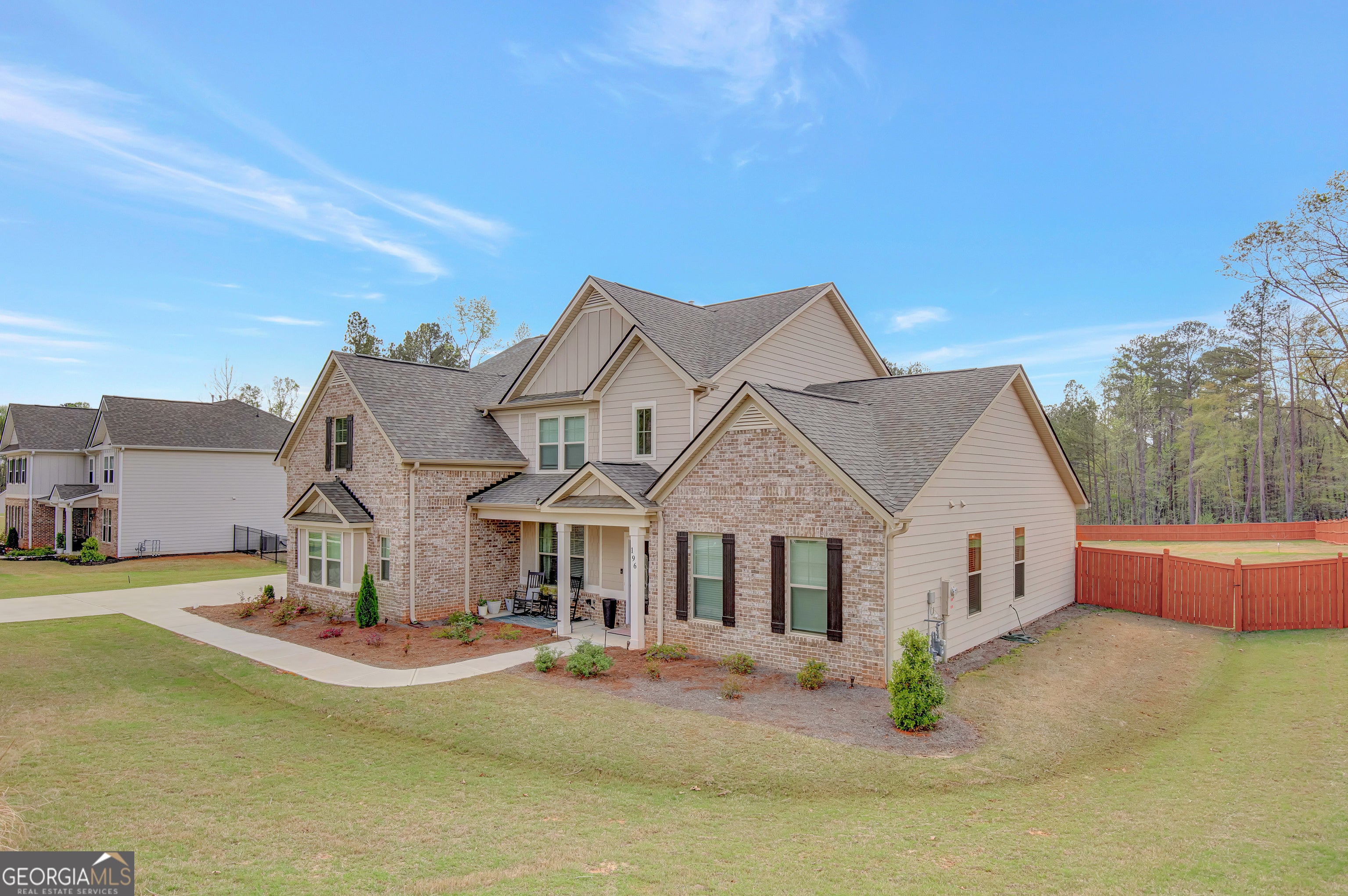 Luxury home priced under market value with upgrades galore. Welcome to this stunning newer-construction home, built in 2023 and perfectly situated on a generous 1-acre lot in a beautiful new subdivision. Meticulously maintained and in pristine condition, this exquisite brick and hardboard-siding residence offers both elegance and comfort, with thoughtfully designed spaces and exceptional upgrades throughout. Step inside and be captivated by the abundance of natural light streaming through countless windows, creating a warm and inviting atmosphere in every corner of the home. Featuring five spacious bedrooms and three and a half bathrooms, this home effortlessly blends luxurious finishes with everyday functionality. From the moment you enter through the upgraded front door, you'll notice refined details, including matching black knobs and hinges on every door that add a cohesive, modern touch. The heart of the home is the expansive kitchen, complete with granite countertops, upgraded faucets, and custom cabinetry that flows seamlessly into the large pantry and laundry room. Entertaining is a breeze with a stylish bar area that includes an undercounter refrigerator, and a gas stove makes cooking a true pleasure. Adjacent to the kitchen, the dining room features a striking coffered ceiling, while a decorative beam accentuates the spacious family room, ideal for hosting or relaxing with loved ones. The master bedroom is conveniently located on the main floor, providing privacy and easy access. It features a beautiful decorative accent wall and a walk-in closet outfitted with custom shelving, creating a relaxing and functional owner's retreat. Each additional bedroom also includes custom-built walk-in closets, providing ample, well-organized storage for the entire household. Upstairs, you'll find a large family room in the loft area-ideal for a second living space, media room, or play area-giving everyone room to spread out and unwind. This home is carpet-free, with luxurious laminated and tiled flooring throughout, providing both durability and style. Upgraded lighting fixtures and fans add a designer touch, enhancing each room's ambiance. Step outside to the covered rear patio, ideal for outdoor dining or peaceful evenings under the stars. The backyard is fully fenced and fully sodded, offering a private, lush oasis for play, pets, or entertaining. Ready for your own pool. The three-car garage is a showstopper in itself, featuring an epoxy floor. Security and convenience go hand in hand with a fully installed security system and smart layout. This is a home where every detail has been carefully considered, perfectly blending modern style, practical features, and timeless comfort.