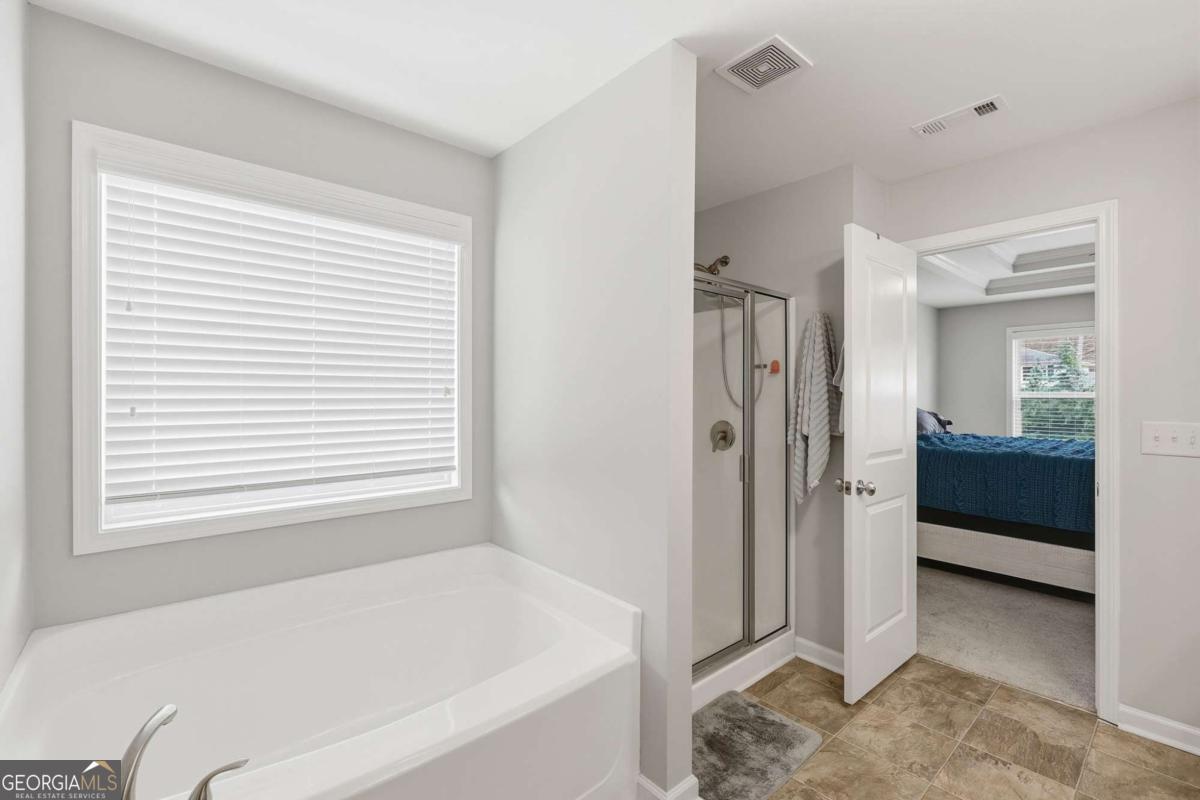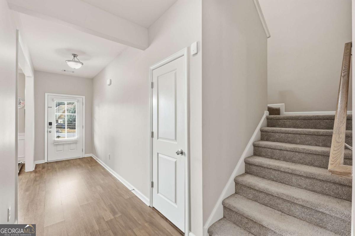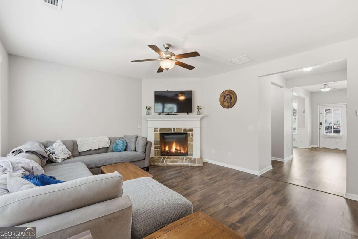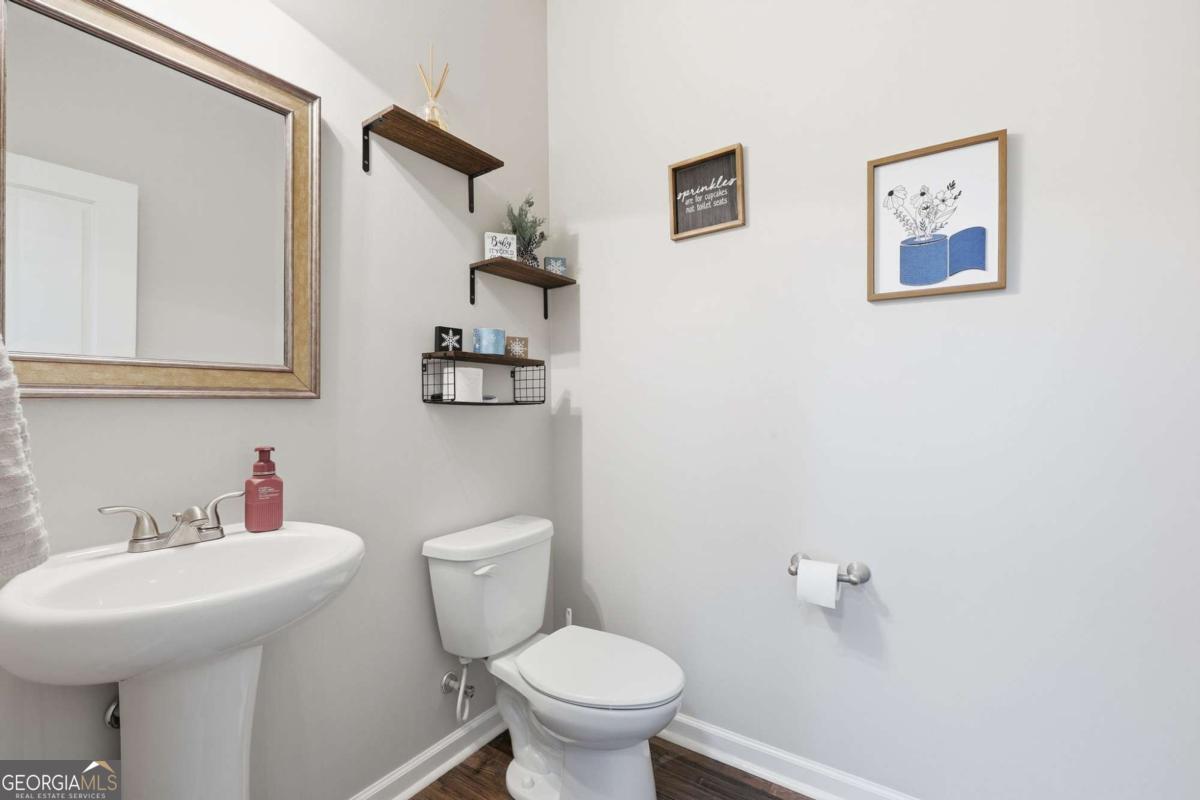 This 3 bed, 2.5 bath home in Flowery Branch's Harbour Lights neighborhood is move-in ready! A welcoming front porch greets you as you step inside to an open and spacious main level that has a perfect floor plan for entertaining and everyday life. The living room effortlessly flows to the dining area and kitchen, which features modern appliances, an oversized island, and plenty of cabinet space. The bedrooms are located upstairs, and all include generously sized walk-in closets. The primary bedroom includes an ensuite bathroom with a soaking tub, standalone shower, and dual vanities. The attached two-car garage can be used for multiple purposes, such as a workshop or your own private gym. Just beyond the private backyard is a walking path to beautiful Lake Lanier, and adorable downtown Flowery Branch is nearby, making it easy to take a stroll to the Farmer's Market or brunch. Schedule to see this one today!