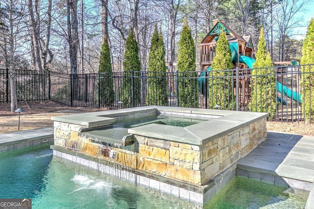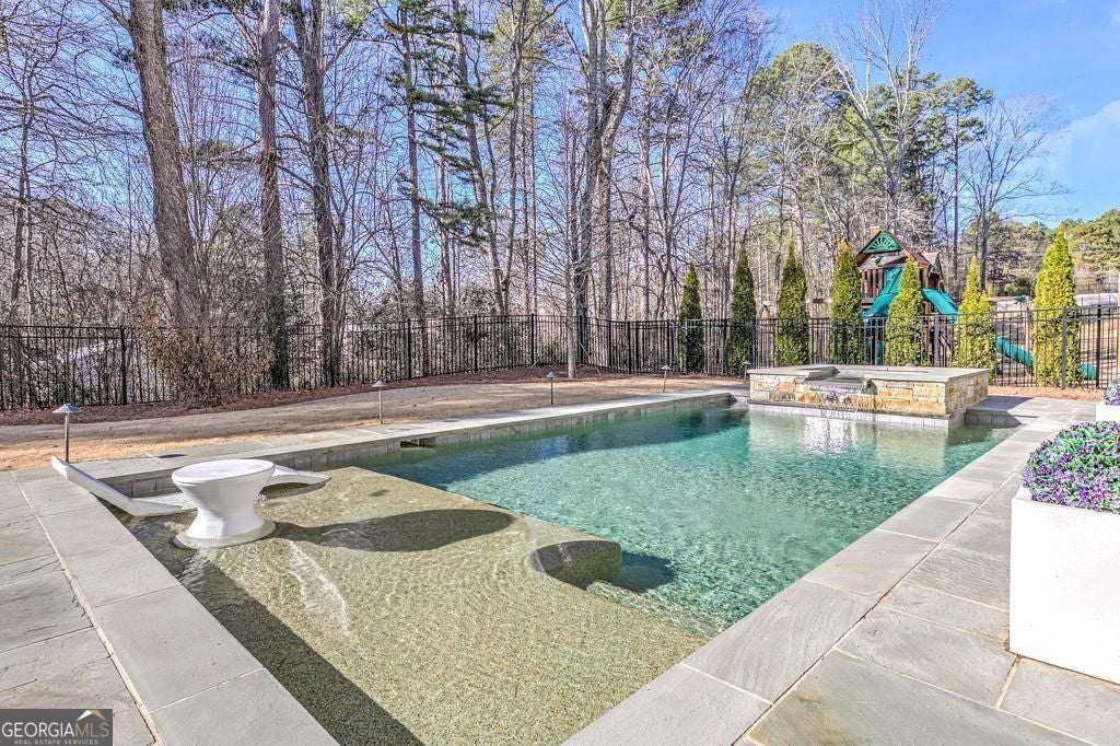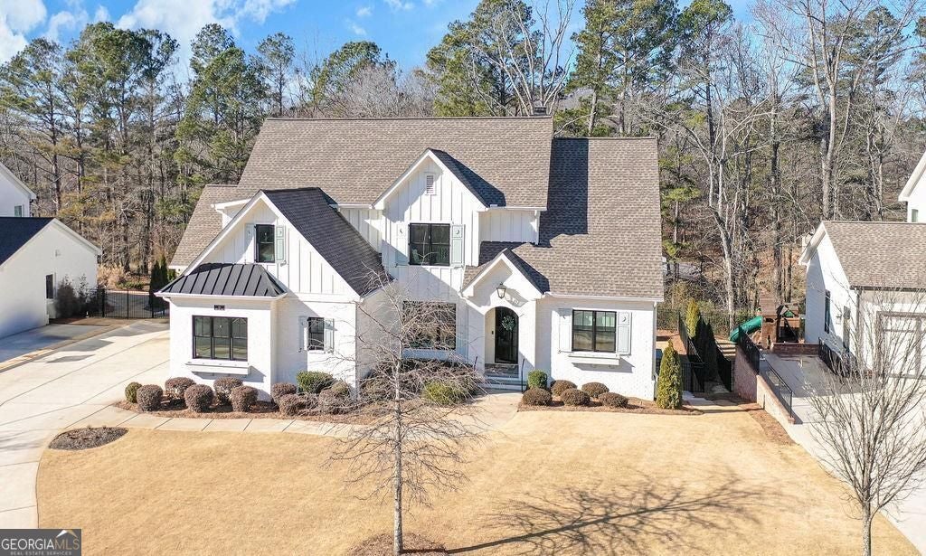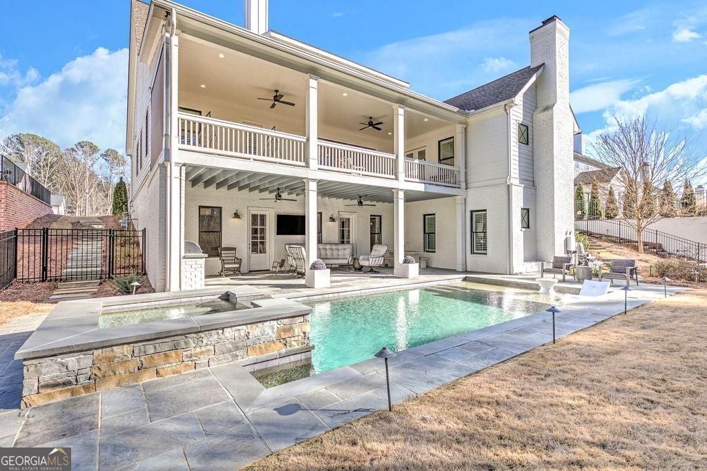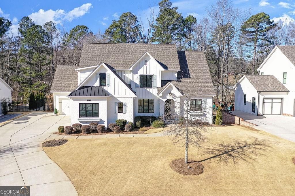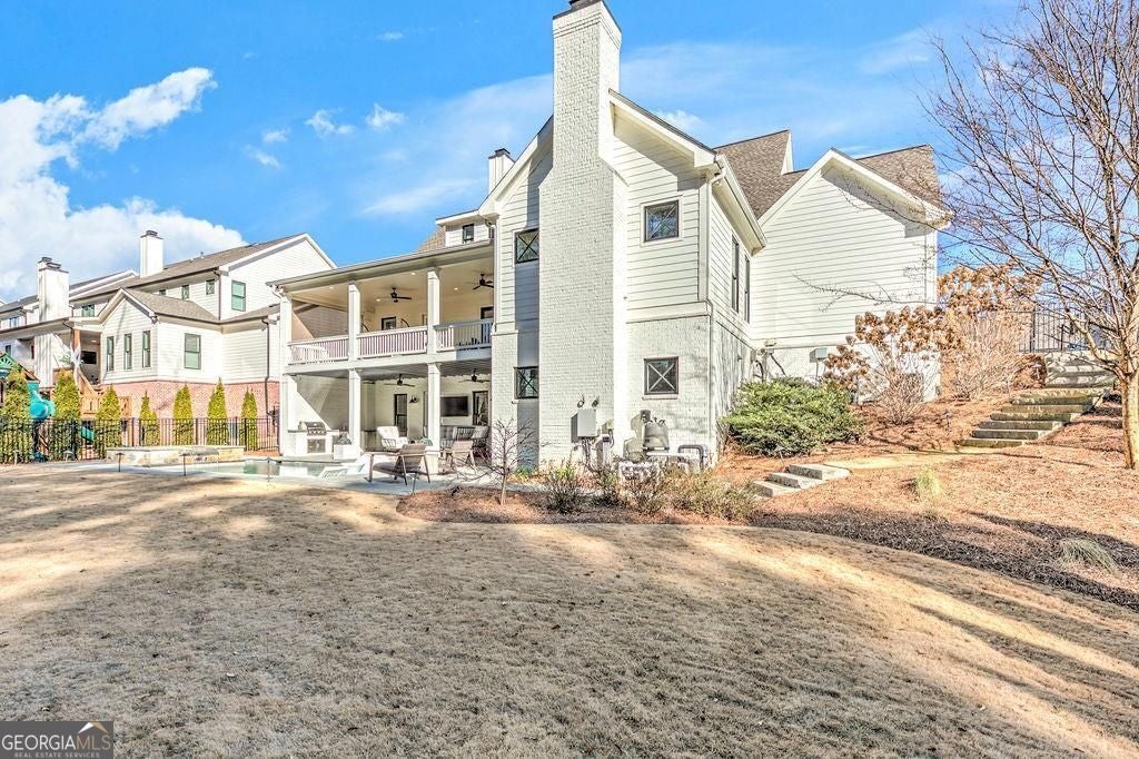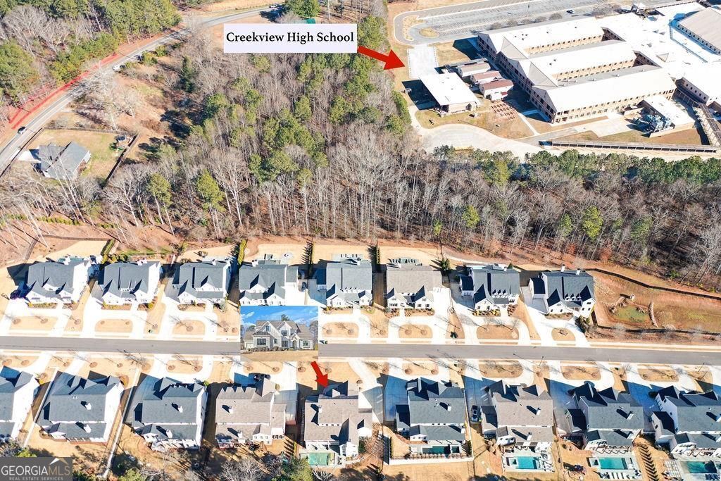 Located on a Street of Dreams, come experience the pinnacle of luxury living in the prestigious Owens Mill community near award winning Creekview High School. This stunning newer construction 5BR/6BA estate home by Steve Powell, one of Atlanta's premier builders, brings you 5900+ square feet of magnificent living space on three levels. A warm, bright foyer welcomes you as you walk through the exquisitely crafted metal front door into a large open floor plan on the main. The Dining Room sits eloquently off the foyer and adjacent to a large family room with a wood burning fireplace and stunning glass doors that look out at a tree-lined fenced backyard. The Chef's kitchen is one of the highlights of this beautiful home with KitchenAid appliances, an expansive oversized custom quartz island, elegantly crafted hood range and ample custom cabinetry. A charming keeping room sits off the kitchen with vaulted wood beams and a second wood burning fireplace. The family and keeping rooms both lead to a covered oversized porch that overlooks the heated saltwater pool, spa, Pennsylvania Bluestone decking and a covered lower patio that includes a fully equipped outdoor kitchen with gas grill, sink and refrigerator. Splendid bright light floods every room, thanks to the large windows and 10-foot-high ceilings throughout, including the basement. The main level Owners Suite is a sanctuary of luxury, including custom spa-like bathroom, dual vanities, frameless glass shower, separate soaking tub, and his and hers water closet. Not to be outdone, the second story Owners Suite includes an oversized spa-like bathroom, dual vanities, frameless glass shower, his and hers closets and a bonus living area that could serve as an office or reading area. The second story also includes two other spacious bedrooms with large closets and gorgeous full bathrooms. The fully finished basement is an open floor plan that offers space galore with entertaining areas, wet bar, movie room, exercise room, student work areas and a spacious guest room with luxury full bathroom. Don't miss additional features that include pre-finished wood floors throughout, clad windows, three car garage with epoxy flooring, custom metal railings, custom beams, exterior lighting and Leaf Guard gutter system. This home and its stunning design will take your breath away. Minutes away from top rated Cherokee Schools and four charming towns (Canton, Woodstock, Milton and Alpharetta) that offer top rated restaurants, night life, and fabulous shopping -- all while living in a conservation community. You will not want to miss out on seeing this great home. MOVE IN TODAY with an easy close.