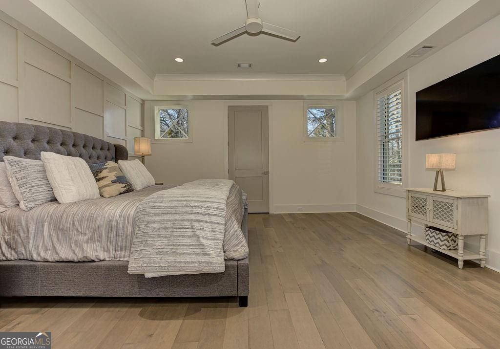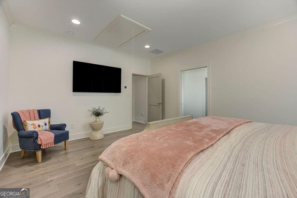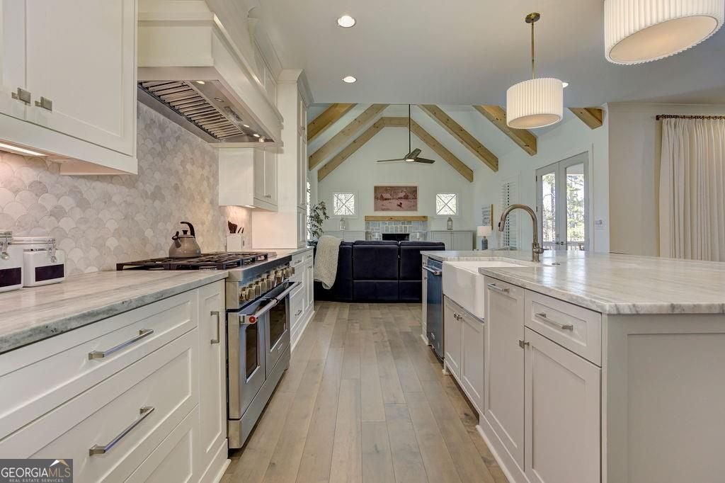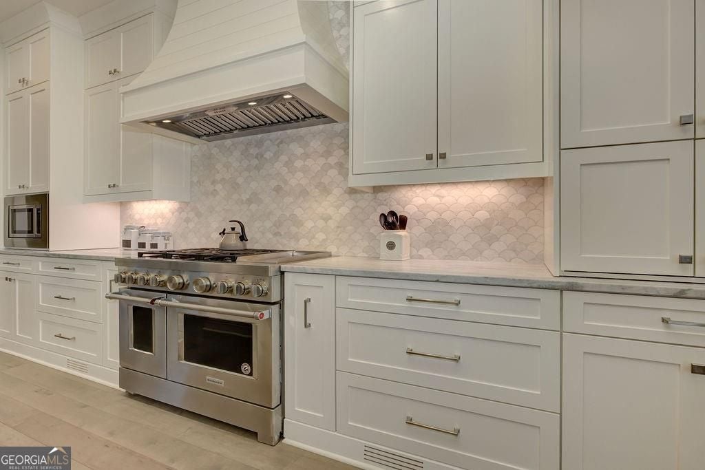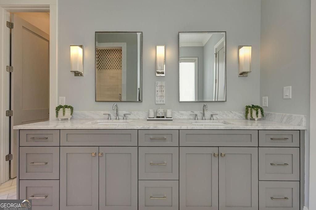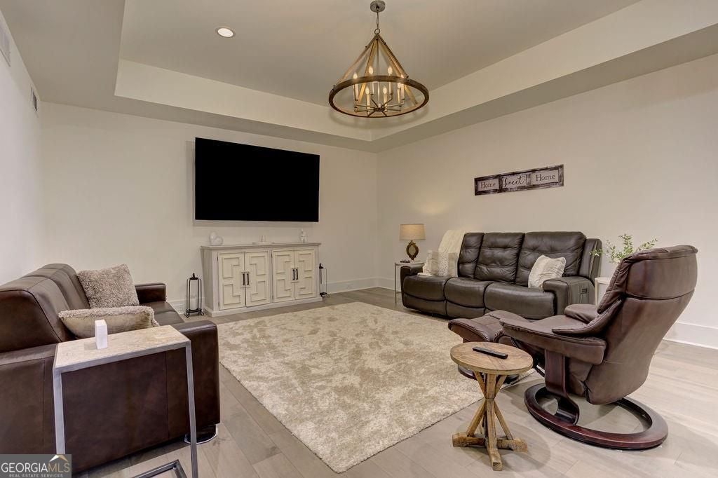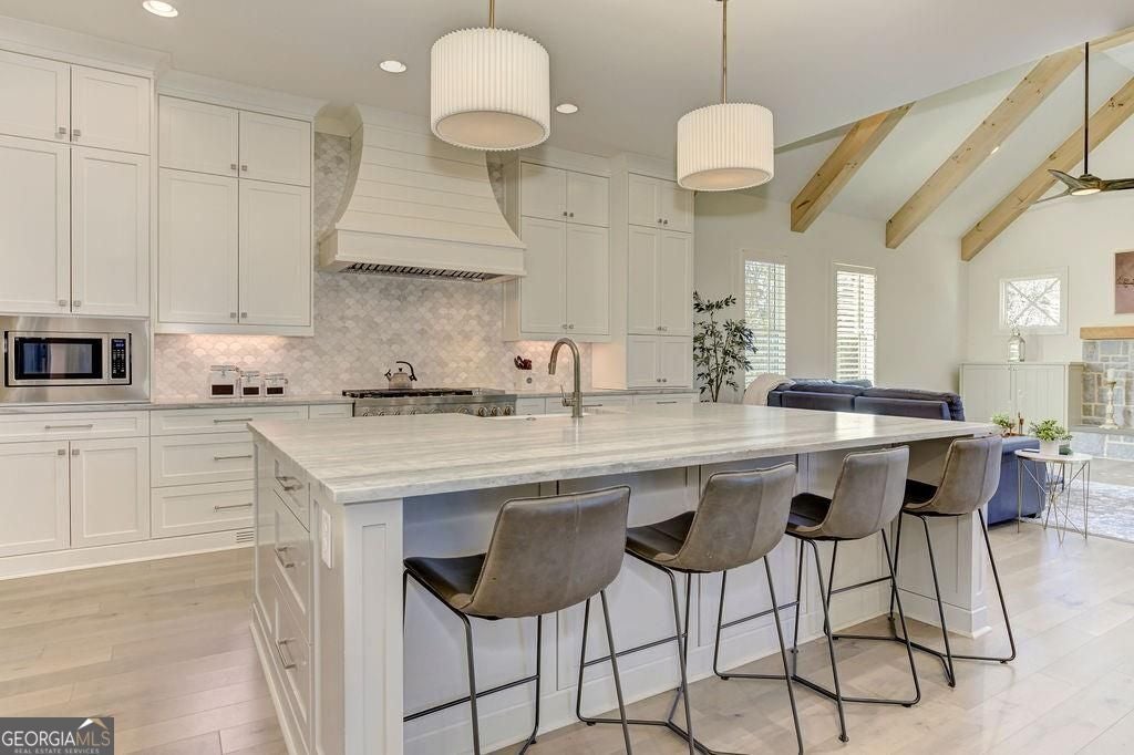 Located on a Street of Dreams, come experience the pinnacle of luxury living in the prestigious Owens Mill community near award winning Creekview High School. This stunning newer construction 5BR/6BA estate home by Steve Powell, one of Atlanta's premier builders, brings you 5900+ square feet of magnificent living space on three levels. A warm, bright foyer welcomes you as you walk through the exquisitely crafted metal front door into a large open floor plan on the main. The Dining Room sits eloquently off the foyer and adjacent to a large family room with a wood burning fireplace and stunning glass doors that look out at a tree-lined fenced backyard. The Chef's kitchen is one of the highlights of this beautiful home with KitchenAid appliances, an expansive oversized custom quartz island, elegantly crafted hood range and ample custom cabinetry. A charming keeping room sits off the kitchen with vaulted wood beams and a second wood burning fireplace. The family and keeping rooms both lead to a covered oversized porch that overlooks the heated saltwater pool, spa, Pennsylvania Bluestone decking and a covered lower patio that includes a fully equipped outdoor kitchen with gas grill, sink and refrigerator. Splendid bright light floods every room, thanks to the large windows and 10-foot-high ceilings throughout, including the basement. The main level Owners Suite is a sanctuary of luxury, including custom spa-like bathroom, dual vanities, frameless glass shower, separate soaking tub, and his and hers water closet. Not to be outdone, the second story Owners Suite includes an oversized spa-like bathroom, dual vanities, frameless glass shower, his and hers closets and a bonus living area that could serve as an office or reading area. The second story also includes two other spacious bedrooms with large closets and gorgeous full bathrooms. The fully finished basement is an open floor plan that offers space galore with entertaining areas, wet bar, movie room, exercise room, student work areas and a spacious guest room with luxury full bathroom. Don't miss additional features that include pre-finished wood floors throughout, clad windows, three car garage with epoxy flooring, custom metal railings, custom beams, exterior lighting and Leaf Guard gutter system. This home and its stunning design will take your breath away. Minutes away from top rated Cherokee Schools and four charming towns (Canton, Woodstock, Milton and Alpharetta) that offer top rated restaurants, night life, and fabulous shopping -- all while living in a conservation community. You will not want to miss out on seeing this great home. MOVE IN TODAY with an easy close.