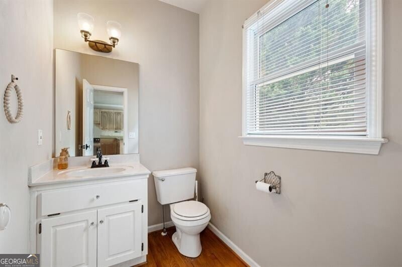 Welcome to this charming Canton home where traditional farmhouse character meets the laid-back lake lifestyle! Set on nearly an acre in the Falcon Pointe community, this inviting home blends space and outdoor living. A covered rocking-chair front porch opens to a bright two-story foyer and a fireside family room. The kitchen offers abundant cabinetry, granite countertops, a breakfast bar, and an eat-in area overlooking the separate dining room, perfect for gathering with friends and family. Just off the kitchen, enjoy a convenient half bath and access to the rear deck overlooking the expansive backyard. The master on main is a true retreat with his-and-her closets, a sitting area, and a private sunroom ideal for morning coffee or quiet reading! The updated ensuite bath features a double vanity, soaking tub, and separate shower. Upstairs, you'll find a convenient laundry room and three generously sized secondary bedrooms that share a full bath. The partially finished basement adds even more living space with a recreation room and half bath. The three-car drive-under garage, hardwood floors, plantation shutters, and thoughtful updates throughout tie it all together! Outside, the backyard transforms into an entertainer's paradise, a sprawling deck, above-ground pool with tiki bar, outbuilding/shed and large level lot offer endless possibilities for year-round fun! With no HOA and a tranquil setting close to Lake Allatoona, nearby trails & parks, Downtown Canton, Downtown Woodstock, and the Outlet Shoppes at Atlanta - this move in ready home delivers the best of North Georgia living: space, privacy, and adventure right at your doorstep!