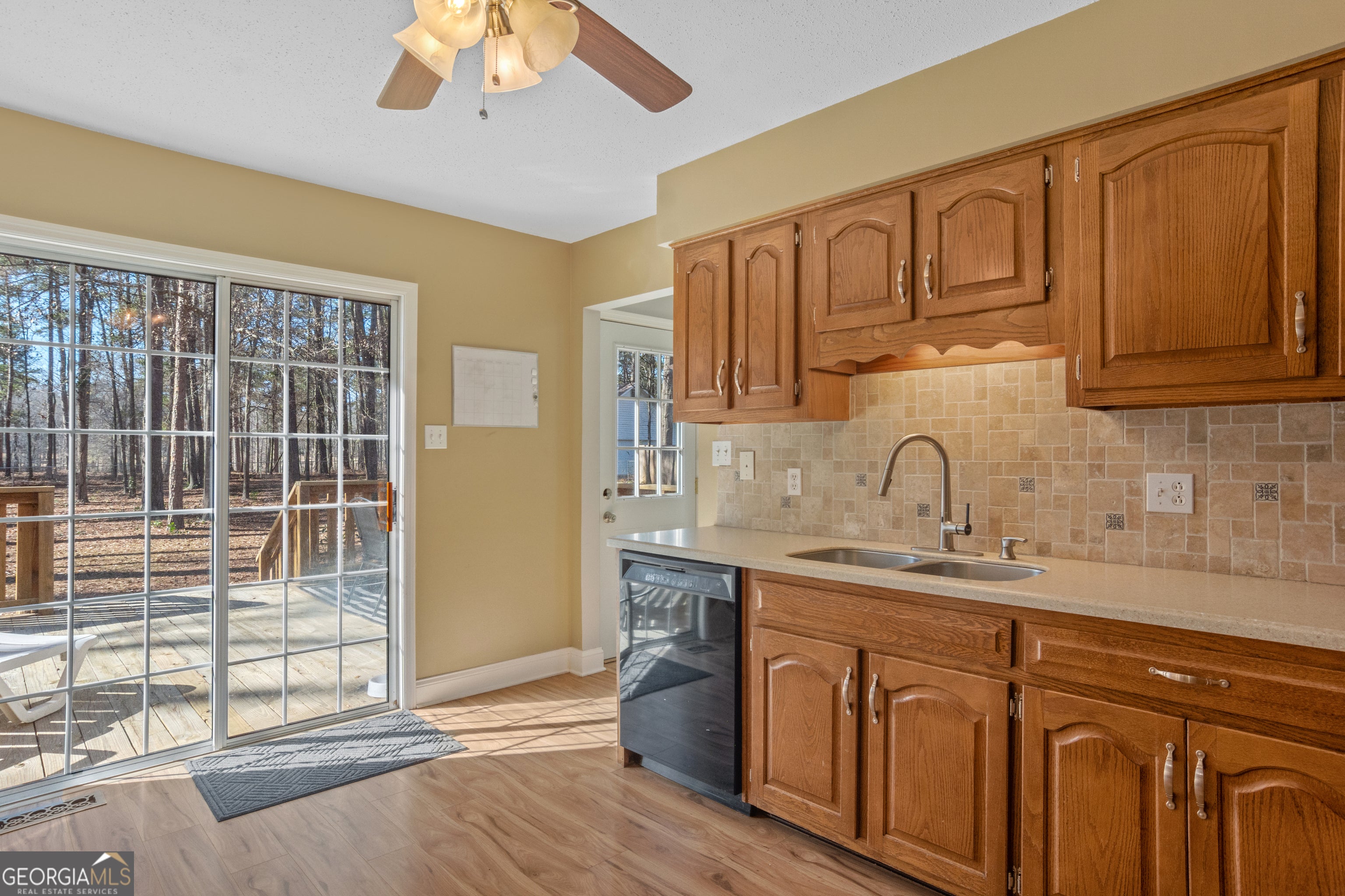 Welcome to this beautifully maintained brick home located in the highly desirable Club Forest Subdivision. Situated on a spacious 1-acre lot, this 2,189 sq ft residence offers a rare combination of privacy, golf course living, and convenience-just minutes from downtown Tennille. This 3-bedroom, 2.5-bath home backs directly up to the 13th fairway of Twin City Country Club, complete with a private gate providing easy access to the course. Enjoy outdoor living with a newly built back deck, a chain-link fenced backyard, and a wooden privacy fence along the front side of the property. Inside, the home features a thoughtfully designed layout with the primary suite on the main level, offering an ensuite bath with granite countertops. The main floor also includes an additional powder room, laundry room conveniently located just off the double garage, and a welcoming living room with vaulted ceilings and a brick, wood-burning fireplace. The kitchen is well-appointed with Corian countertops, ample cabinet and counter space, and a tile backsplash, making it ideal for everyday living and entertaining. Natural light floods the dining room through the large picture window overlooking the front porch and yard. The porch is perfect for relaxing and enjoying the quiet neighborhood. Upstairs are two additional bedrooms, a full bath, and a versatile loft space that can be used as an office, reading nook, or bonus area. Additional features include: Concrete driveway, new windows with transferable warranty, No HOA (covenants and restrictions apply). This home offers comfort, charm, and a unique golf-course setting-an exceptional opportunity in Tennille.