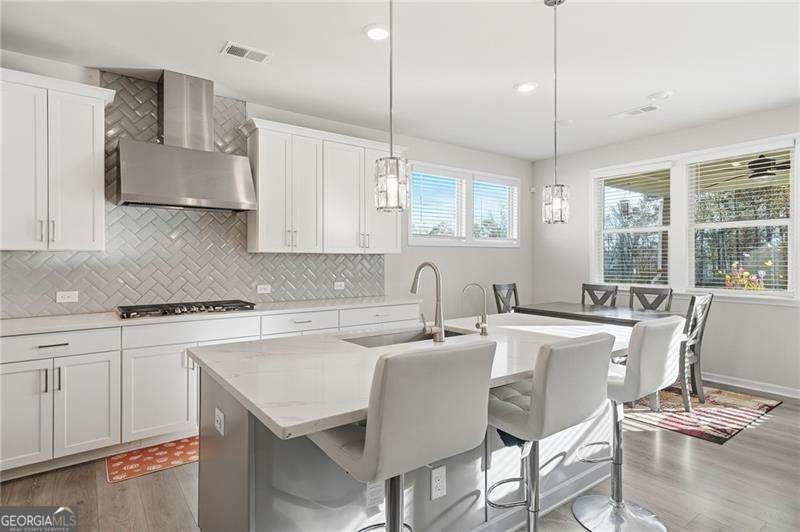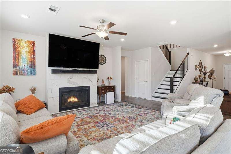 Built in 2022, this stunning cul-de-sac home combines modern design with timeless comfort, featuring beautiful fixtures and finishes throughout. The open-concept main level is perfect for entertaining, with a chef's kitchen overlooking the breakfast area and spacious living room. The kitchen is a dream with a large island offering plenty of storage, double ovens, and a butler's pantry that connects seamlessly to the formal dining room. A cozy fireplace anchors the living room, creating the perfect gathering spot on chilly fall evenings. Conveniently on the main floor, you'll find a full bedroom and bathroom, ideal for grandparents, guests, or a private home office. Upstairs, the oversized primary suite offers a spa-like ensuite with double vanity, soaking tub, and separate shower. Bedroom two enjoys its own private bathroom, while bedrooms three and four share a generous hall bath. A versatile loft adds even more living space, perfect as a second family room, playroom, or media area. The unfinished basement, already stubbed for a bathroom, is brimming with possibilities: create a man cave, in-law suite, home gym, or keep it for extra storage. A two-car garage with level driveway adds convenience, while the covered back deck is perfect for year-round enjoyment. Neighborhood amenities include a sparkling pool and sidewalks ideal for leisurely walks through the quiet community. All this, just minutes from Downtown Lawrenceville, local shopping, dining, and Hwy 316 and I85 for an easy commute.