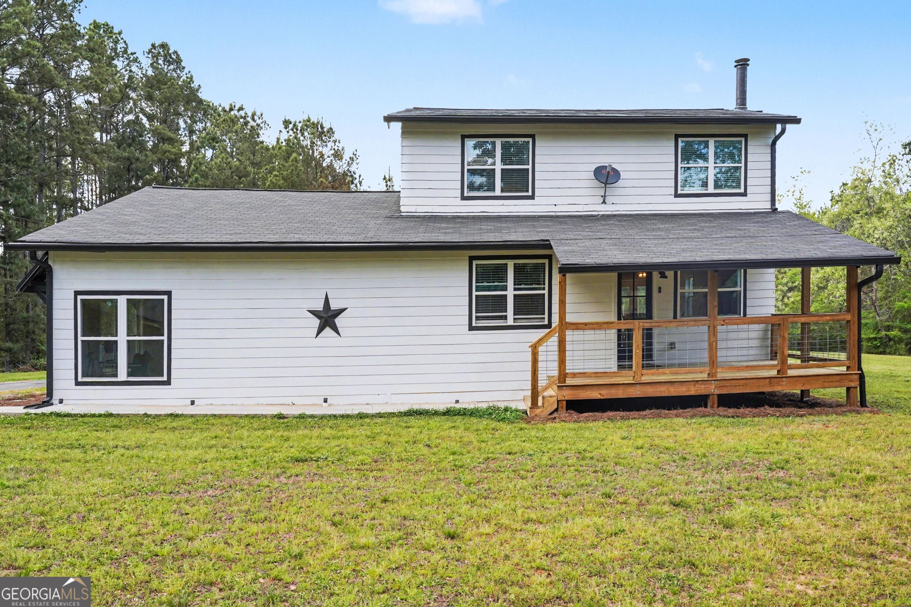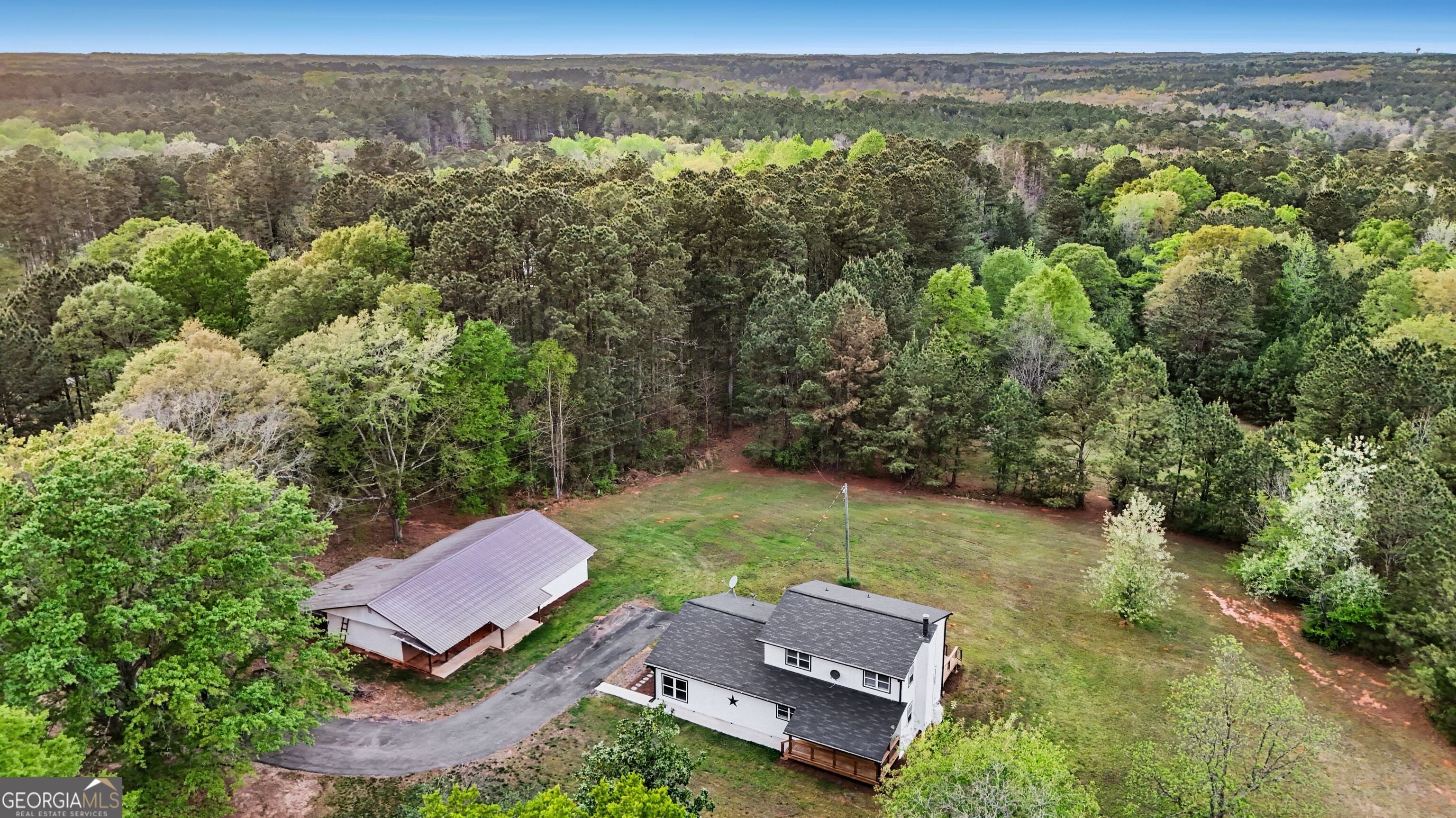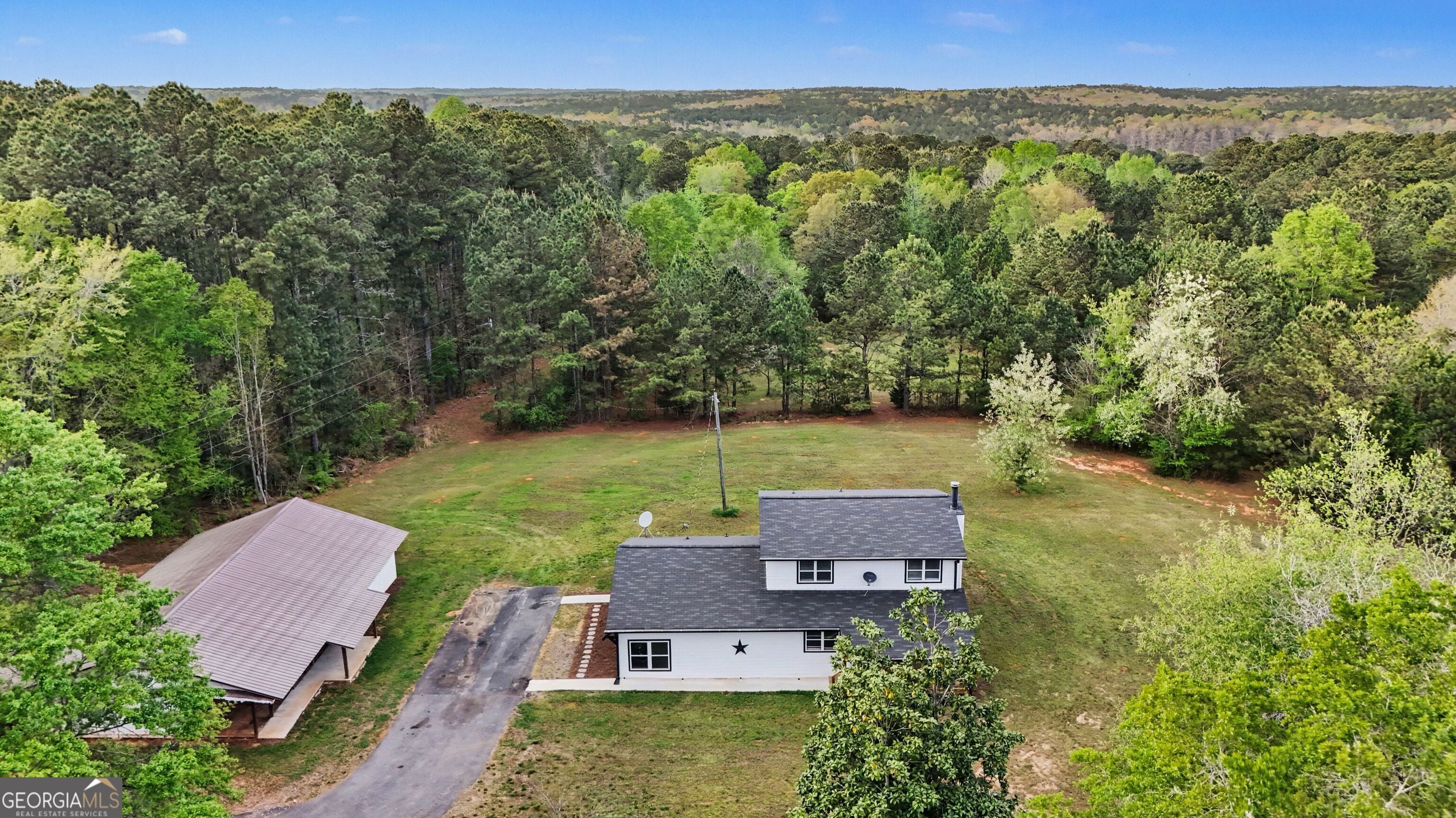 Nestled on nearly 15 private acres in the sought-after Tussahaw Farms subdivision, this beautifully renovated 3-bedroom, 3-bath home offers the perfect blend of modern comfort, space, and serene country living. The home is accessed by a private driveway, enhancing privacy while maintaining convenient access. From the welcoming front porch to the expansive rear deck overlooking the property, every detail invites you to slow down and enjoy the setting. Inside, the home features an open-concept living, kitchen, and dining area accented by hardwood floors and a cozy fireplace, creating an ideal space for both everyday living and entertaining. The updated kitchen showcases white cabinetry, stainless steel appliances, and generous counter space, flowing seamlessly into the main living areas. A large bedroom on the main level offers flexibility and could easily serve as a primary suite with its walk-in closet and full bathroom, while an extra-large bonus room on the main level provides endless options for a home office, media room, or additional living space. Upstairs, you'll find two spacious bedrooms, each with its own private bathroom, offering comfort and privacy for family or guests. The upstairs primary suite is a true retreat, featuring a glass-enclosed shower, double vanity, and two walk-in closets. Thoughtful renovations throughout the home include a roof only a few years old, energy-efficient windows, updated exterior lighting, and a new private well system. The home is all-electric and benefits from a private well, providing efficiency and independence. Outside, the property continues to impress with a 3-car detached garage offering ample parking and storage, along with additional unfinished space ideal for a woodshop, studio, or flexible-use space. The nearly 15 acres create endless opportunities for outdoor recreation, gardening, trail walking, or simply enjoying unmatched privacy and natural surroundings. Despite its peaceful setting, the home is conveniently located just minutes from the Cubihatcha Outdoor Center and reservoir trails, local parks, shopping, and dining, including Tanger Outlets Locust Grove. Easy access to Interstate 75 allows for quick travel to McDonough and the greater Atlanta area, making this an ideal location for those seeking space without sacrificing convenience. This exceptional property offers privacy, acreage, modern updates, and flexibility-an increasingly rare opportunity to enjoy expansive land living while staying connected to everything Locust Grove has to offer.