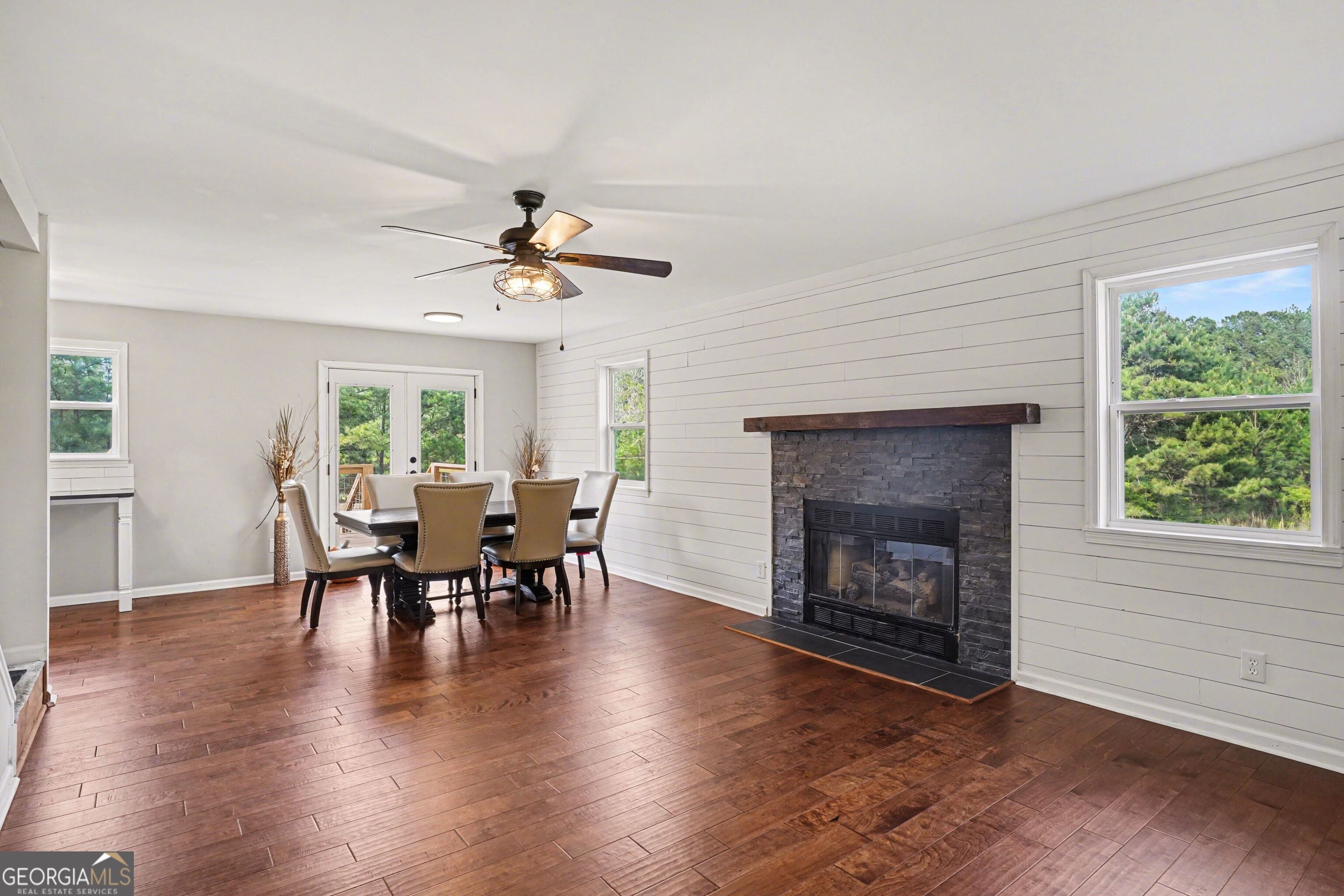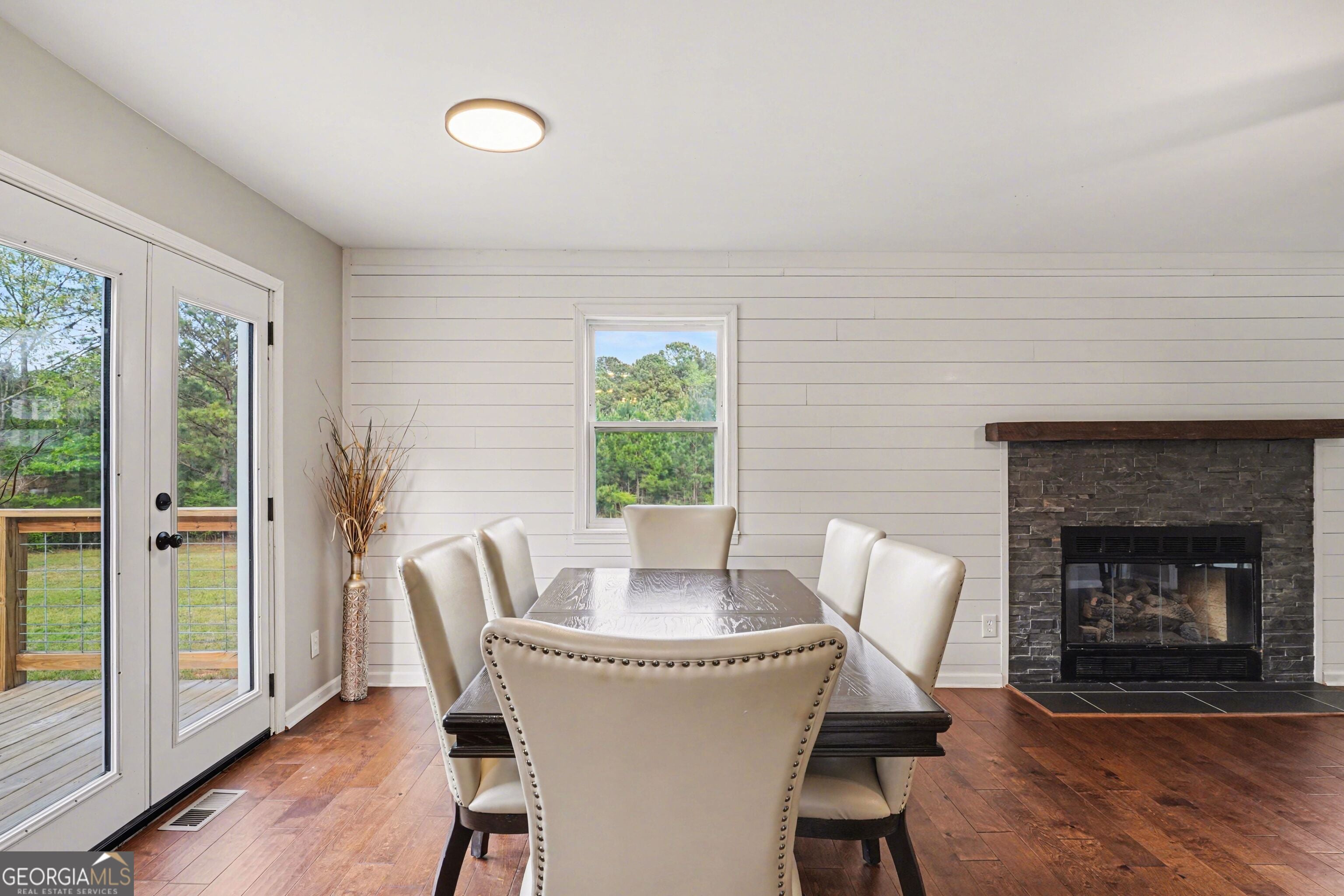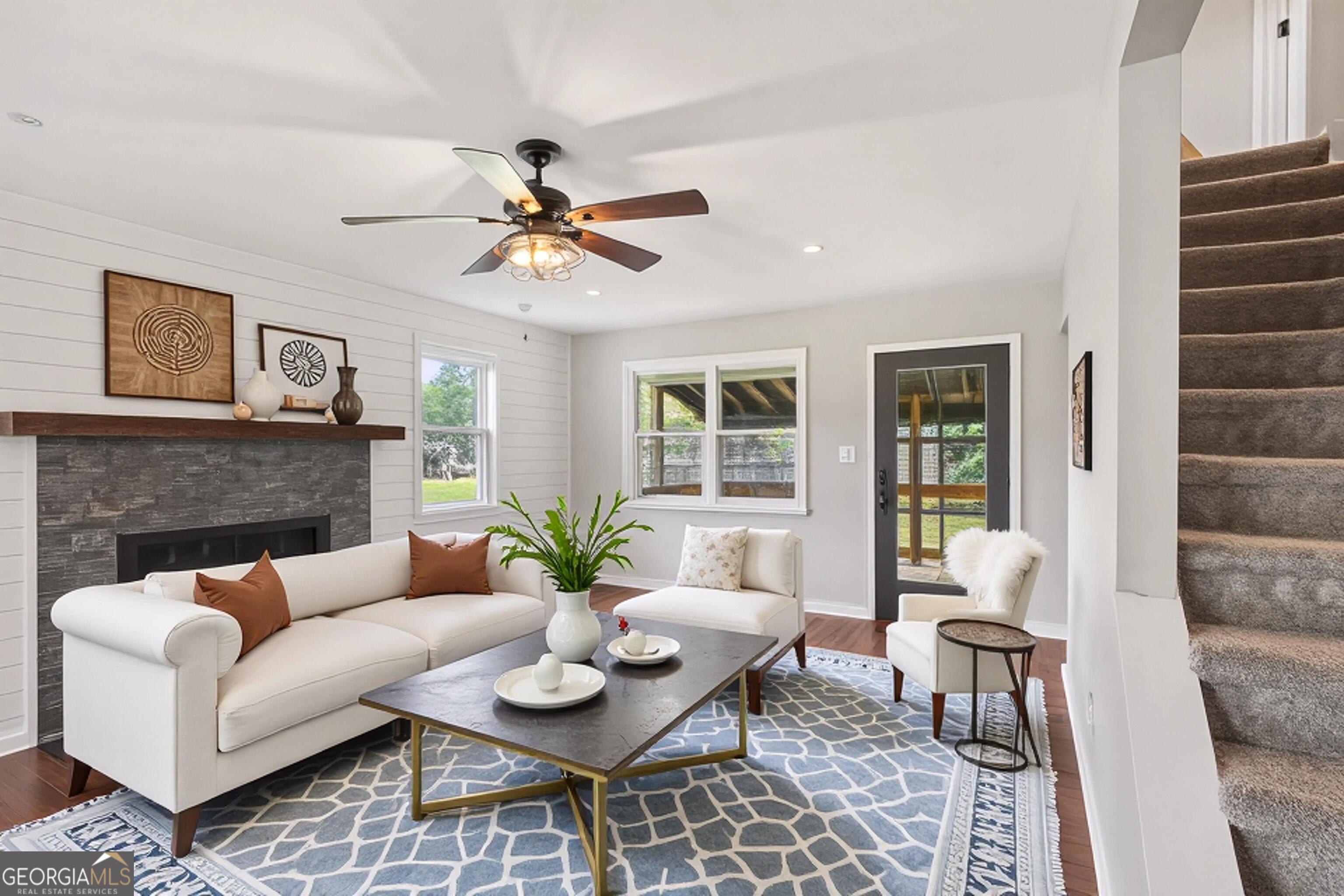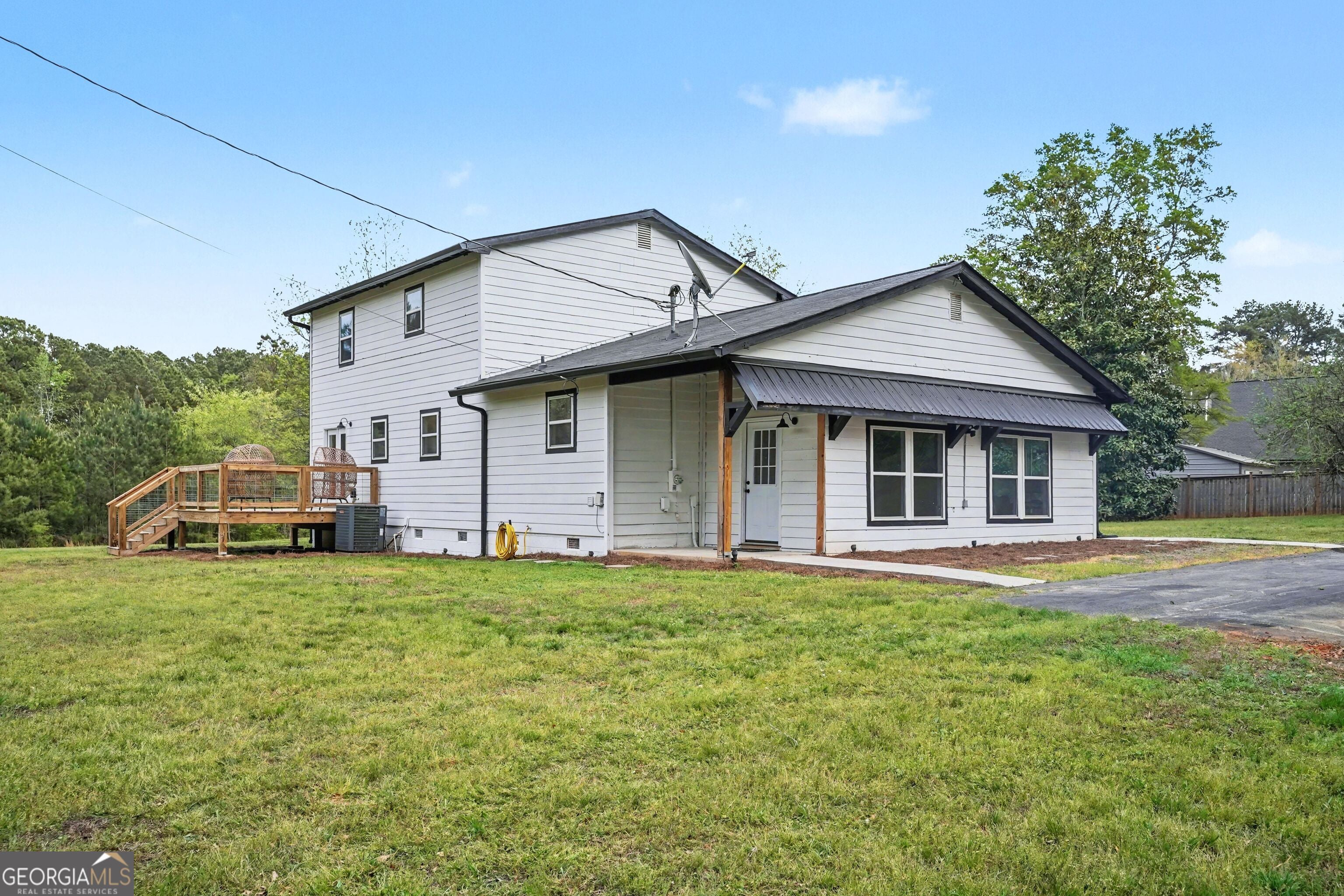 Nestled on nearly 15 private acres in the sought-after Tussahaw Farms subdivision, this beautifully renovated 3-bedroom, 3-bath home offers the perfect blend of modern comfort, space, and serene country living. The home is accessed by a private driveway, enhancing privacy while maintaining convenient access. From the welcoming front porch to the expansive rear deck overlooking the property, every detail invites you to slow down and enjoy the setting. Inside, the home features an open-concept living, kitchen, and dining area accented by hardwood floors and a cozy fireplace, creating an ideal space for both everyday living and entertaining. The updated kitchen showcases white cabinetry, stainless steel appliances, and generous counter space, flowing seamlessly into the main living areas. A large bedroom on the main level offers flexibility and could easily serve as a primary suite with its walk-in closet and full bathroom, while an extra-large bonus room on the main level provides endless options for a home office, media room, or additional living space. Upstairs, you'll find two spacious bedrooms, each with its own private bathroom, offering comfort and privacy for family or guests. The upstairs primary suite is a true retreat, featuring a glass-enclosed shower, double vanity, and two walk-in closets. Thoughtful renovations throughout the home include a roof only a few years old, energy-efficient windows, updated exterior lighting, and a new private well system. The home is all-electric and benefits from a private well, providing efficiency and independence. Outside, the property continues to impress with a 3-car detached garage offering ample parking and storage, along with additional unfinished space ideal for a woodshop, studio, or flexible-use space. The nearly 15 acres create endless opportunities for outdoor recreation, gardening, trail walking, or simply enjoying unmatched privacy and natural surroundings. Despite its peaceful setting, the home is conveniently located just minutes from the Cubihatcha Outdoor Center and reservoir trails, local parks, shopping, and dining, including Tanger Outlets Locust Grove. Easy access to Interstate 75 allows for quick travel to McDonough and the greater Atlanta area, making this an ideal location for those seeking space without sacrificing convenience. This exceptional property offers privacy, acreage, modern updates, and flexibility-an increasingly rare opportunity to enjoy expansive land living while staying connected to everything Locust Grove has to offer.