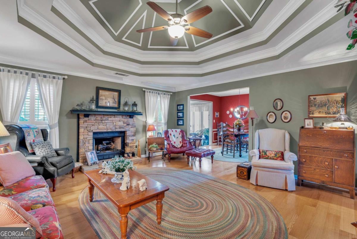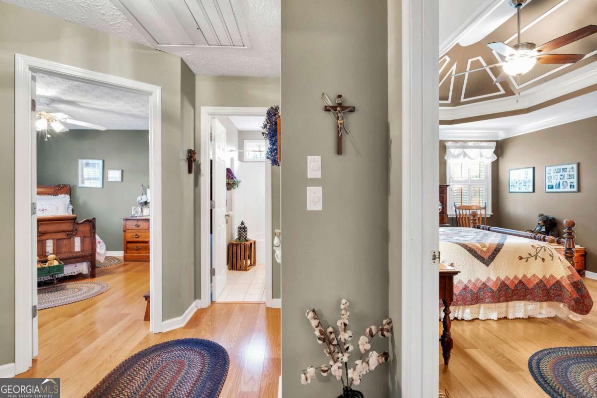 Must-see, well-maintained ranch in the desirable Walnut Grove School District! This beautifully cared-for 3-bedroom, 2-bath home offers exceptional space, thoughtful upgrades, and impressive versatility. The updated kitchen and renovated primary bathroom provide modern comfort, while custom tray ceilings in both the living room and primary bedroom add architectural character. Natural red oak hardwood floors flow through the main living areas and bedrooms, complemented by durable ceramic tile in the kitchen and baths. Every bedroom features a walk-in closet, and the garage space truly sets this home apart offering an attached two car garage plus an oversized detached two car garage, ideal for a workshop, extra storage, or recreational vehicles. Both the home and detached garage include attic space for even more storage. A flexible bonus room is perfect for a home office, media room, or playroom, while the enclosed sunroom with stone flooring provides a bright, inviting space to relax and enjoy year-round views. A rare blend of functionality, upgrades, and abundant storage. This property is a standout opportunity.