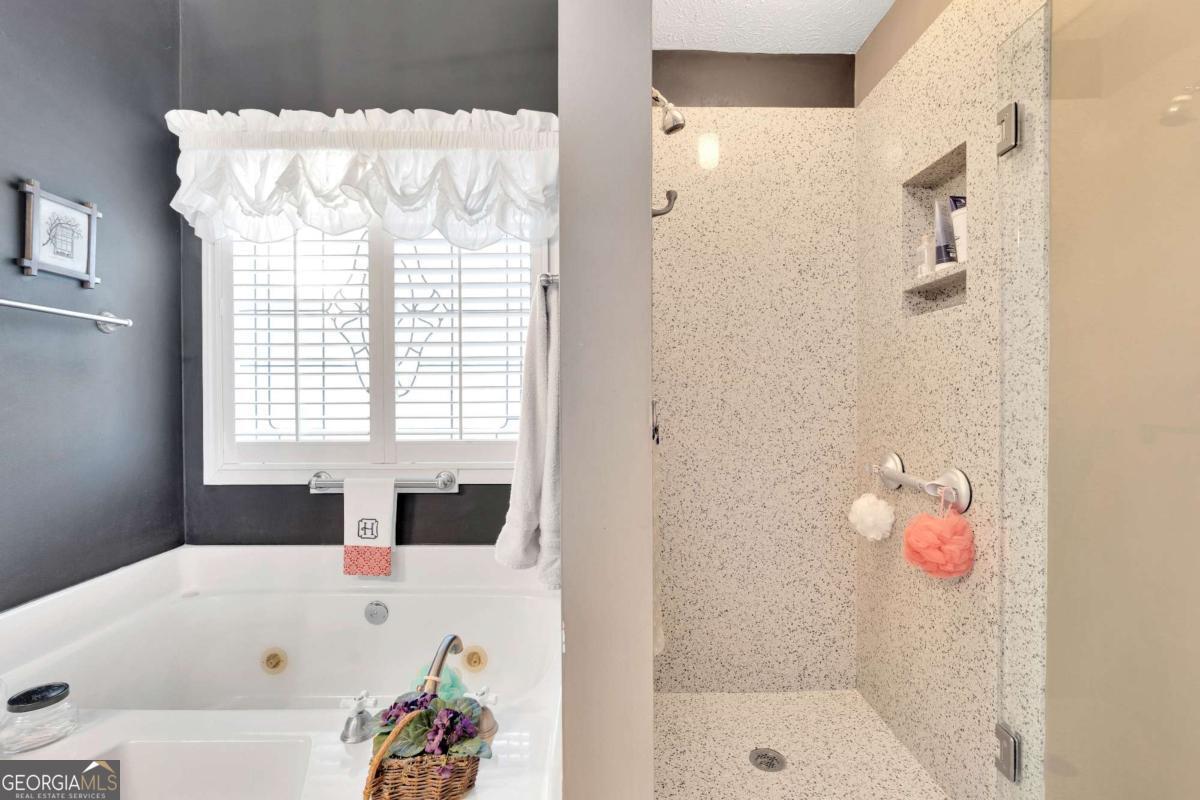 - Interior FeaturesDouble Vanity, Master On Main Level, Pulldown Attic Stairs, Separate Shower, Soaking Tub, Tray Ceiling(s), Walk-In Closet(s)