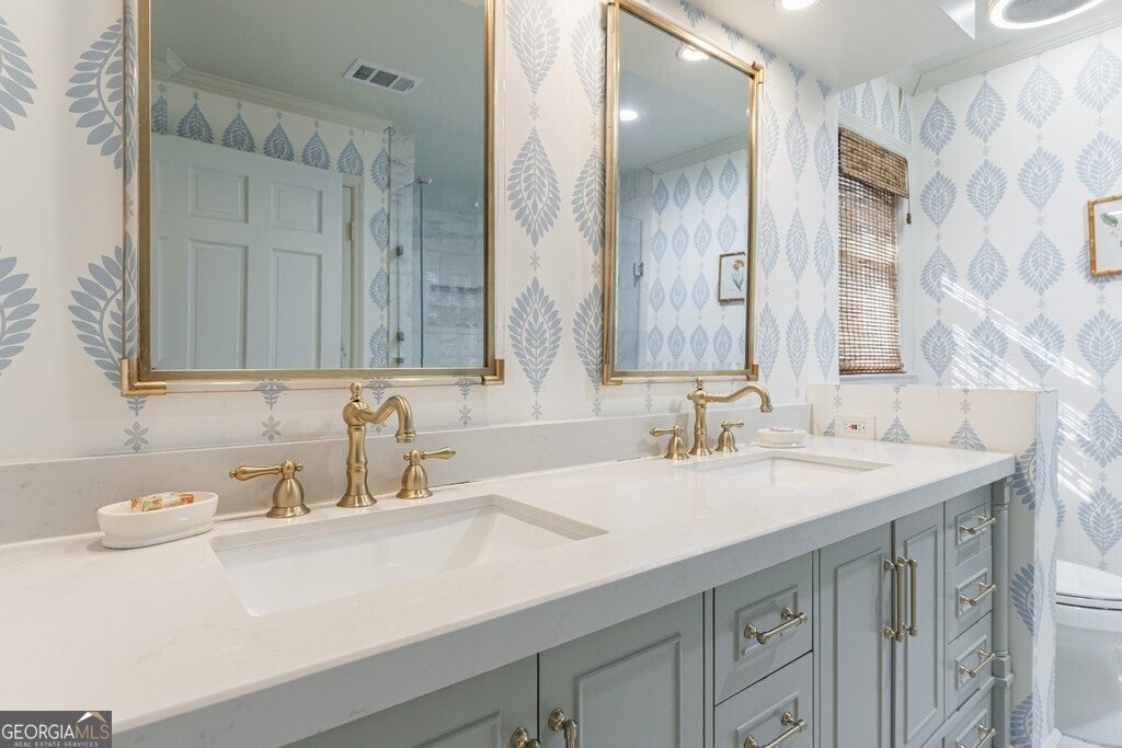 Gorgeous and fully updated home in Riverside! This home is tucked away in one of the most sought-after neighborhoods in Sandy Springs. Thoughtful, high-end updates are found throughout, including an expansive renovation of the backyard. The main level flows effortlessly from the fireside den with coffered ceilings into the beautifully updated eat-in kitchen and around the corner into the stunning dining room with new Schumacher wall paper. It is an entertainer's dream! Adjacent spaces include a newly updated wet bar, office and bonus area, and laundry room. The oversized primary suite offers a serene sitting area and a fully renovated spa-like bath with marble shower, designer fixtures, custom tile, vanity, and Schumacher wallpaper. The finished basement provides a spacious rec room, au pair or guest suite, and a custom wine closet. An enclosed sunroom and large deck overlook the lushly landscaped backyard that has numerous updates: including a large, flat yard space, brand new flowers, trees, hydrangeas, zeon zoysia grass, fence, and four rock gravity retaining walls. Everything is done on this house! Brand new roof and systems. It is ready for you to move in!