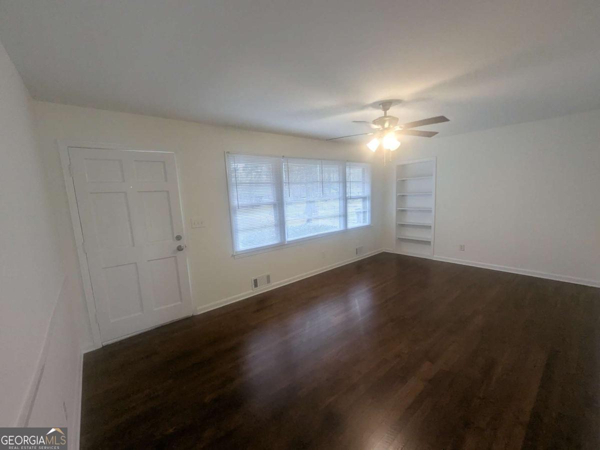 Pristine, bright ranch home with hardwoods and tiled flooring. 4-sided brick home with living room offering built in book shelves. Dining Room opens to kitchen and large deck. Huge private level and fenced Yard. Carport Conversion to terrific den or fourth bedroom. Walk to down town Cumming and school. MOVE IN READY!!