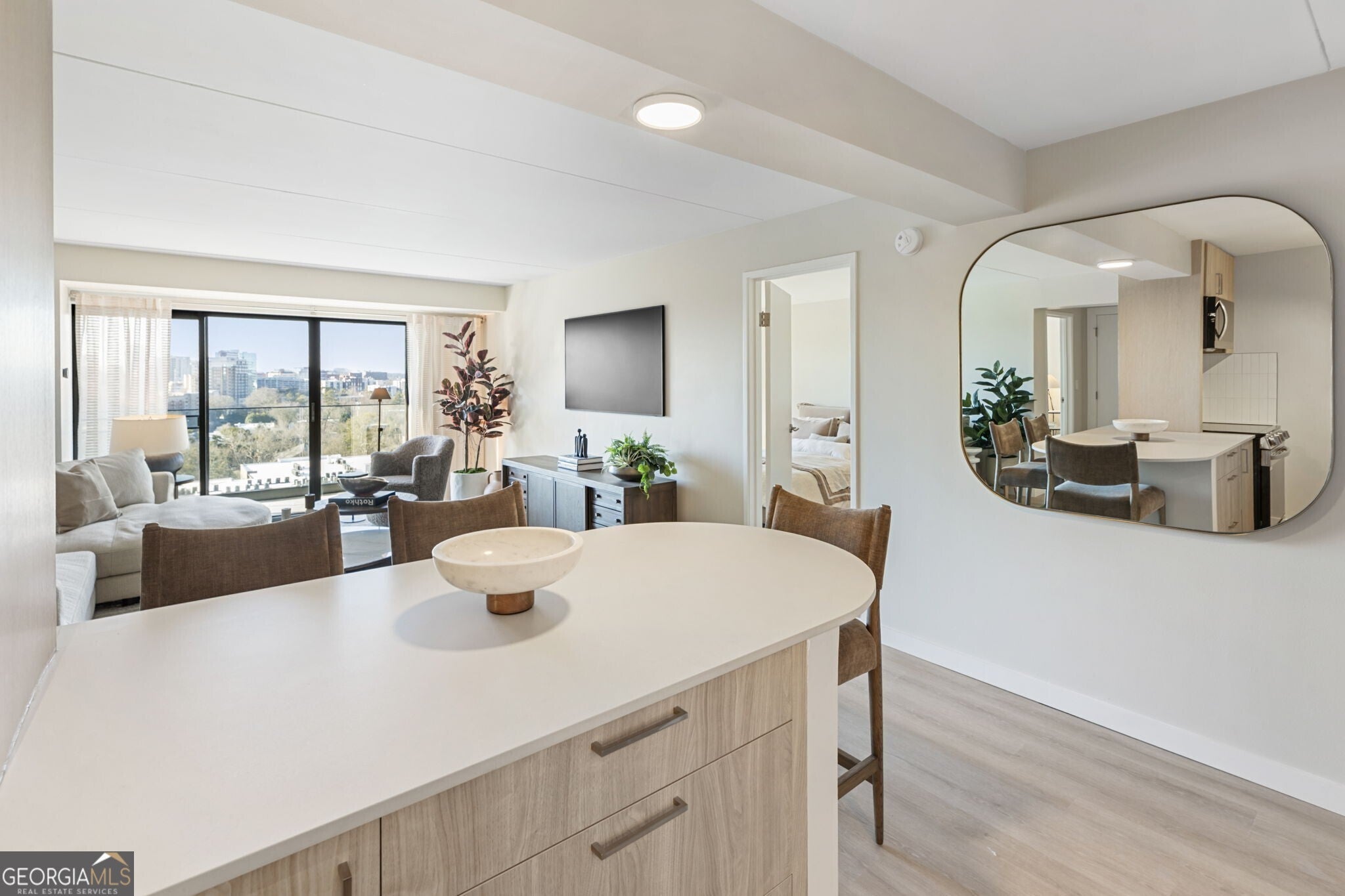 Introducing Panorama Buckhead Residences where skyline living meets exceptional value. With pricing in the mid-$300s, Panorama offers a rare entry into Atlanta's exclusive Millionaire's Row, placing you among luxury towers and multimillion-dollar estates in one of the city's most distinguished neighborhoods. This 11th-floor, north-facing two-bedroom residence offers a spacious open layout with an en-suite bathroom and generous walk-in closets. Sliding glass doors in the living area fill the home with natural light and open to an expansive balcony featuring peaceful treetop views and the Buckhead skyline. Homes include semi-custom selections, open one- and two-bedroom layouts with glass-wrapped balconies, sleek modern finishes including quartz countertops, an LG smart appliance package with a 36" counter-depth refrigerator, and a Miele washer and dryer. Amenities include a yoga/Pilates studio, sauna, state-of-the-art fitness center, 24-hour concierge, and sweeping views of Downtown, Midtown, and Buckhead's iconic skyline. Curated for the ultimate Buckhead lifestyle, Panorama places you minutes from premier shopping, dining, entertainment, golf, parks, and everyday conveniences. With easy access to transportation, the BeltLine, and Hartsfield-Jackson International Airport, staying connected is effortless. Welcome home to elevated city living welcome to Panorama Buckhead.