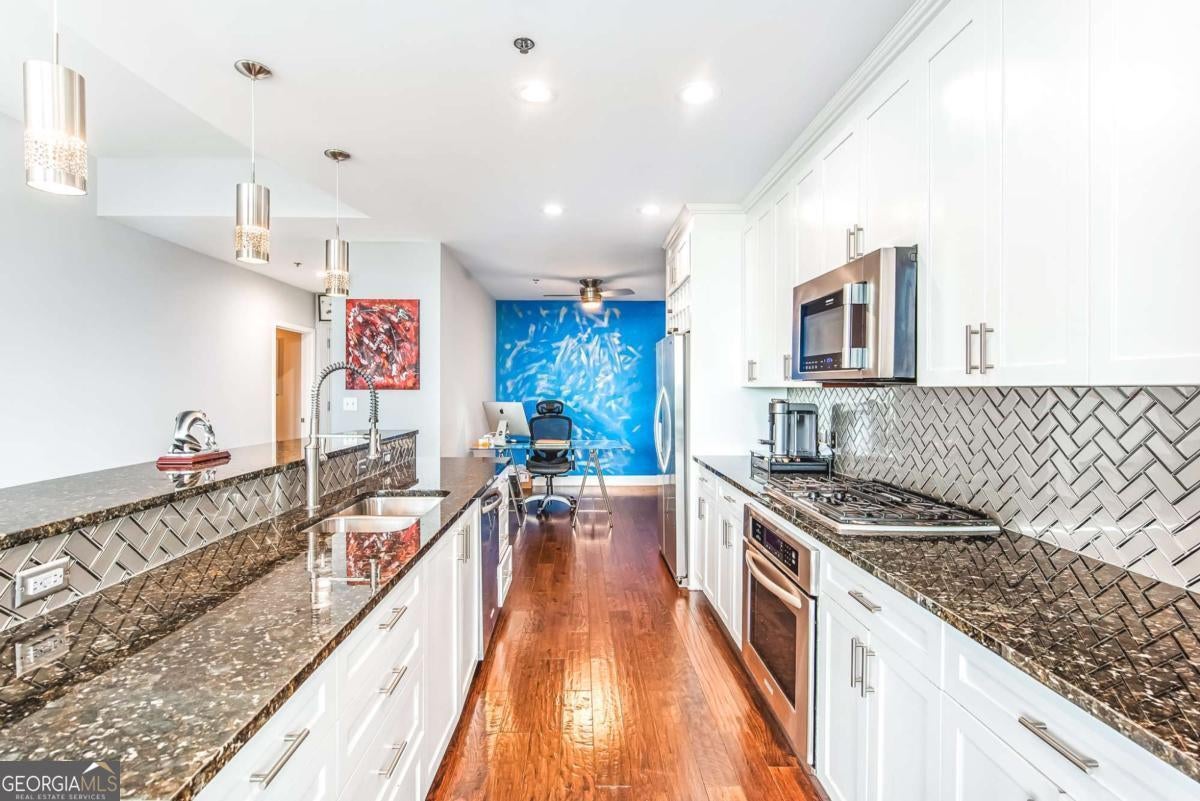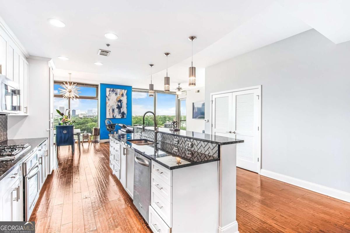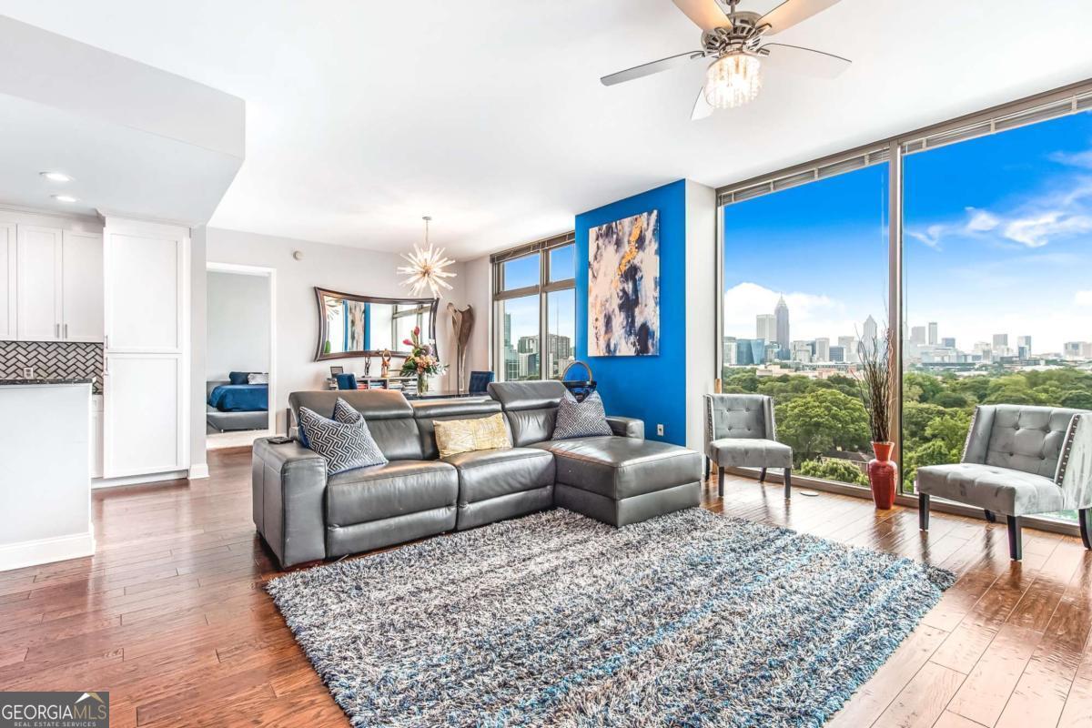 Breathtaking, unobstructed views of Midtown and Downtown Atlanta steal the show in this stunning 2-bedroom, 2.5-bath condo at The Atlantic Private Residences in Atlantic Station. Floor-to-ceiling windows frame the skyline and flood the home with natural light, creating a bright, dramatic backdrop to everyday living. The clean, open kitchen flows seamlessly into the living and dining areas and includes a bonus room just off the kitchen-perfect for a home office, den, or flex space. Both bedrooms are generously sized with large en suite bathrooms. The primary bath feels like a private spa retreat, featuring a large soaking tub, expansive glass-enclosed shower, and premium finishes, while the secondary suite offers its own spacious, well-appointed bath. Residents of The Atlantic enjoy a resort-style lifestyle with a gorgeous pool overlooking the city, a state-of-the-art fitness center, elegant clubroom and entertaining spaces, and 24-hour concierge with secure access. Set in the vibrant Atlantic Station neighborhood, you're just moments from premier shopping, dining, entertainment, and convenient access to major highways-delivering the ultimate in luxury high-rise living in Atlanta.