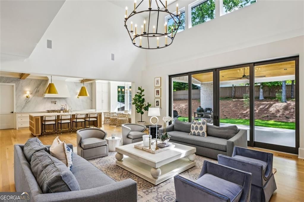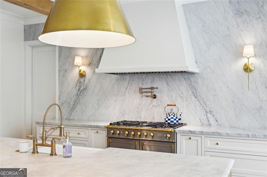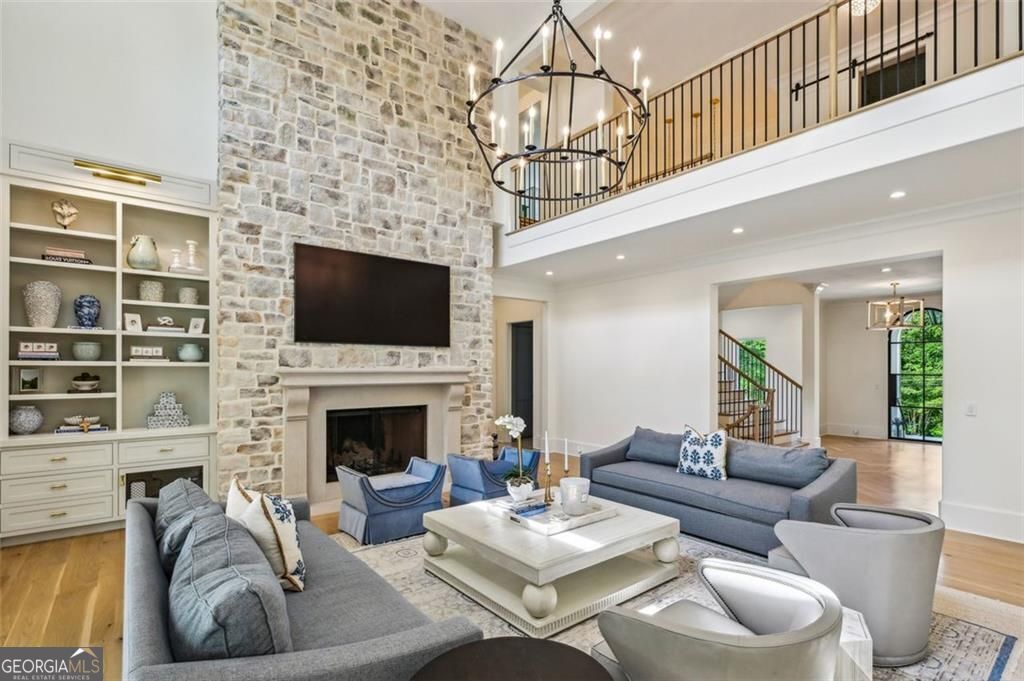Completed in June 2023, this spectacular new construction residence offers refined luxury just steps from Silver Lake and the Brittany Club. Thoughtfully designed with stunning architectural details, the home features stacked stone accents, white oak floors, soaring ceilings, a dramatic two-story foyer, and expansive glass sliding doors that seamlessly blend indoor and outdoor living. Inside, the elegant arched entry leads into a grand central staircase, a formal study with fireplace and custom built-ins, a formal dining room perfect for entertaining, and a spacious family room with designer lighting and exquisite finishes throughout. The gourmet kitchen is a true showstopper, featuring a 10-foot marble island, full-height marble backsplash, La Cornue professional range, Sub-Zero refrigeration, and a generous walk- in pantry. Floor-to-ceiling windows in the breakfast area flood the space with natural light and frame beautiful backyard views. The main-level primary suite is a serene retreat, boasting a vaulted ceiling with white oak detailing, a cozy seating area, dual walk-in closets, an oversized shower with multiple heads (including a rain shower), and a freestanding soaking tub. Exceptional outdoor amenities include a large covered patio with grill area, a dedicated outdoor pool bath, and an inviting exterior fireplace - perfect for al fresco gatherings. Additional highlights: a three-car garage with ample storage, a built-in mudroom drop zone, and a secondary laundry room for added convenience. Experience unparalleled craftsmanship, sophisticated design, and a prime Brookhaven location in this one-of-a-kind luxury home.