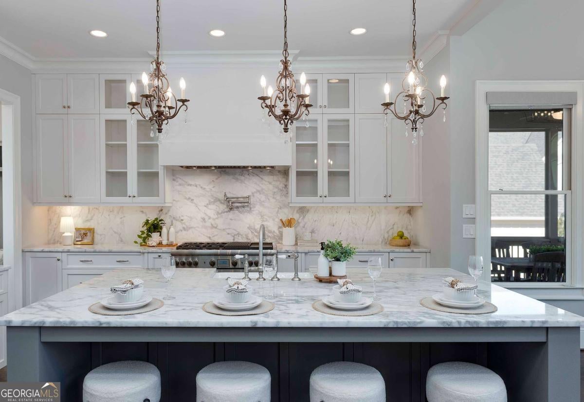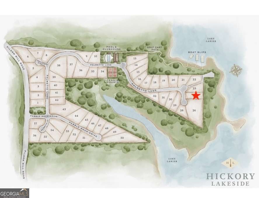 Gracious lakefront living meets timeless Southern charm in the exclusive gated community of Hickory Lakeside on Lake Lanier. This home comes with an assigned END UNIT boat slip, perfectly positioned on DEEP WATER with open views of the lake-ideal for easy boating days, sunset cruises, and long weekends spent on the water. With over 6,800 square feet of thoughtfully designed living space, this beautifully crafted custom home offers both grandeur and comfort. The two-story foyer makes a stunning first impression with its soaring ceilings and graceful curved staircase, while newly refinished oak hardwood floors set a warm, inviting tone. Nearby, a light-filled study with vaulted ceilings offers a quiet place to work or unwind, and the formal dining room-elegantly appointed with statement lighting-invites lingering dinners and special celebrations. At the heart of the home, the family room features two-story coffered ceilings and expansive windows that frame peaceful views of Lake Lanier, filling the space with natural light. The chef's kitchen is equally inviting, showcasing custom cabinetry, natural stone quartzite countertops, a 48-inch Thermador gas range, and high-end appliances-perfect for everything from casual breakfasts to holiday entertaining. A butler's pantry with beverage refrigerator adds both charm and convenience, making hosting effortless. The main-level primary suite is a true sanctuary, highlighted by vaulted ceilings and a private screened porch-the perfect spot to sip morning coffee while watching the sun rise over the lake. The spa-inspired bath features a generous walk-in shower with multiple shower heads, creating a peaceful retreat at the end of the day. Massive owners closet with laundry conveniently located inside. Upstairs, three oversized bedrooms, each with its own en suite bath, provide comfort and privacy for family and guests, along with additional storage space. Upstairs also offers an ADDITIONAL LAUNDRY AREA for convenience. The terrace level is made for gathering, offering a welcoming family room with fireplace and wet bar, a cozy theater room, and an additional bedroom with full bath. An unfinished area allows room to grow-ideal for future expansion or extra storage. Out back, the gently sloping yard is perfectly suited for a future pool, while a whole-home backup gas powered generator offers peace of mind in every season. Tucked toward the back of the neighborhood with direct lake access, this home feels both private and connected-just as lake living should. A three-car garage provides plenty of room for vehicles and lake essentials Life in Hickory Lakeside is rich with community and convenience, featuring high-end docks with water and power, an oversized pool, clubhouse with cabana and fireplace, lighted tennis and pickleball courts, and winding golf cart paths that make lake days and neighborly evenings easy and enjoyable. The neighborhood also provides a vibrant social calendar filled with plenty of opportunities to connect if desired. Events such as - Tequila Tastings, Omakase Sushi Nights, Mimosa Festival, Poker Runs, and Holiday Parties to name a few. This is more than a home-it's a Lake Lanier lifestyle, filled with mornings on the porch, afternoons on the water, and evenings spent gathered with friends and family. A rare opportunity to enjoy refined Southern living by the lake.