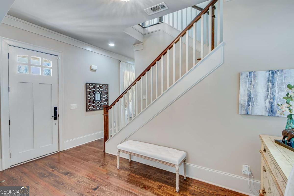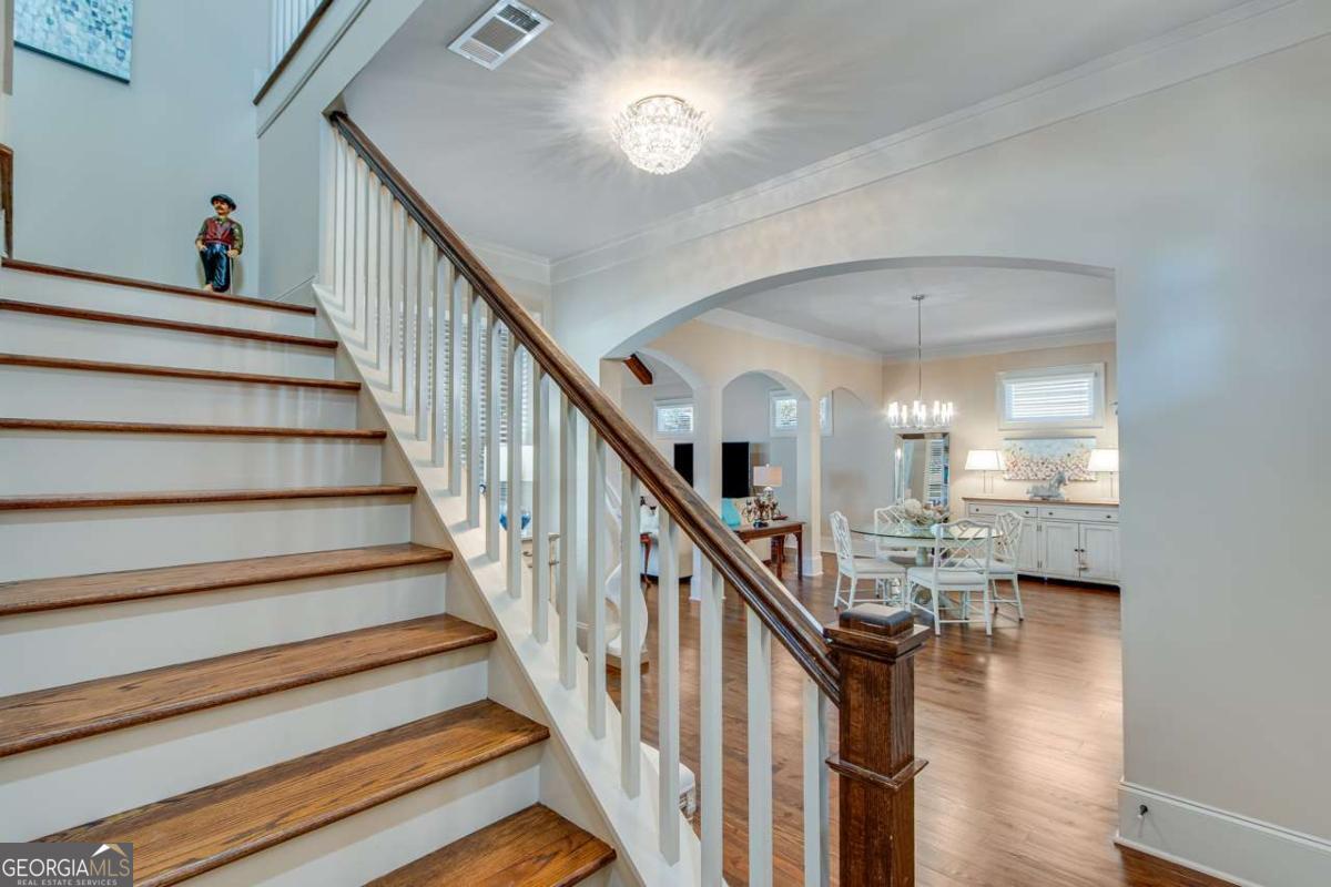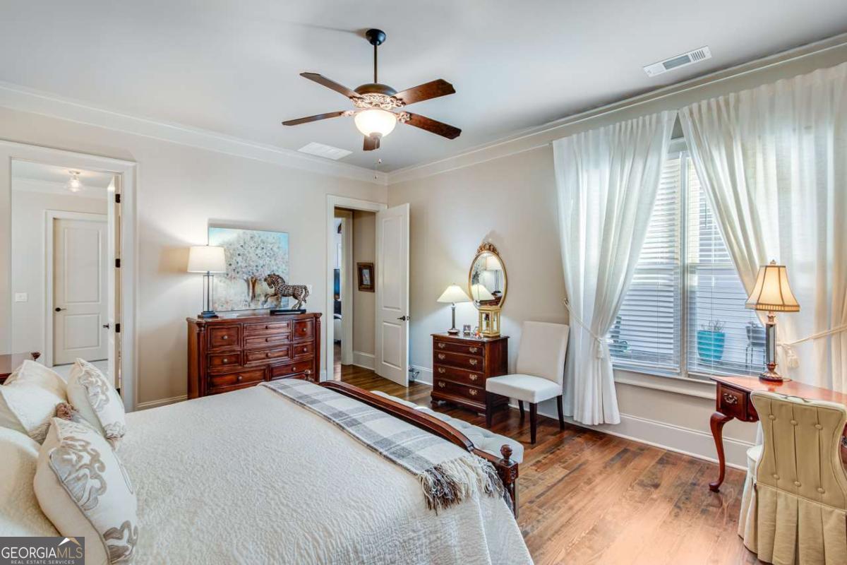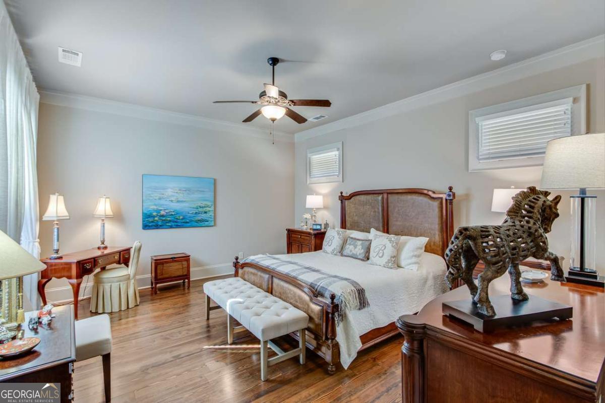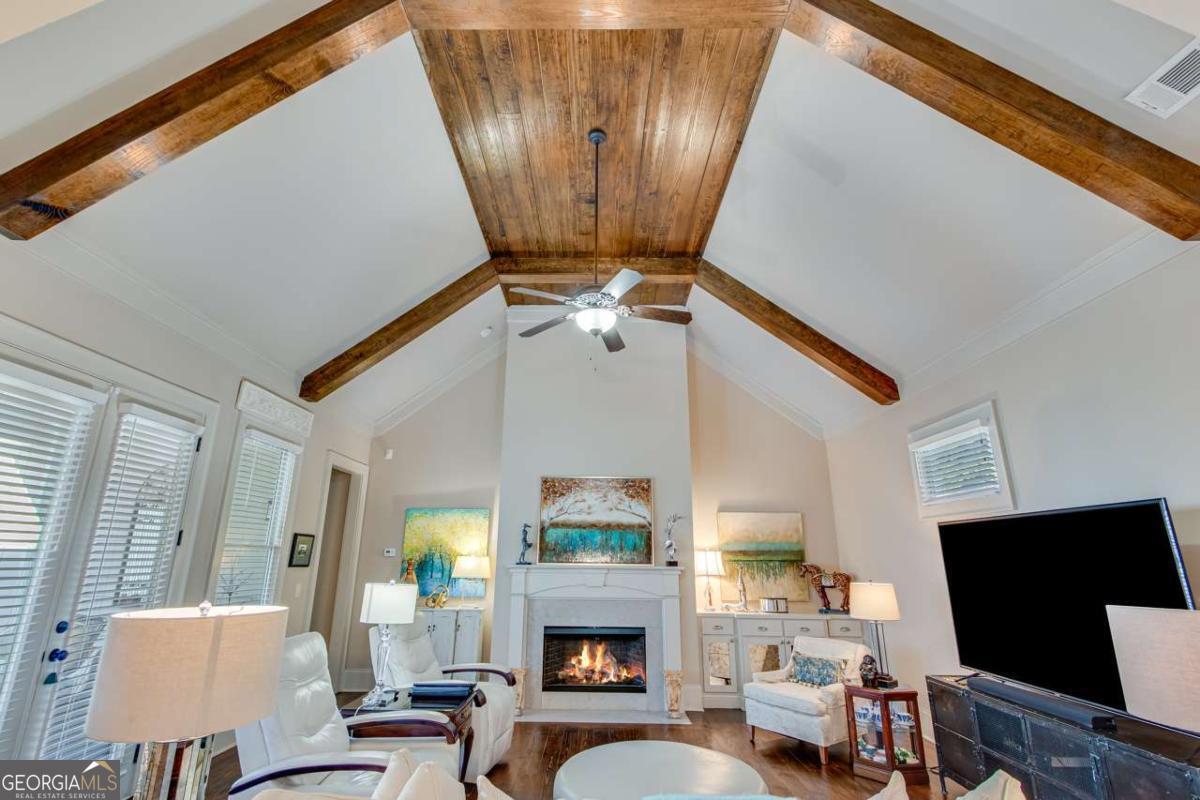 Nestled in the heart of The Georgia Club, 2189 Bessbrook Square offers 3,133-square-foot open concept, 4 bedrooms and 4 bathrooms, blending classic architectural details with modern comfort. From its inviting front porch to the manicured landscaping, every detail of this home is crafted for both relaxed living and effortless entertaining. With its prime location overlooking the park on Bessbrook Square, this standout property is a true gem in North Hill, one of the communitys most sought-after neighborhoods. Stepping through the front door, you are welcomed by a bright and inviting foyer that sets the tone for the rest of the home. Rich hardwood floors lead the way, complemented by elegant crown molding and soft neutral tones that create a warm atmosphere. A staircase with wooden accents adds to the charm, while an arched entryway provides a glimpse into the open concept living spaces beyond. The kitchen is a blend of crisp white cabinetry, complemented by a warm-toned herringbone backsplash that adds texture and depth. The large center island with a rich dark wood base serves as both a prep space and a casual dining area, topped with stone countertops that extend throughout the kitchen. High-end stainless-steel appliances, including a gas cooktop, double ovens, and a French-door bottom mount refrigerator with pendant lighting. A walk-in pantry offers additional storage, ensuring a clutter-free workspace. Open to the dining and living areas, this thoughtfully designed kitchen is perfect for both daily living and entertaining. The living room boasts vaulted ceilings with exposed wooden beams with a floor-to-ceiling fireplace with gas logs creates a cozy focal point. Soft neutral tones and natural light from the high-set windows enhance the open and airy feel of the space. The primary suite on the main level is a serene retreat, offering a blend of style and comfort. The bedroom features rich hardwood floors, soft neutral tones, and large windows, allowing natural light to fill the space. The primary bathroom is a spa-like oasis, boasting a soaking tub, a glass-enclosed, zero entry walk-in shower with dual shower heads, and separate vanities with stone countertops. A walk-in closet provides ample storage with custom shelving, making it as functional as it is beautiful. In addition to the primary suite on the main level, this home features a spacious guest bedroom with its own full bathroom, offering comfort and privacy for visitors. With stunning views of the private courtyard, this versatile space could also serve as a dedicated home office, providing a quiet and functional workspace. Upstairs has two additional bedrooms, with ensuite baths, making them ideal for family members or guests. A large loft area serves as a flexible living space, perfect for a secondary living room, media room, or study. With its open layout and abundant natural light, this upper level provides a private yet connected space for relaxation and entertainment. The private courtyard offers a charming outdoor retreat perfect for relaxation and entertaining. The brick-paved patio extends from the covered porch, creating a seamless flow between indoor and outdoor living. A built-in fire pit serves as a cozy focal point, ideal for gathering on cool evenings. Thoughtfully arranged seating areas provide plenty of space for dining, lounging, or enjoying a morning coffee. Surrounded by lush landscaping, this inviting outdoor space offers a peaceful escape while still being just steps away from the heart of the home. The Georgia Club is a gated community with a private golf & country club offering 27 holes of championship golf, aquatic complex with two pools, a full-service fitness center, tennis & pickle ball, an onsite restaurant open six days a week for breakfast, lunch and dinner, and so much more! Come out and see firsthand this fabulous community that offers a lifestyle unlike any other in the Athens area.