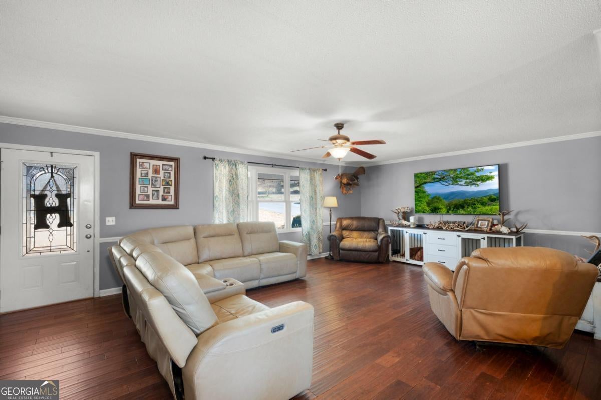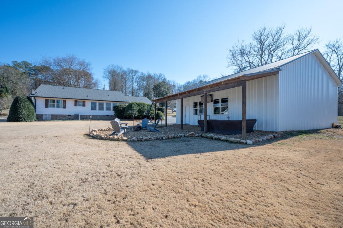 A classic ranch with a coveted setting in an ideal location. The perfect balance of tranquility and convenience nestled within a rare find neighborhood known for its community charm. This property offers the peaceful atmosphere of a country-like setting while remaining remarkably close to town for a short commute to schools and commerce with no HOA. Three bedrooms and three full baths, this layout prioritizes privacy and effortless flow. Each bedroom enjoys the luxury of a private en suite, perfectly complementing the expansive, open-concept living area designed for modern comfort. Oversized master bedroom with large walk-in shower, flowing into oversized laundry. Large windows in the sunroom invite an abundance of natural light and leads towards the outdoors. The spacious backyard, is made for hosting gatherings, family or relaxing around the fire pit area. You'll appreciate the location and space that defines this unique location. Despite its private feel, you are just minutes away from local shopping, dining, hospital, Interstate 75, Highway 41, and South Calhoun Bypass to Rome (connecting GA-53 to US-411) and essential amenities. A 30x40 detached metal garage with 10 ft. automatic doors. This is an exceptional chance for a collector of cars, boats, or a working mechanic space with power and water plumbed. The versatile lean-to serves as a premier outdoor living space, perfect for lively gatherings or providing storage solutions.