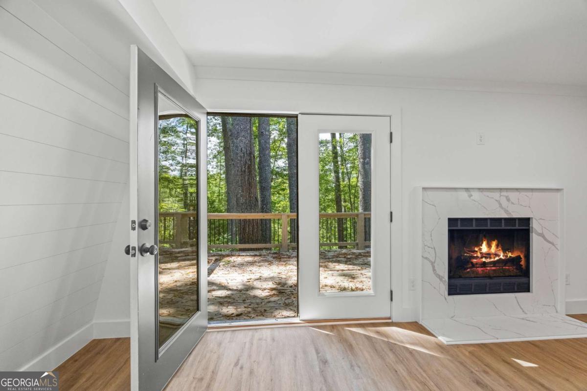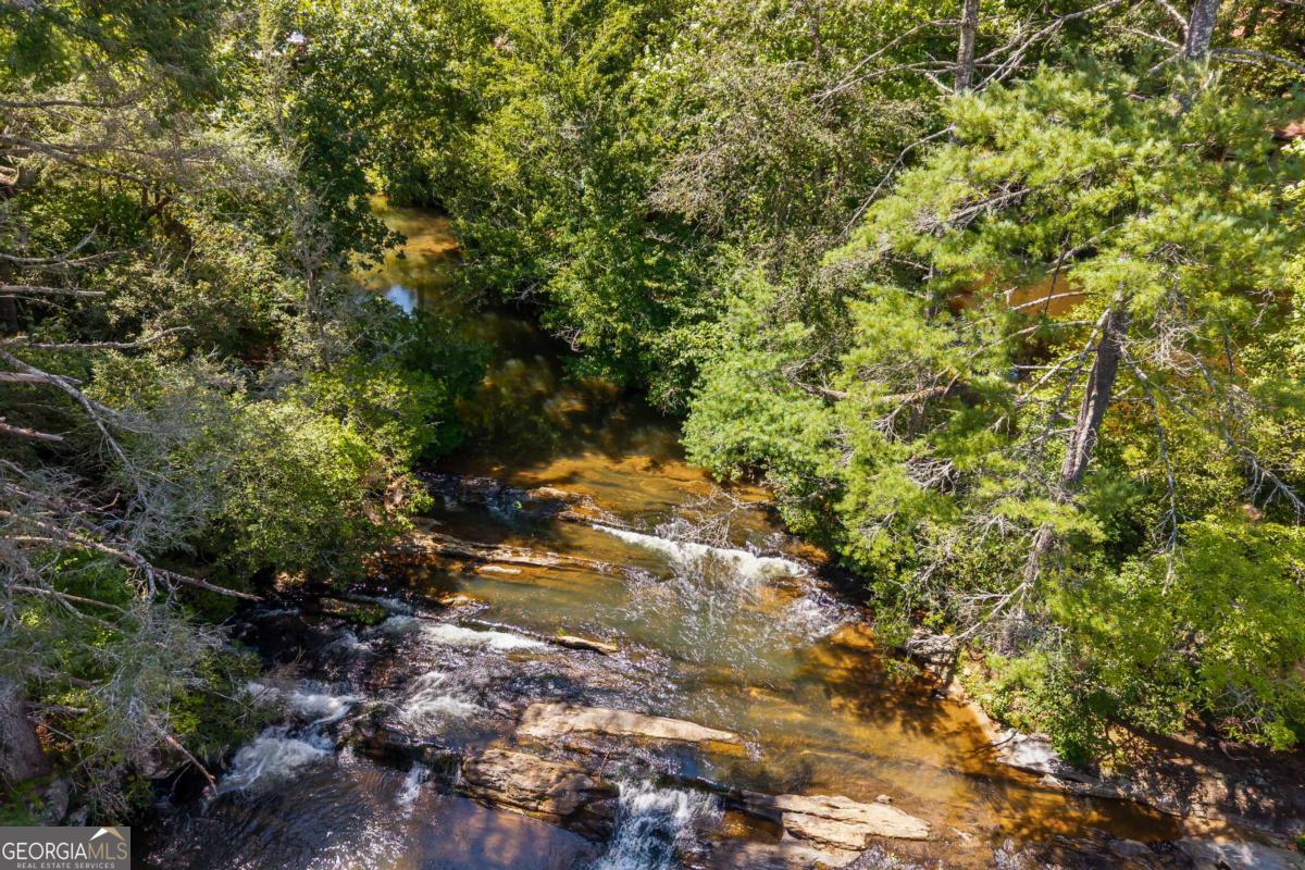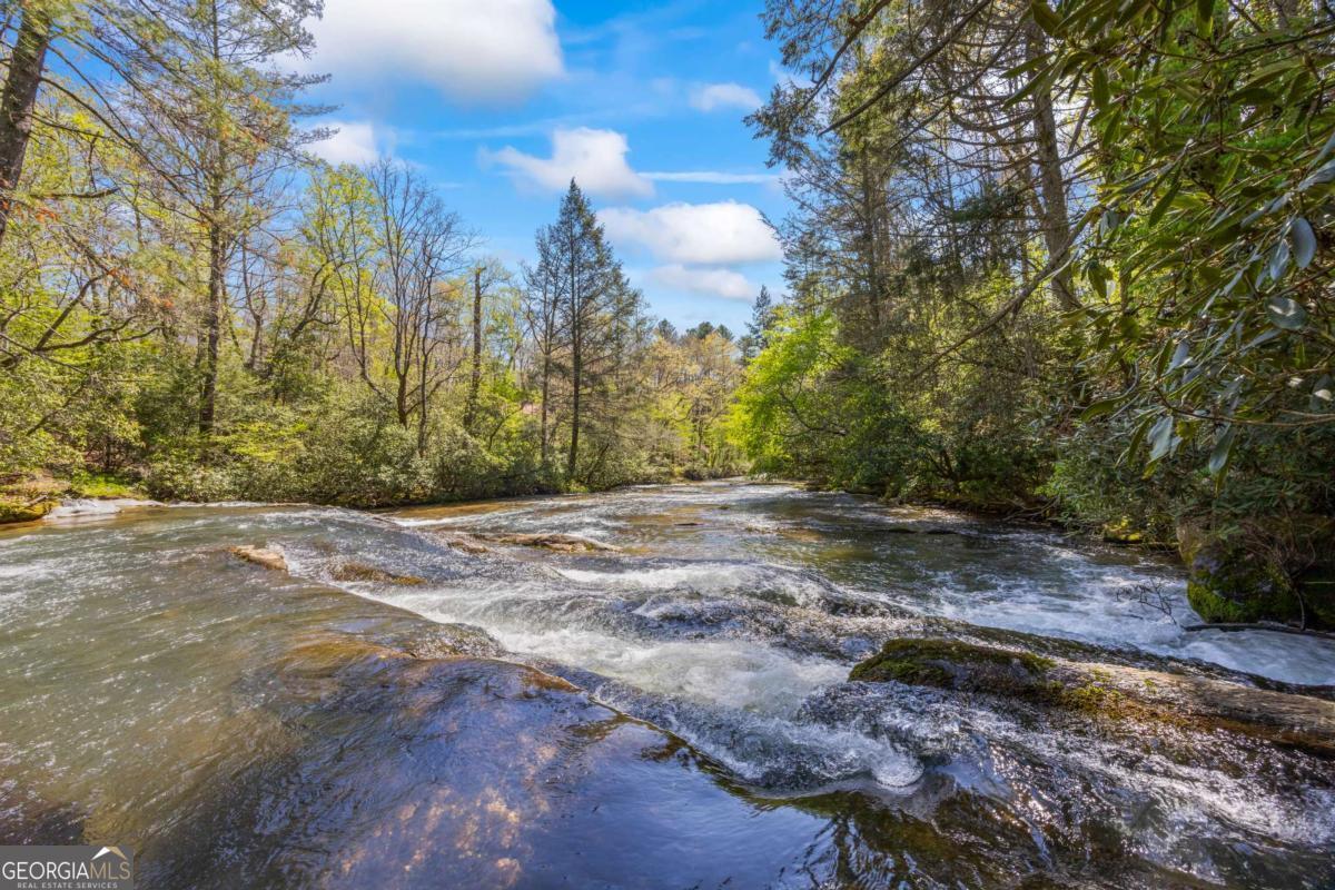 Create lasting memories of the great outdoors in this gem, tucked away in the tranquil woods of North Georgia. This fully renovated A frame home sits on over 3 acres along the clear, rushing waters of Town Creek-with approximately 300 feet of private waterfront, a sparkling waterfall, and trout fishing right in your backyard. Inside, every detail has been reimagined in a top-to-bottom remodel, blending modern design with the home's classic mountain character. Gather in the open living area and kitchen, and relax fire-side in your cabin hideaway, with all new flooring and lighting throughout. Entertain guests or enjoy the solitude on the newly built open-air deck, perfect for a cup of coffee in the morning and stargazing at night. The brand-new designer kitchen is the heart of the home, with white shaker cabinets, quartz countertops, upgraded appliances (and beverage fridge), and sleek fixtures. Retreat to the main floor bedroom with new light/ceiling fan combo and new flooring. The beautifully renovated main floor bathroom includes designer marble tile, a quartz-topped extended vanity, and matte black accents. Upstairs, you'll find two additional bedrooms with new light/ceiling fan combo and flooring, highlighting the home's flexible bedroom arrangement. The spa-inspired shared bathroom upstairs features a walk-in glass shower and high-end finishes. Overall updates to the home include new windows and interior doors, new roof, new plumbing and electrical fixtures, new water heater and well pump, and fresh interior and exterior paint. Outside, wander through mountain laurel, ferns, and wildflowers to a soundtrack of the river and waterfall. Cast a line for trout or dip your toes in the cool water, enjoying the sanctuary that Town Creek offers. Just a short drive from Cleveland, Helen, and Dahlonega, with easy access to hiking, lakes, wineries, and shops-yet less than 90 minutes from Atlanta-this move-in-ready retreat offers the perfect blend of privacy, luxury, and adventure.