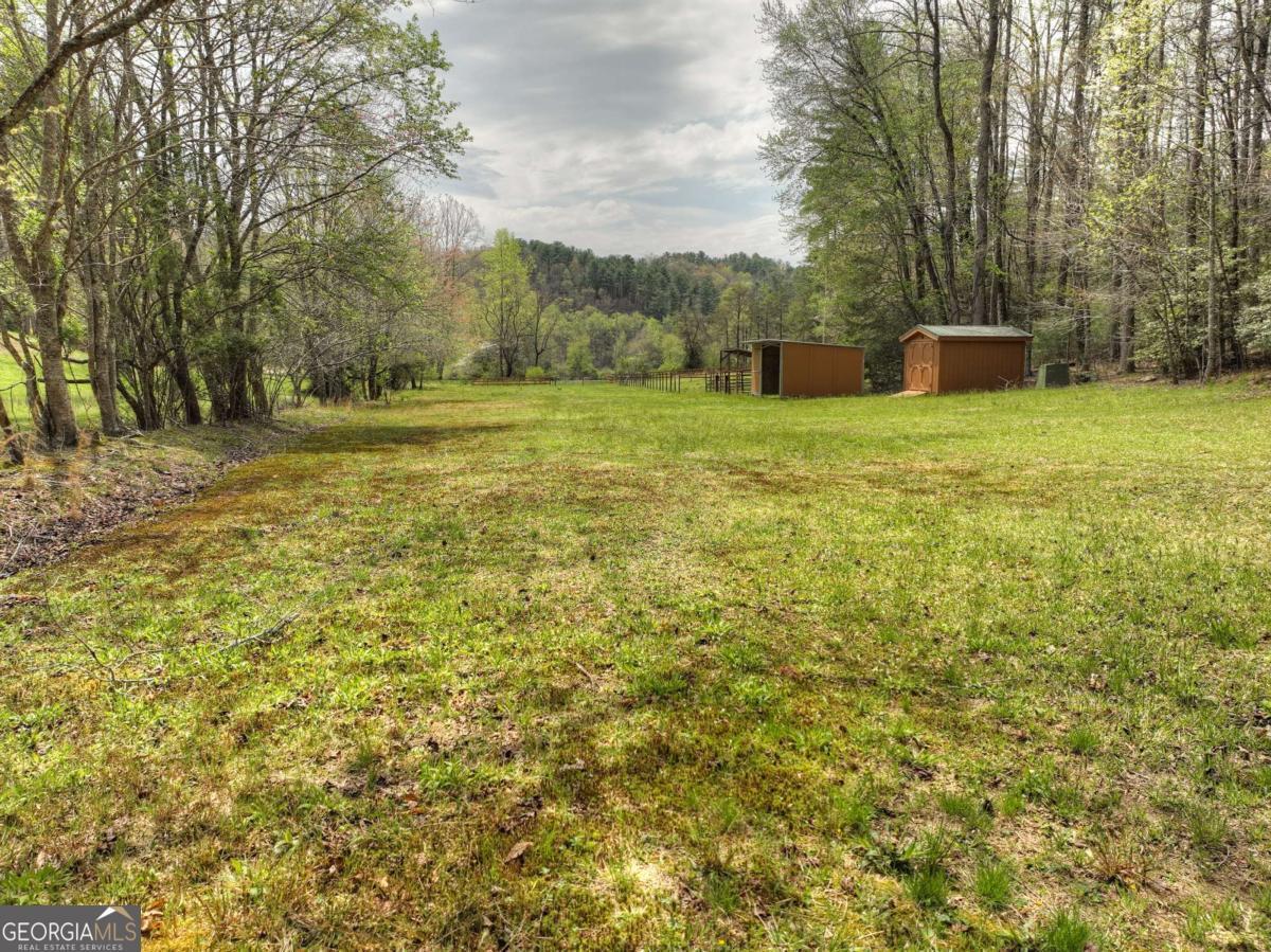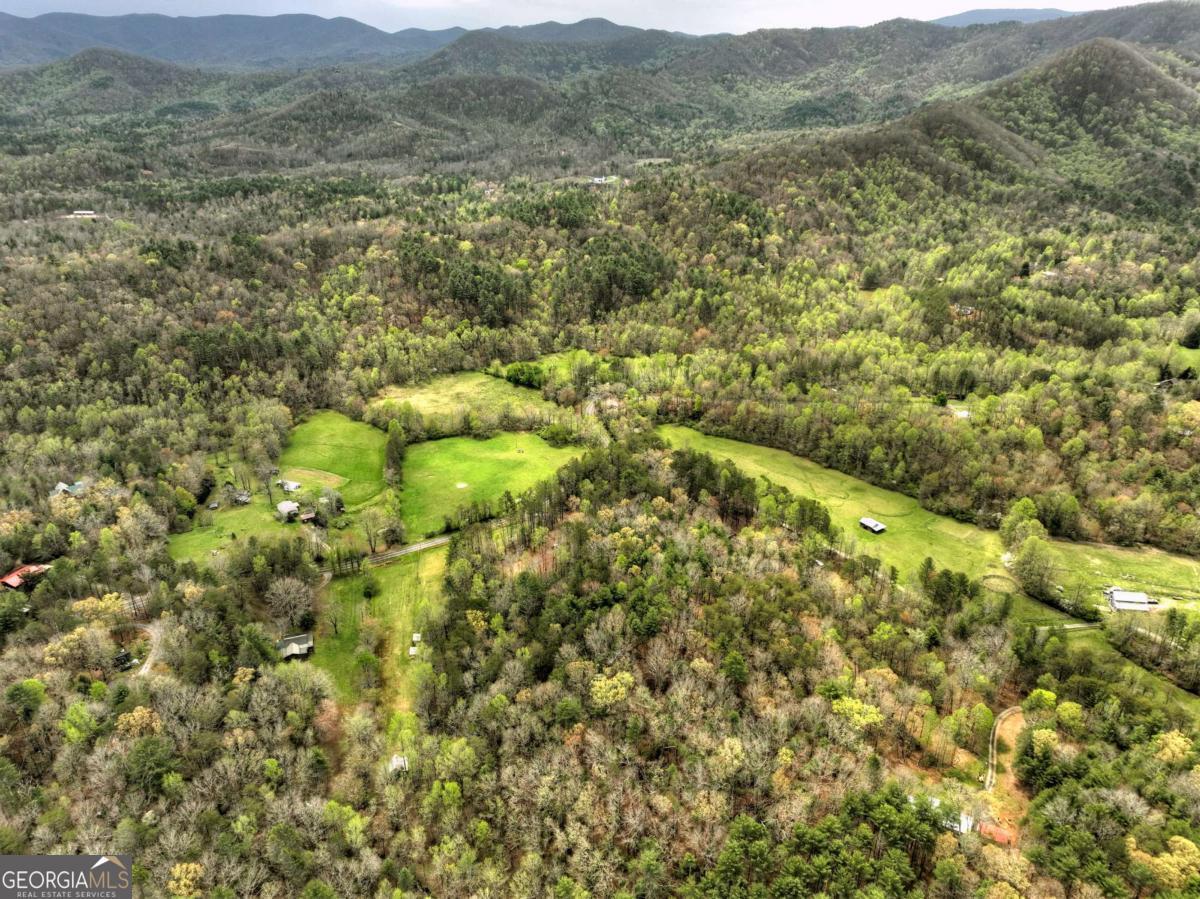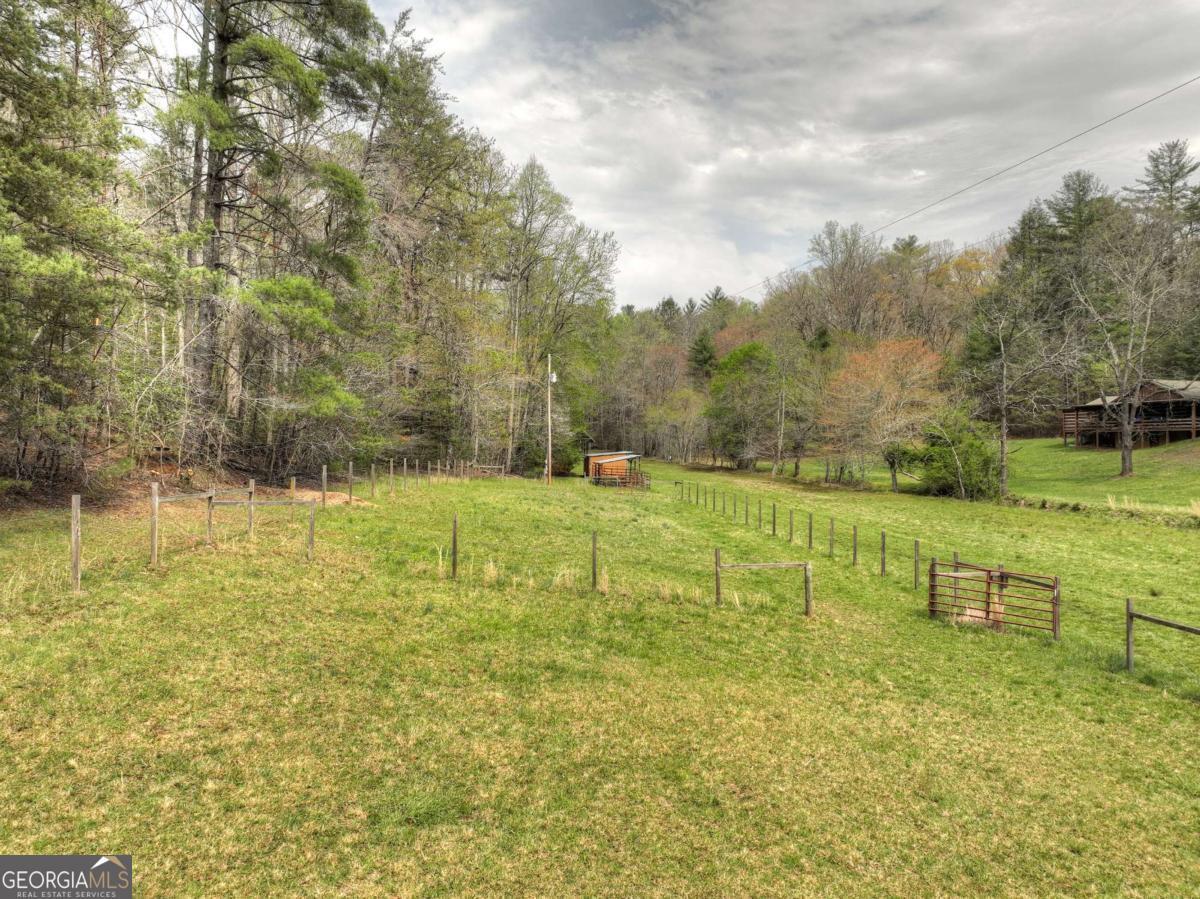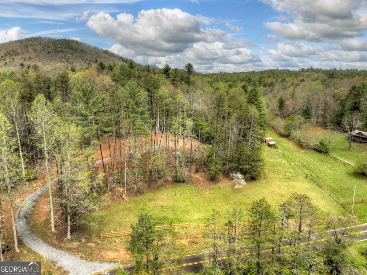 Tucked away on over nine breathtaking acres in Blue Ridge, this rare mountain compound directly adjoins U.S. National Forest, offering unmatched privacy, protected surroundings, and endless outdoor adventure. The land unfolds with year-round mountain views, rolling fenced and cross-fenced meadows and pasture, and a year-round babbling creek that meanders through flat, usable acreage before flowing straight into the USFS. A graded homesite and driveway are already in place, along with a permitted three-bedroom septic system, plus an additional RV septic ideal for a future guest house, garage, or secondary structure. The property is thoughtfully improved with two RV hookups, a spacious open-air pavilion with water and power for entertaining or quiet evenings outdoors, and a nearby utility shed equipped with washer, dryer, and refrigerator for comfortable extended stays. Additional highlights include a private water well, livestock shelter, and gently rolling pastureland perfect for small-scale farming or an equestrian lifestyle, while the wooded hillside provides natural shade and a ready source of firewood. With additional USFS access just minutes away, this property is a dream for hiking, biking, horseback riding, or simply exploring the mountains. Whether you envision a private estate, family compound, event venue, or long-term investment, this extraordinary tract offers limitless potential in a truly one-of-a-kind setting-you have to experience it in person to fully appreciate its beauty and serenity.