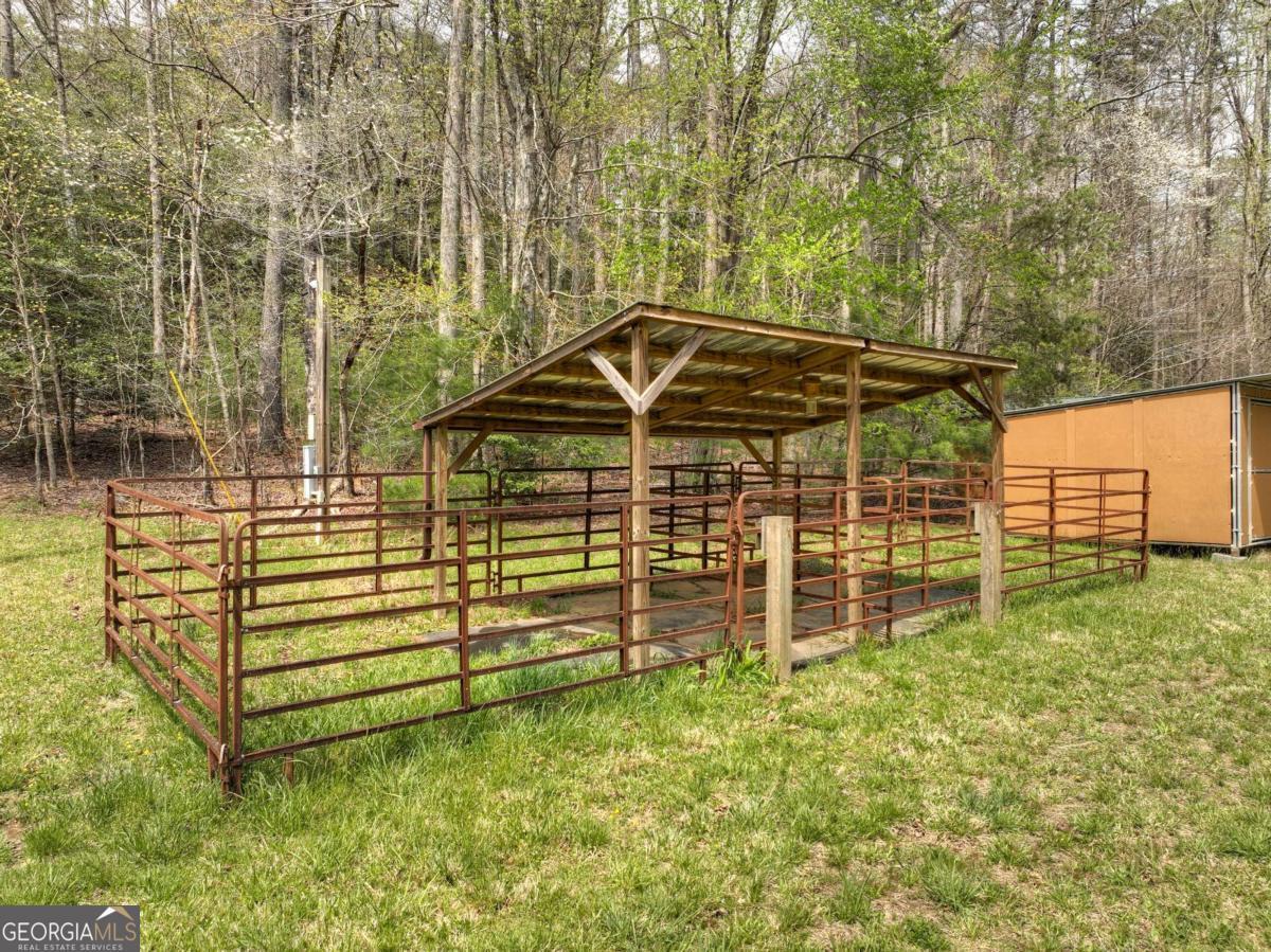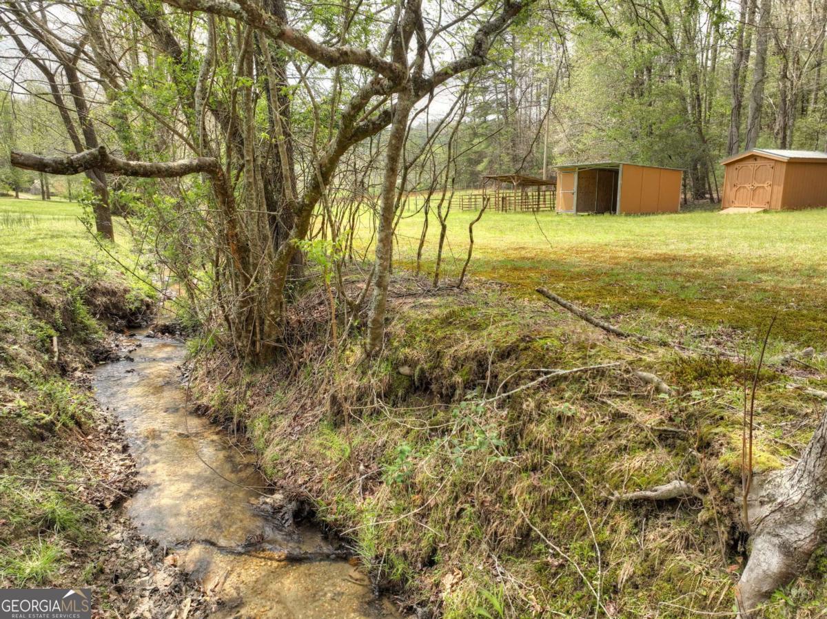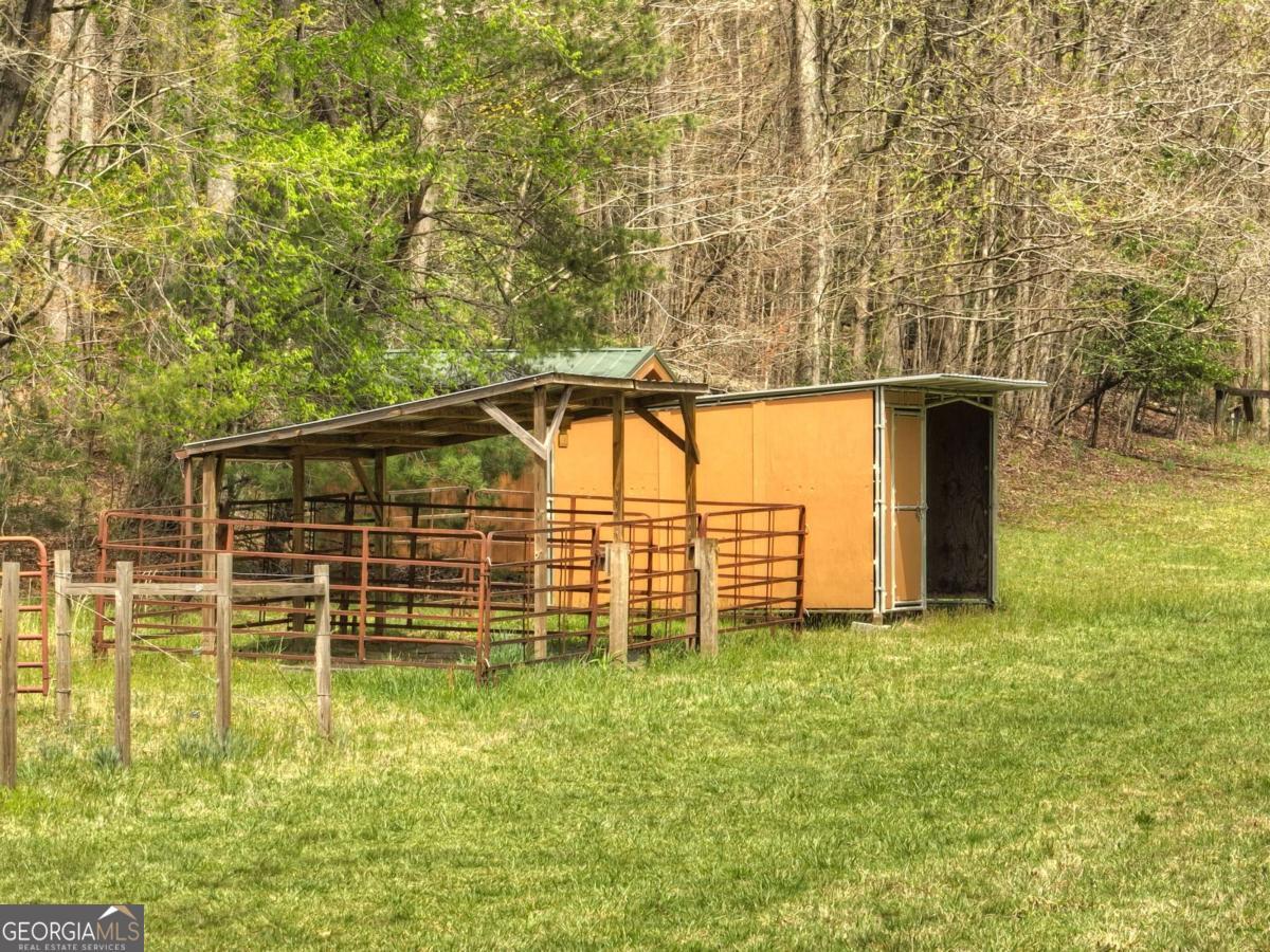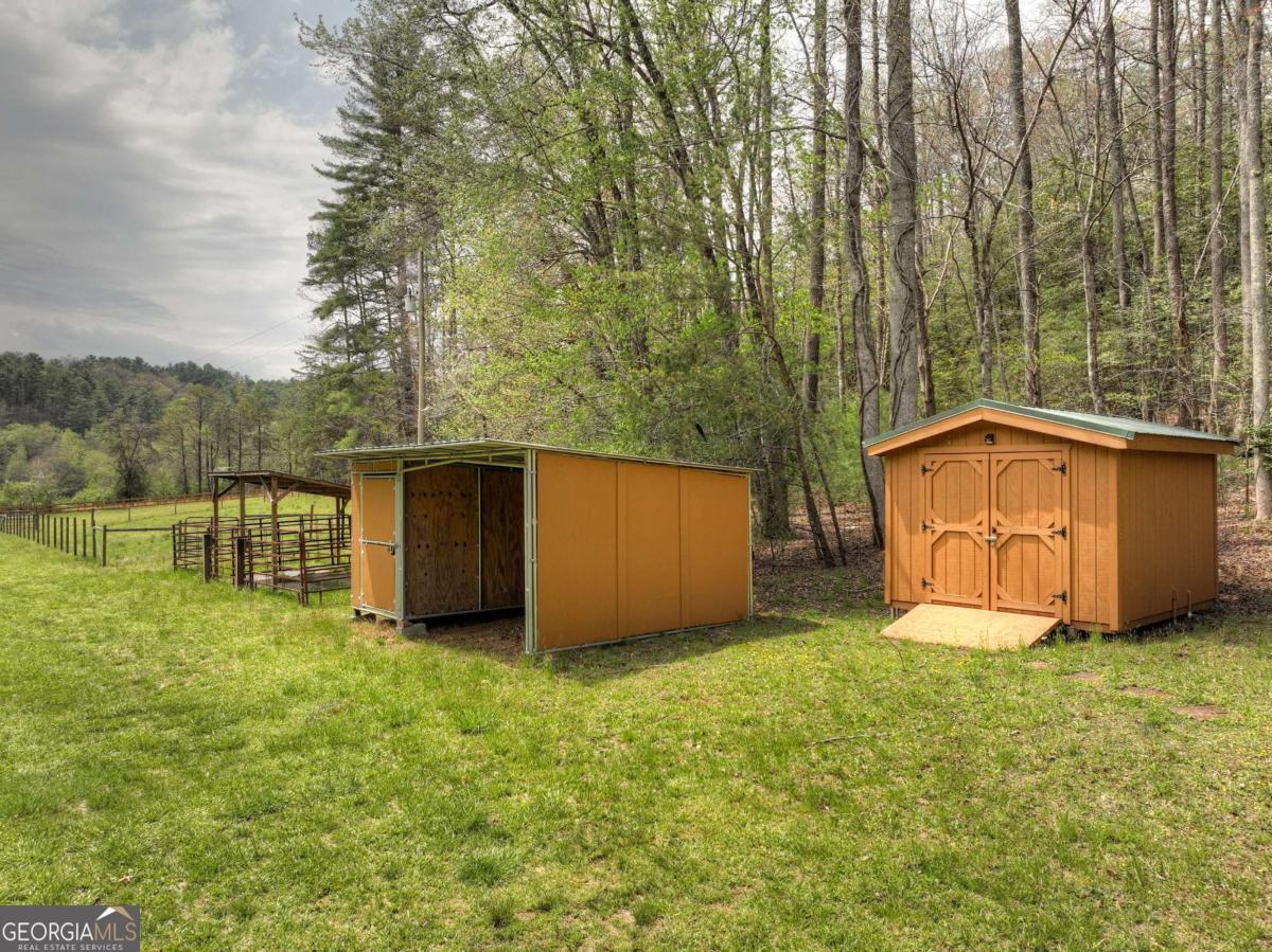 Tucked away on over nine breathtaking acres in Blue Ridge, this rare mountain compound directly adjoins U.S. National Forest, offering unmatched privacy, protected surroundings, and endless outdoor adventure. The land unfolds with year-round mountain views, rolling fenced and cross-fenced meadows and pasture, and a year-round babbling creek that meanders through flat, usable acreage before flowing straight into the USFS. A graded homesite and driveway are already in place, along with a permitted three-bedroom septic system, plus an additional RV septic ideal for a future guest house, garage, or secondary structure. The property is thoughtfully improved with two RV hookups, a spacious open-air pavilion with water and power for entertaining or quiet evenings outdoors, and a nearby utility shed equipped with washer, dryer, and refrigerator for comfortable extended stays. Additional highlights include a private water well, livestock shelter, and gently rolling pastureland perfect for small-scale farming or an equestrian lifestyle, while the wooded hillside provides natural shade and a ready source of firewood. With additional USFS access just minutes away, this property is a dream for hiking, biking, horseback riding, or simply exploring the mountains. Whether you envision a private estate, family compound, event venue, or long-term investment, this extraordinary tract offers limitless potential in a truly one-of-a-kind setting-you have to experience it in person to fully appreciate its beauty and serenity.
