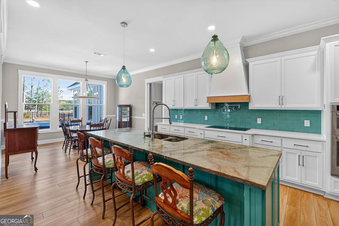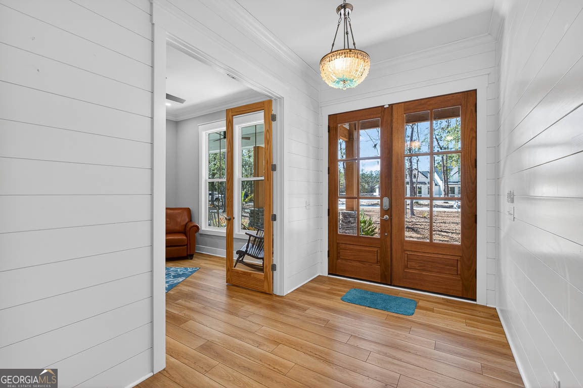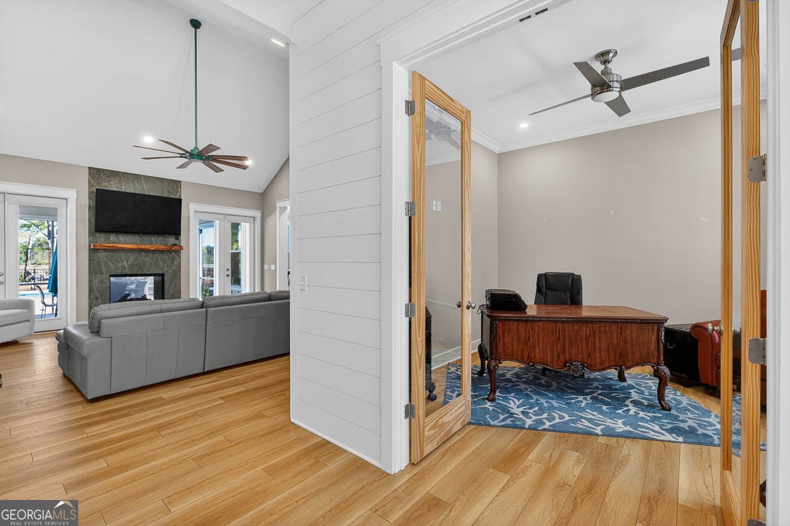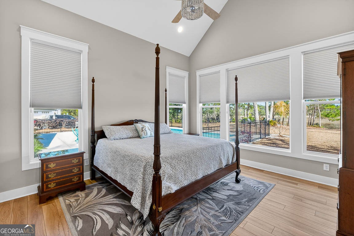 This remarkable deep-water retreat features 4 bedrooms and 3.5 bathrooms on a sprawling 0.81-acre lot, showcasing stunning views and an impressive orchard with 57 fruit trees. The home's stone and Hardiplank exterior is complemented by a large covered front porch that creates a warm and inviting first impression. Inside, a welcoming foyer leads to a private office or study and spacious living areas accented by beautiful hardwood floors throughout. The living room features vaulted ceilings and a cozy fireplace, creating an open yet comfortable gathering space filled with natural light. The kitchen is thoughtfully designed for both everyday living and entertaining, featuring a breakfast area, breakfast bar, center island, stainless steel appliances including double ovens, a separate cooktop with range hood, pot filler, and an oversized walk-in pantry. The primary suite provides a relaxing retreat with a spa-like ensuite bath complete with a soaking tub, large, tiled shower, double vanities, and a walk-in closet with built-in shelving. A well-equipped laundry room offers a sink, ample counter space, and cabinetry for added convenience. Upstairs, a large bonus room with a full bath provides flexible space for a guest suite, media room, or playroom. Outdoor living is just as impressive, with a spacious screened porch featuring its own fireplace, an in-ground swimming pool, fenced backyard, and fire pit - all perfectly positioned to enjoy the serene water views. A 3-car garage adds the finishing touch to this beautifully appointed home that blends comfort, functionality, and stunning waterfront living.