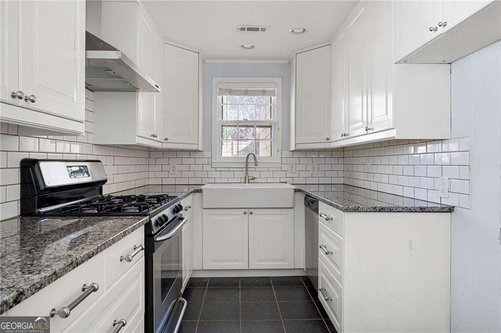 Tucked into the heart of Loring Heights, this thoughtfully updated bungalow delivers character, comfort, and effortless city living. A welcoming screened front porch sets the tone, inviting you into a home where classic details meet modern style. Inside, the kitchen features crisp white cabinetry and stainless-steel appliances, flowing seamlessly into the dining area and an inviting family room anchored by a working gas fireplace and a striking bay window. The main-level owner's suite offers a true retreat with a spacious walk-in closet and a well-appointed bath featuring a generous double vanity and walk-in tile shower. A rear foyer with its own private entrance creates the ideal setup for a home office, studio, or drop zone-flexible yet intentionally designed. Outdoor living truly shines with an expansive flagstone patio overlooking a flat, landscaped backyard, perfect for entertaining or everyday relaxation. An oversized detached two-car garage adds exceptional value, offering space for multiple vehicles, a home gym, workshop, or potential future build-out. Just a short walk to the Beltline and minutes from Buckhead, Midtown, and major interstates, this Loring Heights gem pairs timeless appeal with an unbeatable intown location.