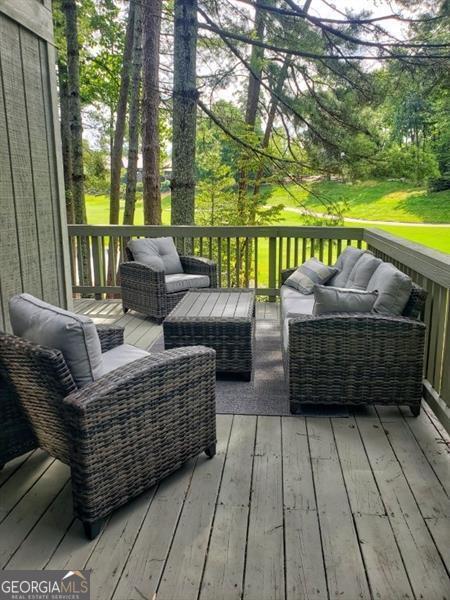 Your newly renovated, move-in ready, Lake & Golf front Villa awaits you in the heart of Big Canoe perched near the shoreline of Lake Sconti with expansive views of the 9th hole newly expanded and updated Clubhouse too. This beautifully designed villa was recently renovated 3-bedroom, 3-bath design cottage is a rare gem that combines lakefront living with golf course luxury at an attractive price point. The roof is new as is the Trane HVAC system with heat pump and ductwork replaced in Sept. of 2025, and top of the line storm rated sliding glass doors were also installed in last 6 months. Featuring an accessibility entrance ramp, luxury vinyl plank flooring, open floorplan, 10 foot ceilings on main, master and laundry on main, unfinished exterior entry basement ready to be molded for your bonus dream room, and much more. Spend the evenings on the wrap-around back deck looking over the lake and hole #9 of the award winning Creek course before strolling across the fairway for a scrumptious dinner at Big Canoe's newly transformed state of the art Clubhouse. Additional features and information: Couch folds out to be a queen bed (it is new) to have the property sleep 8 people plus newer memory foam gel mattresses in all 3 bedrooms. Whether you're looking for primary/secondary living or wanting to take the rental market by storm; this could be the property for you with two consecutive years producing $70,000 annual in gross income and numerous 5 star reviews. This retreat home promises tranquility, comfort and endless charm. Schedule a showing today and discover what makes Lakefront Serenity at Lake Sconti so extraordinary!