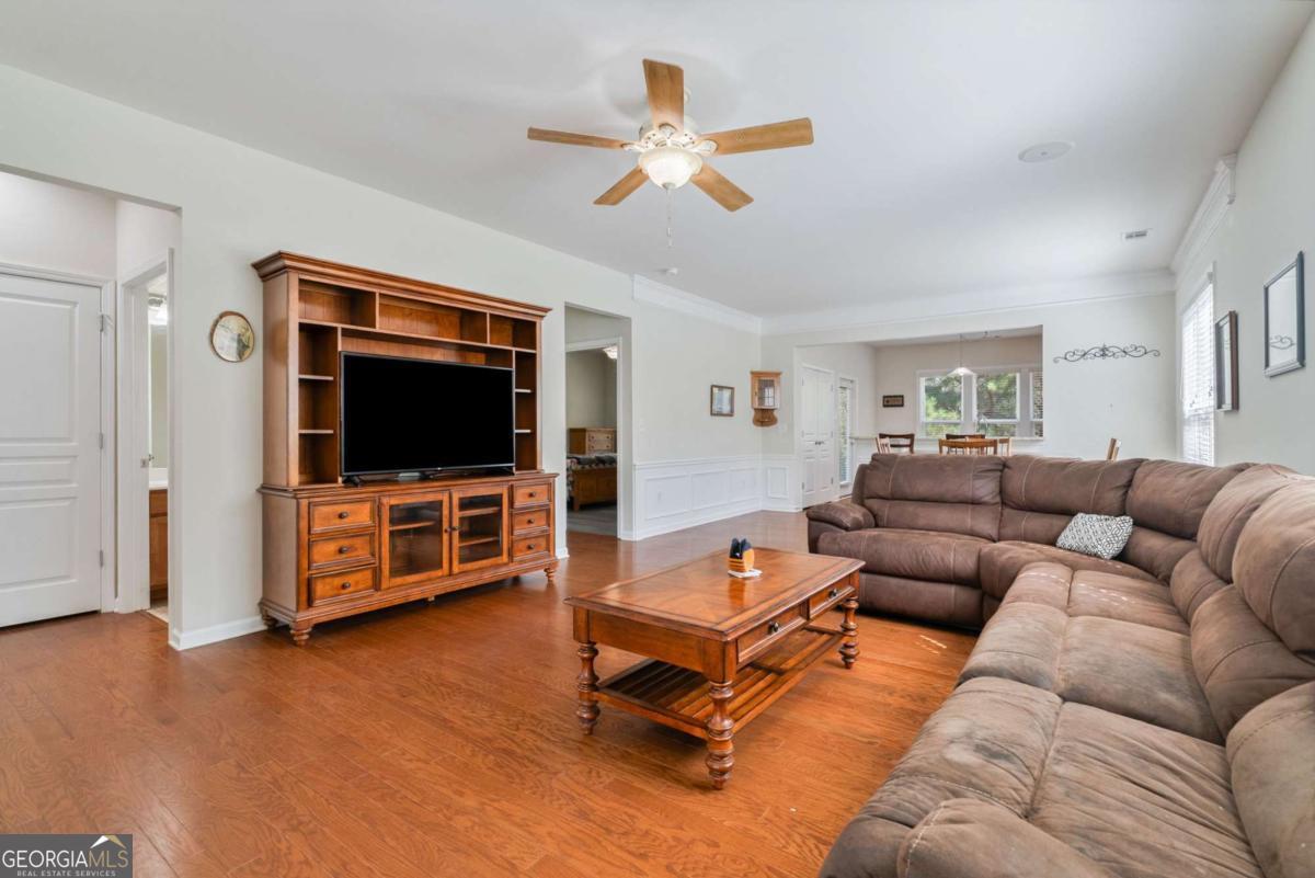 If you've been waiting for a just the right home for under 300K in one of the country's most affordable Del Webb active-adult neighborhoods - Sun City Peachtree - Your patience just paid off. Welcome to this beautifully maintained 2-bedroom, 2-bath home featuring a desirable front office/flex room and an inviting open-concept layout. From the moment you arrive, you'll appreciate the home's charming curb appeal, manicured landscaping, and welcoming covered front entry. Inside, natural light fills this truly open concept. The foyer flows into the spacious living and dining areas and then into the very open, eat-in kitchen with bar seating, all highlighted by hardwood flooring. The well-appointed kitchen offers granite countertops, abundant cabinet storage, a tile backsplash, stainless steel appliances, and a gas range-perfect for both cooking and entertaining. Step outside from the kitchen to a spacious covered patio with an extended open-air section-plenty of room for grilling, relaxing, or outdoor dining. The level backyard and natural setting directly behind the home create a peaceful, private feel. A private primary suite sits at the rear of the home, showcasing a full wall of windows overlooking the backyard, updated flooring, and a large en-suite bath with double sinks, a walk-in shower, and generous walk-in closet. A comfortable guest bedroom and a second full bath provide excellent accommodations for visitors. The front office, accented by beautiful bay-style windows, is ideal for working from home, hobbies, or additional flex space. Major mechanical systems have been recently updated, including an HVAC system and water heater that are under two years old, offering added efficiency and peace of mind. The HOA provides exceptional value with included grass cutting, shrub trimming, and fresh pine straw twice a year, ensuring a beautifully maintained exterior with minimal effort. Life here is about so much more than the house. Your HOA includes access to a 45,000 sq. ft. clubhouse with a state-of-the-art fitness center, indoor and outdoor pools, pool tables, library, movie theater, business center, and game room. Outside, you'll find tennis, bocce ball, and expanded pickleball courts (because pickleball is practically a competitive sport here). Add in walking trails, a softball field, dog park, and playground for the grandkids - plus 45+ interest groups and a full-time activities director - and boredom simply isn't an option. Golf cart-friendly, neighbor-approved, and designed for active adults, Sun City Peachtree is one of Georgia's best-kept secrets - and one of the most affordable Del Webb communities in the country. Homes like this don't last, so don't blink. Schedule your showing today.