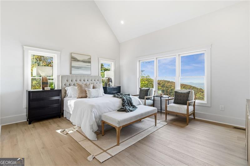 Prime Opportunity for brand-new craftsman 4 BR / 4.5 BATH mountain home sits on over 8 private acres with long-range panoramic views from every vantage point. From the moment you arrive, the rocking chair front porch and level concrete driveway welcome you to a home that blends rustic charm with modern design. Inside, the open layout features soaring wood-beamed ceilings, a dramatic floor-to-ceiling stacked stone fireplace, and wide-plank hardwood floors throughout the main level. Natural light pours into every space, highlighting the home's thoughtful finishes and warm textures. The bedroom layout is ideal: the primary suite is located on the main level, offering stunning views and a spa-like bath. A second private suite is located upstairs above the garage with interior access-perfect for guests or extended stays. On the terrace level, you'll find two additional bedroom suites, each with direct access to full bathrooms, offering privacy and comfort for all. Two full-length covered decks-one on the main level and one on the terrace-let you take in the sweeping mountain views from sunrise to sunset. Tastefully designed and move-in ready, this is a true mountain retreat just minutes from Jasper's shops, wineries, and scenic hiking trails. Every inch of this home was built to bring the outdoors in-and give you a front-row seat to the North Georgia mountains.